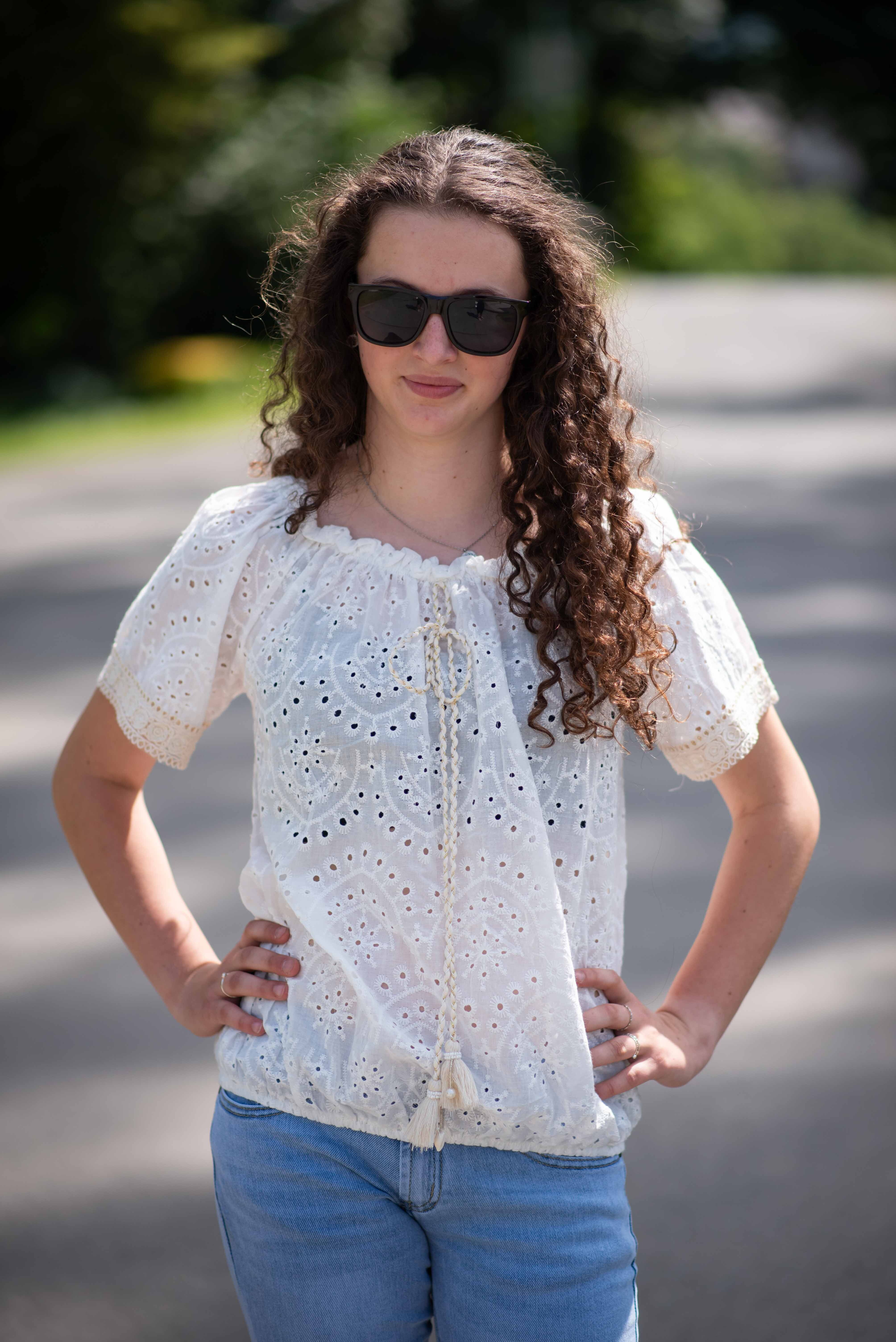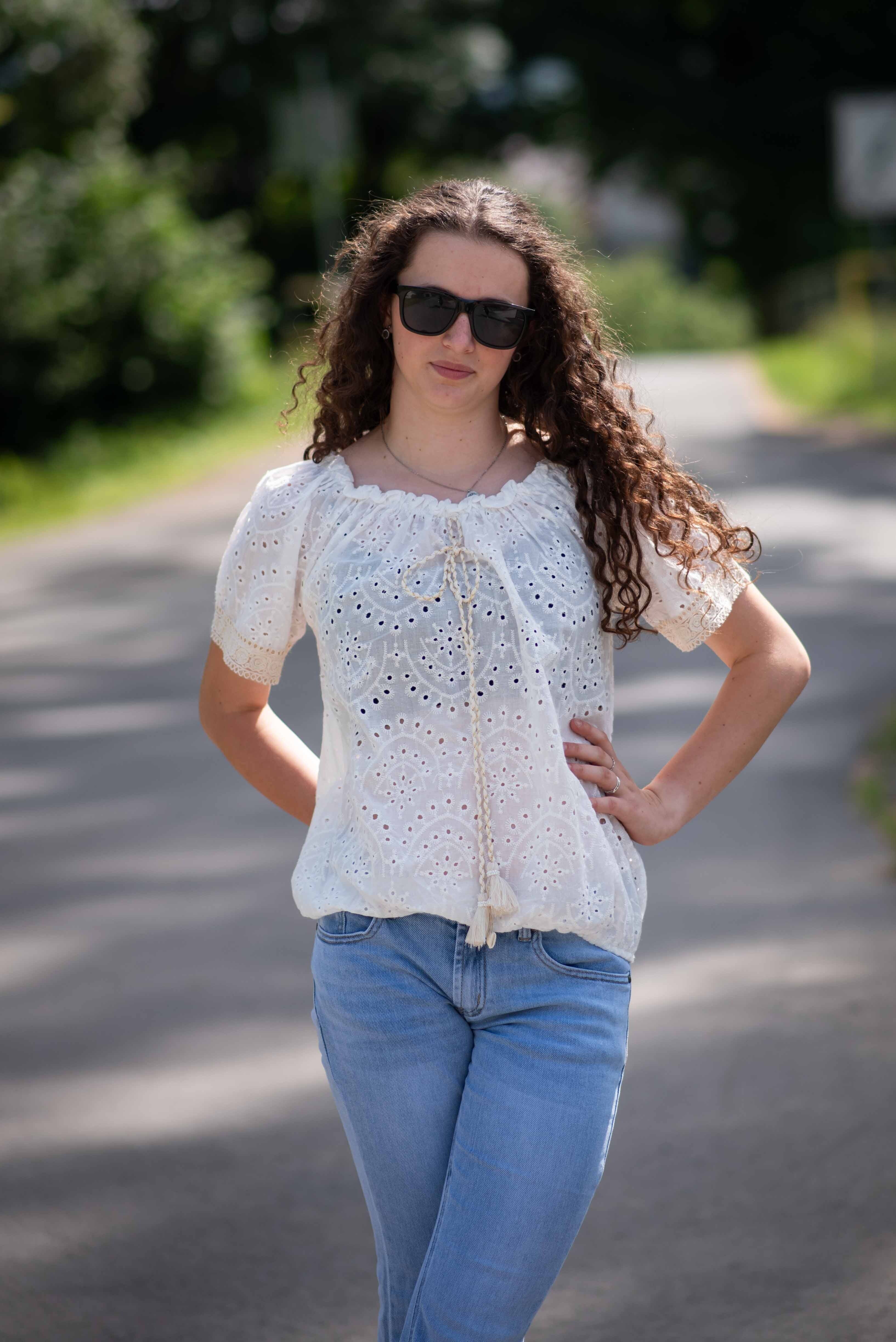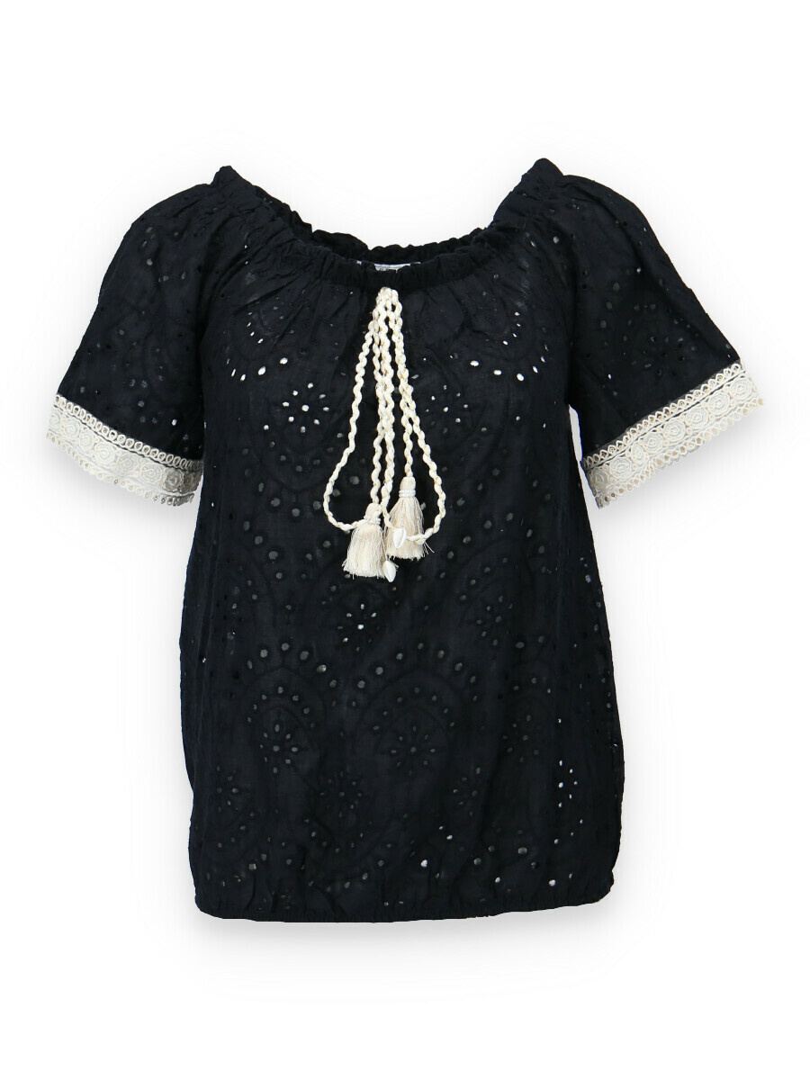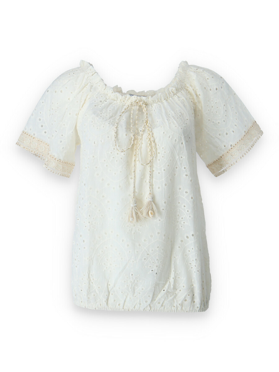 Halenka s krátkým rukávem MADEIRA, na přední straně vázání ve výstřihu. Halenka je do gumy v pase