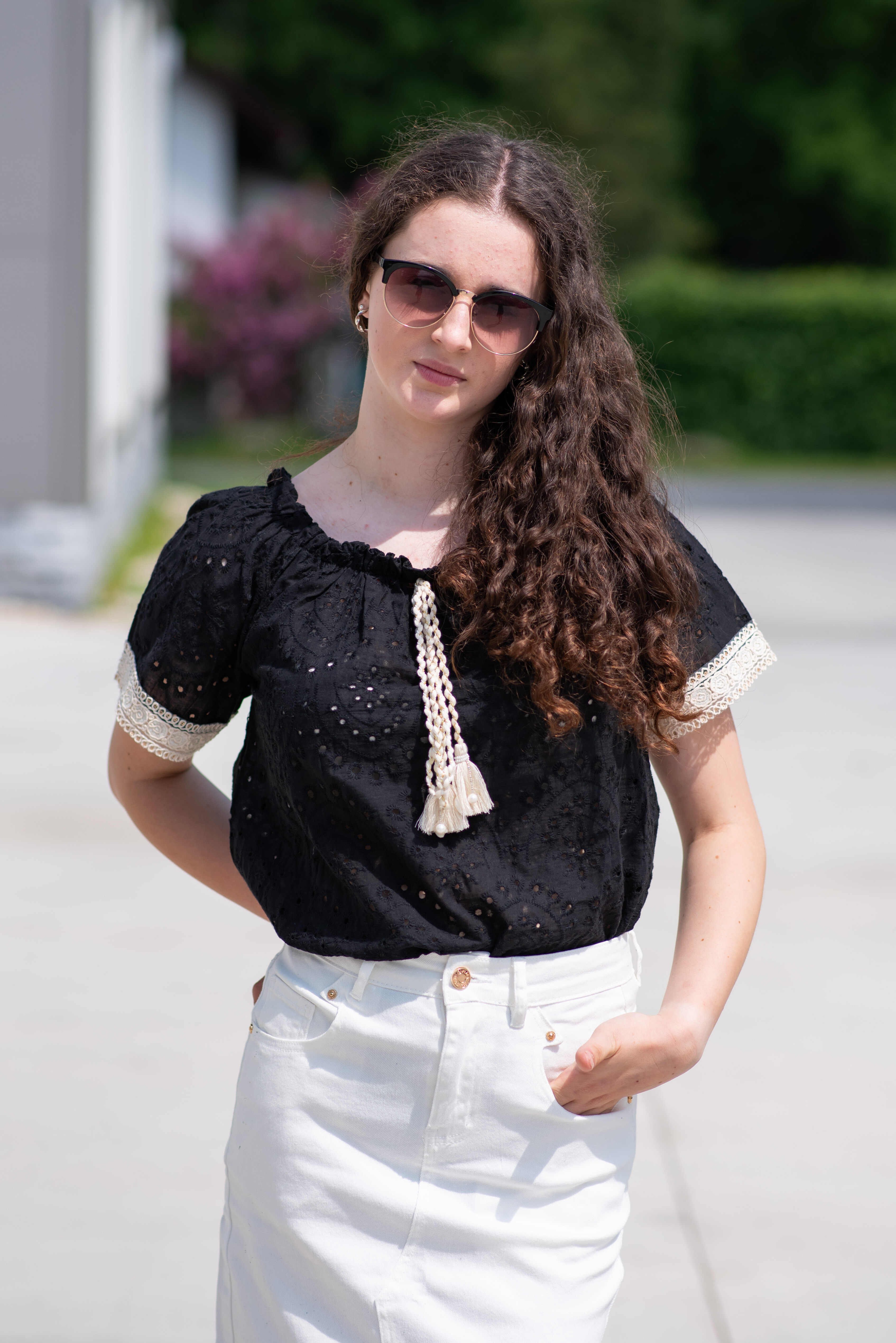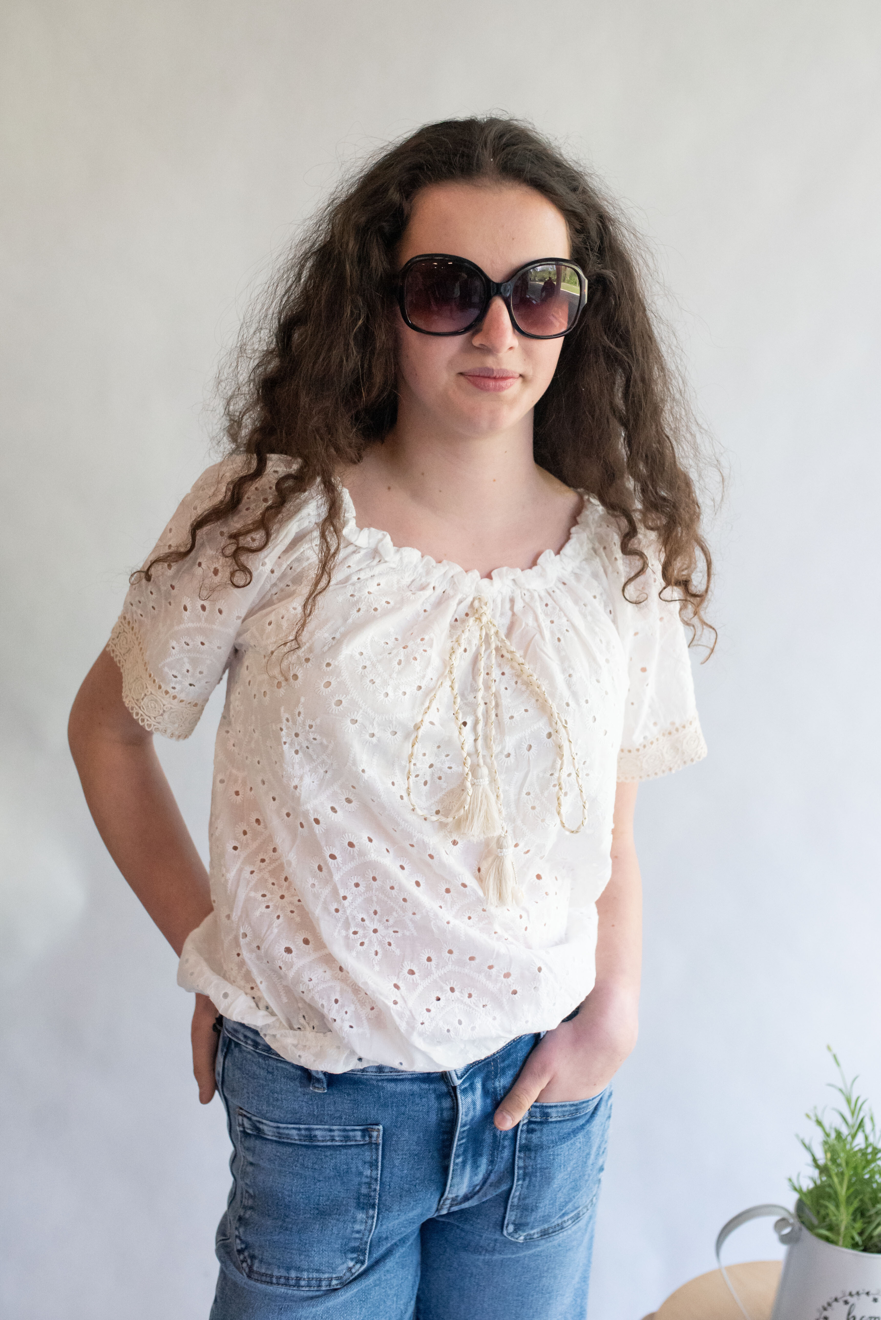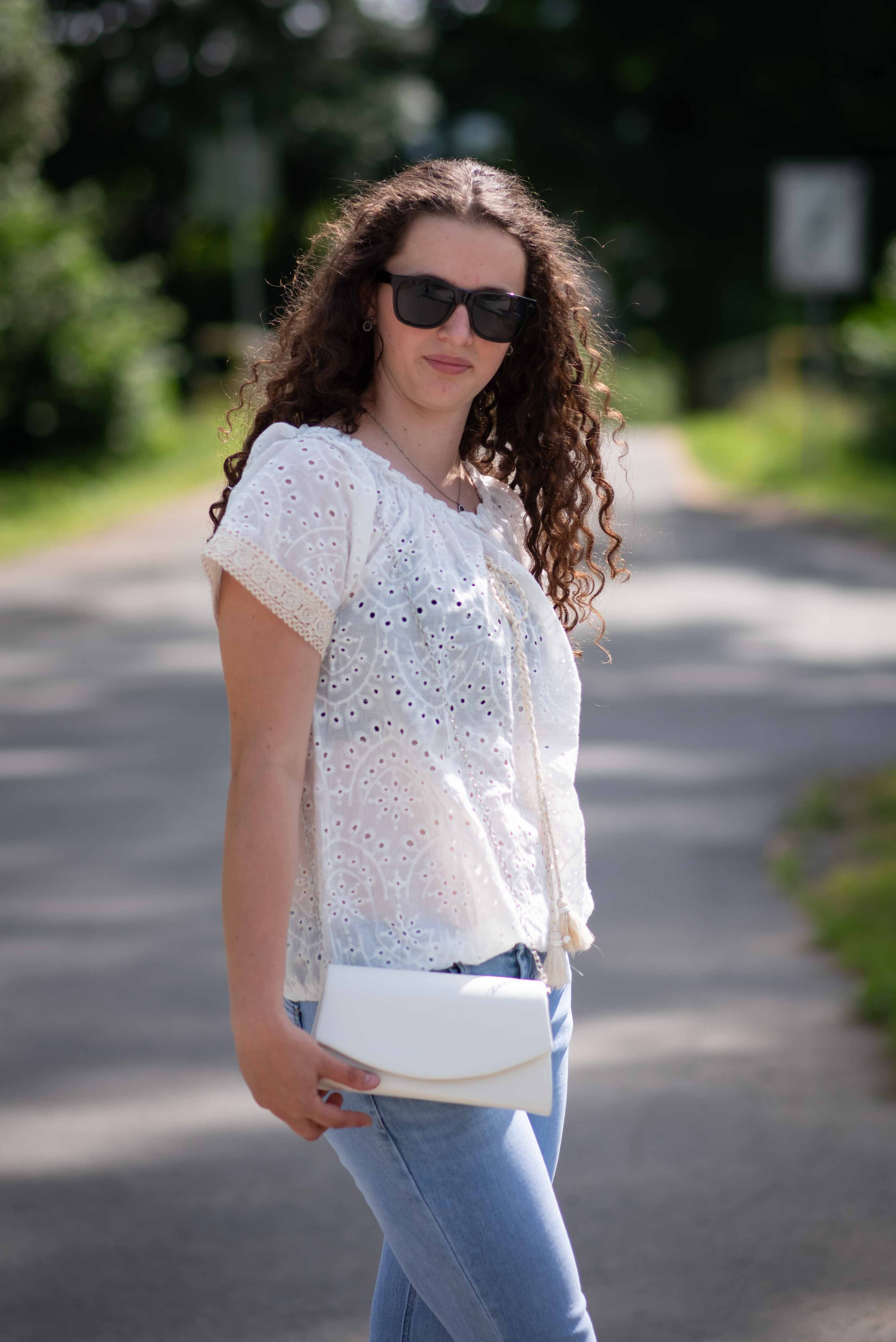 Halenka s krátkým rukávem MADEIRA, na přední straně vázání ve výstřihu. Halenka je do gumy v pase
