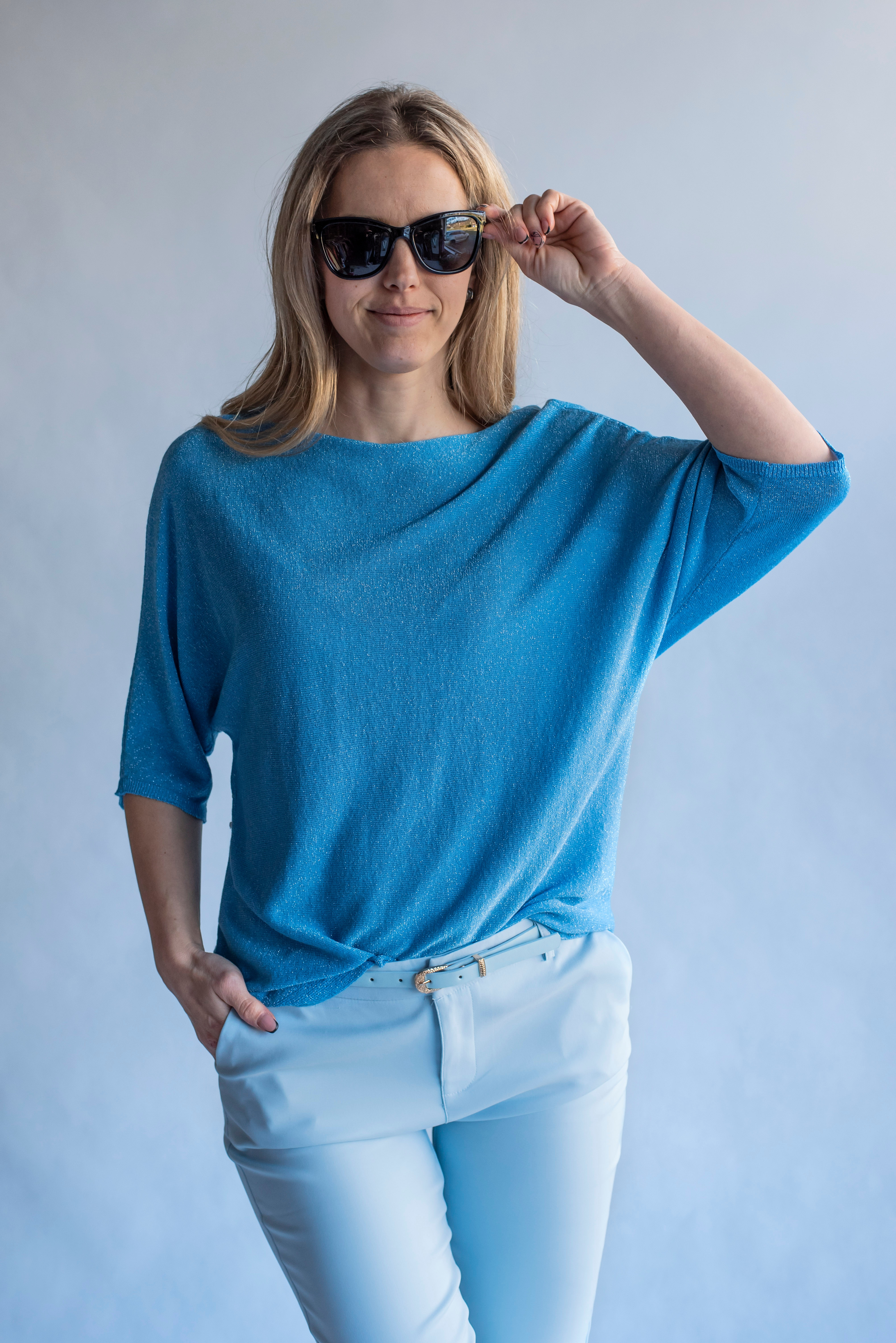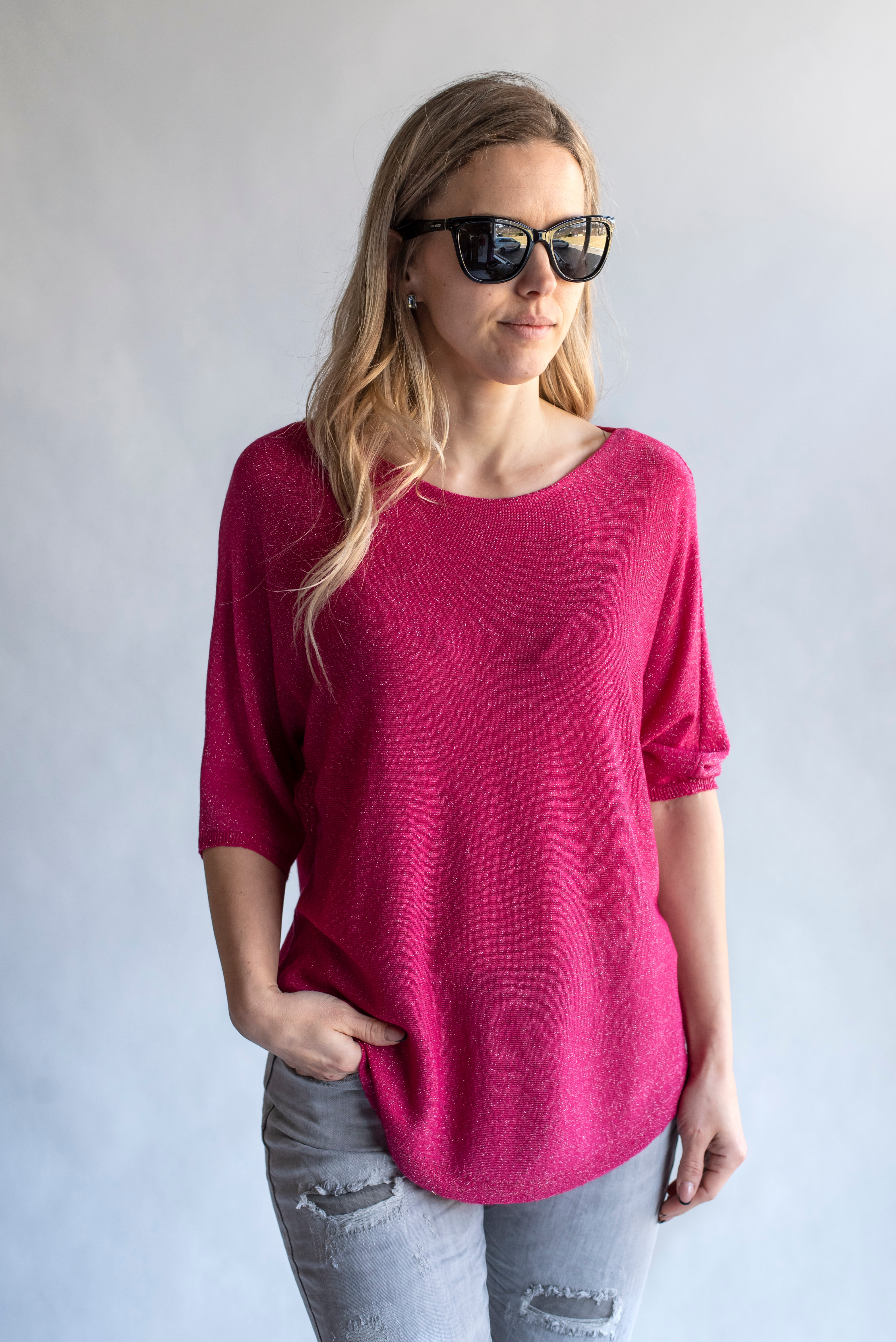 Módní halenka s lodičkovým výstřihem, raglánový 3/4 rukáv