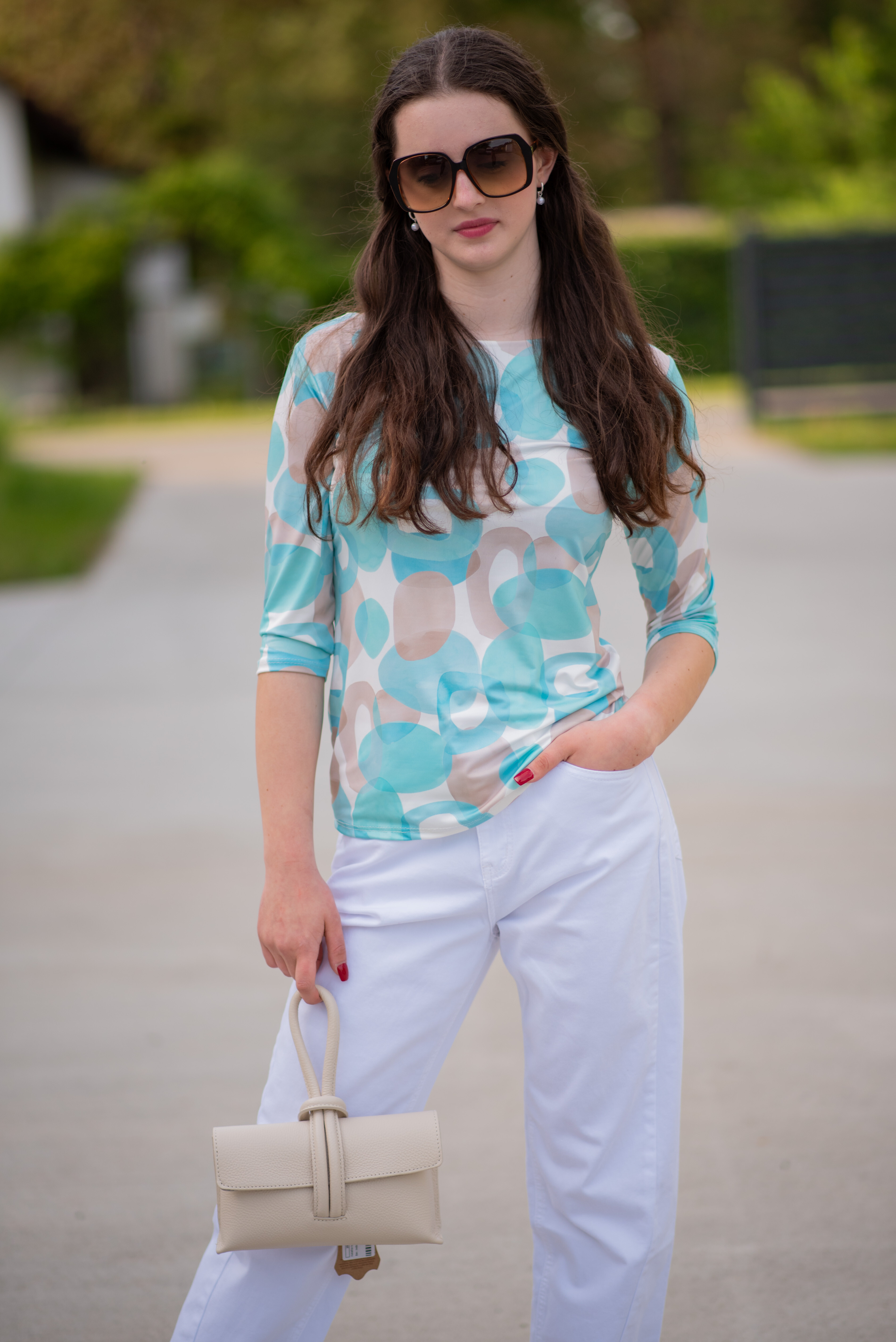 Módní halenka s potiskem. Halenka má 3/4 rukáv a kulatý výstřih, dovoz Itálie