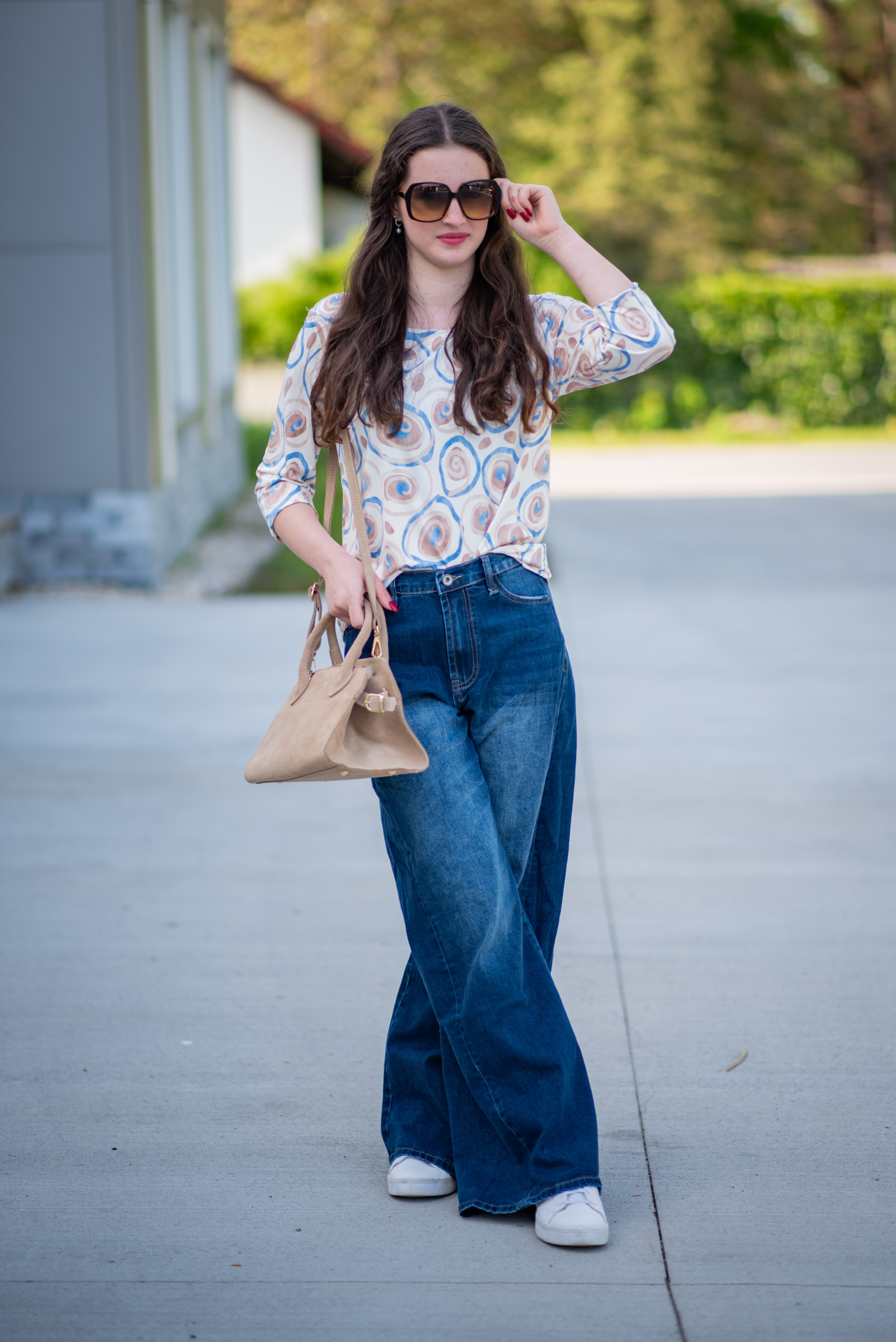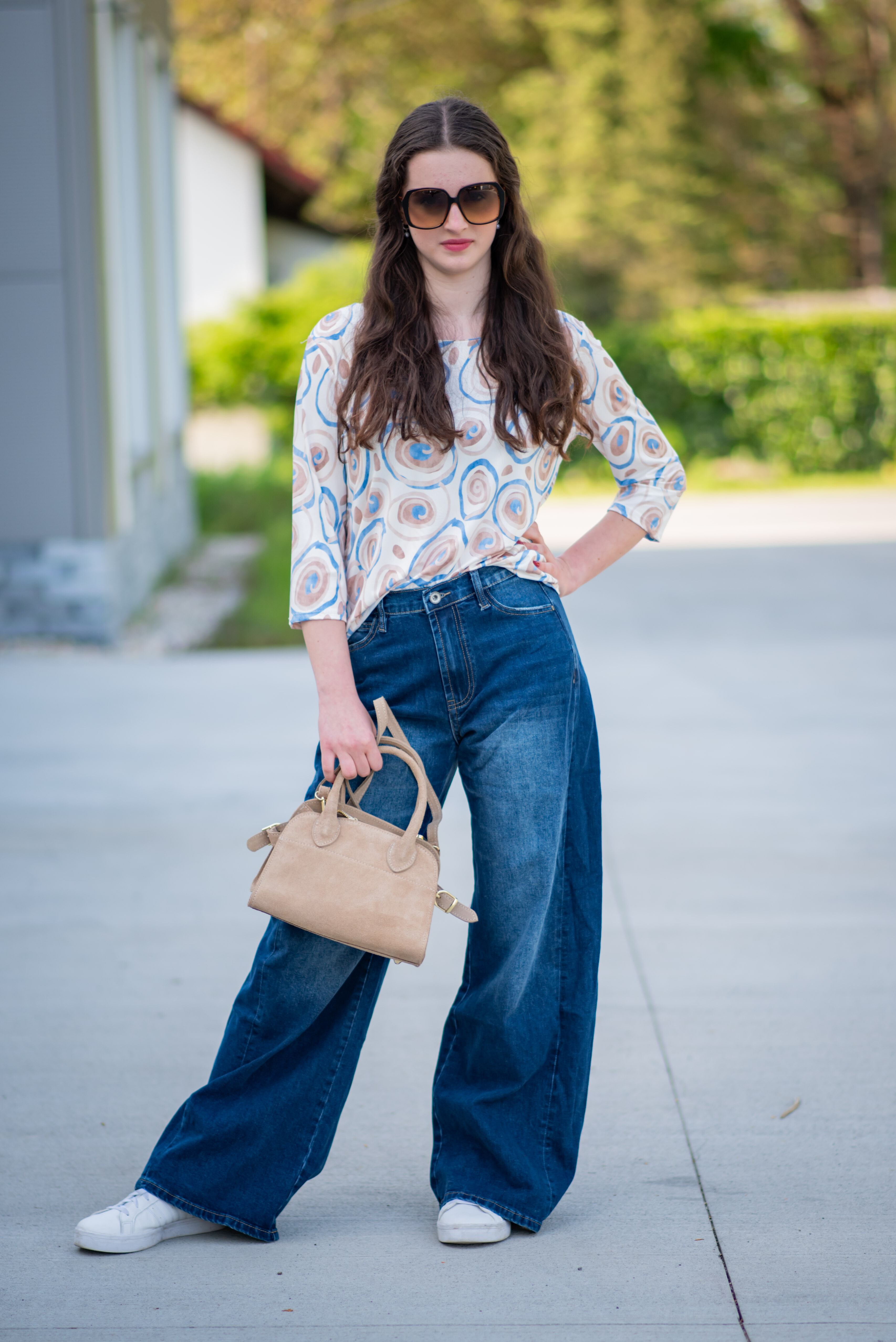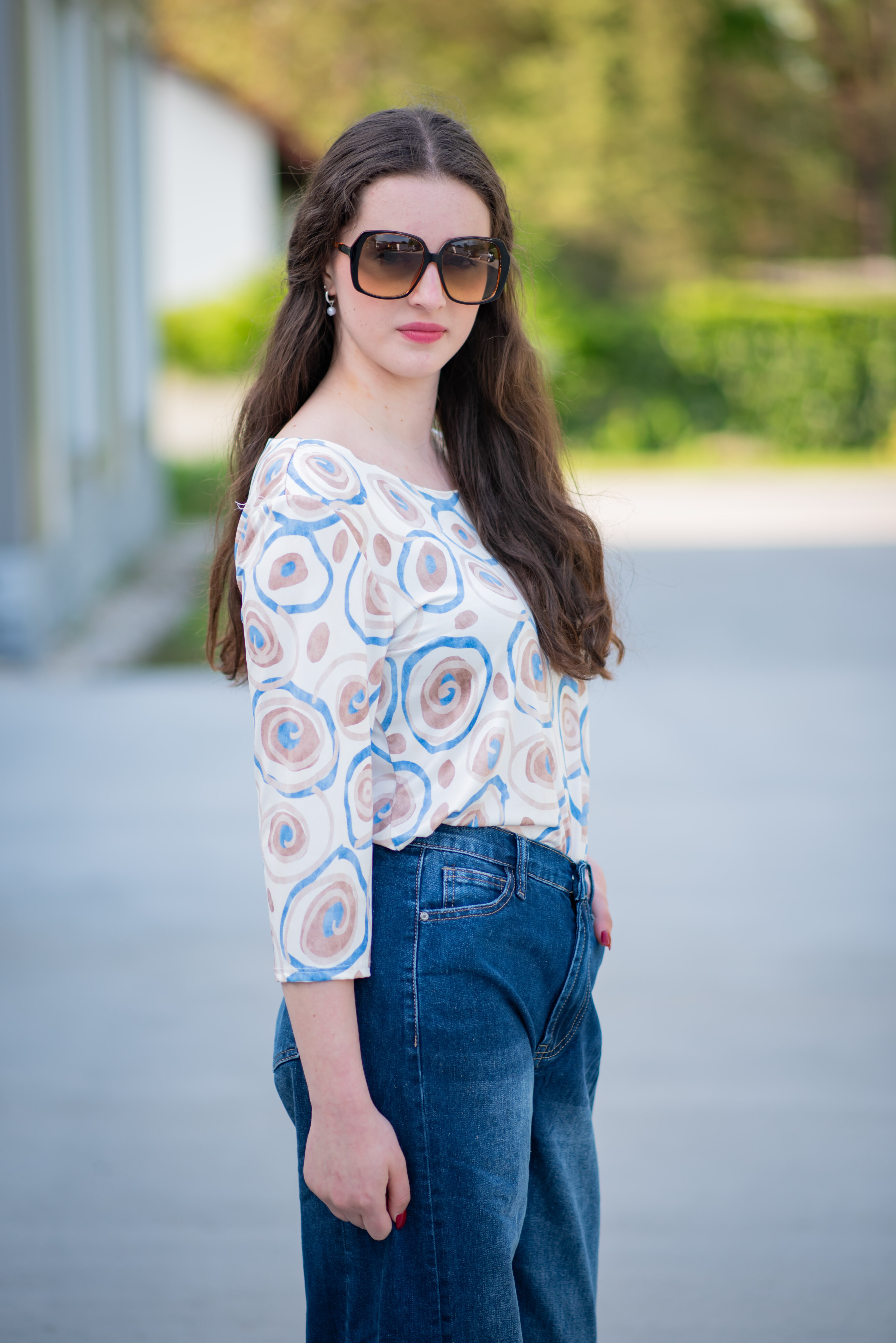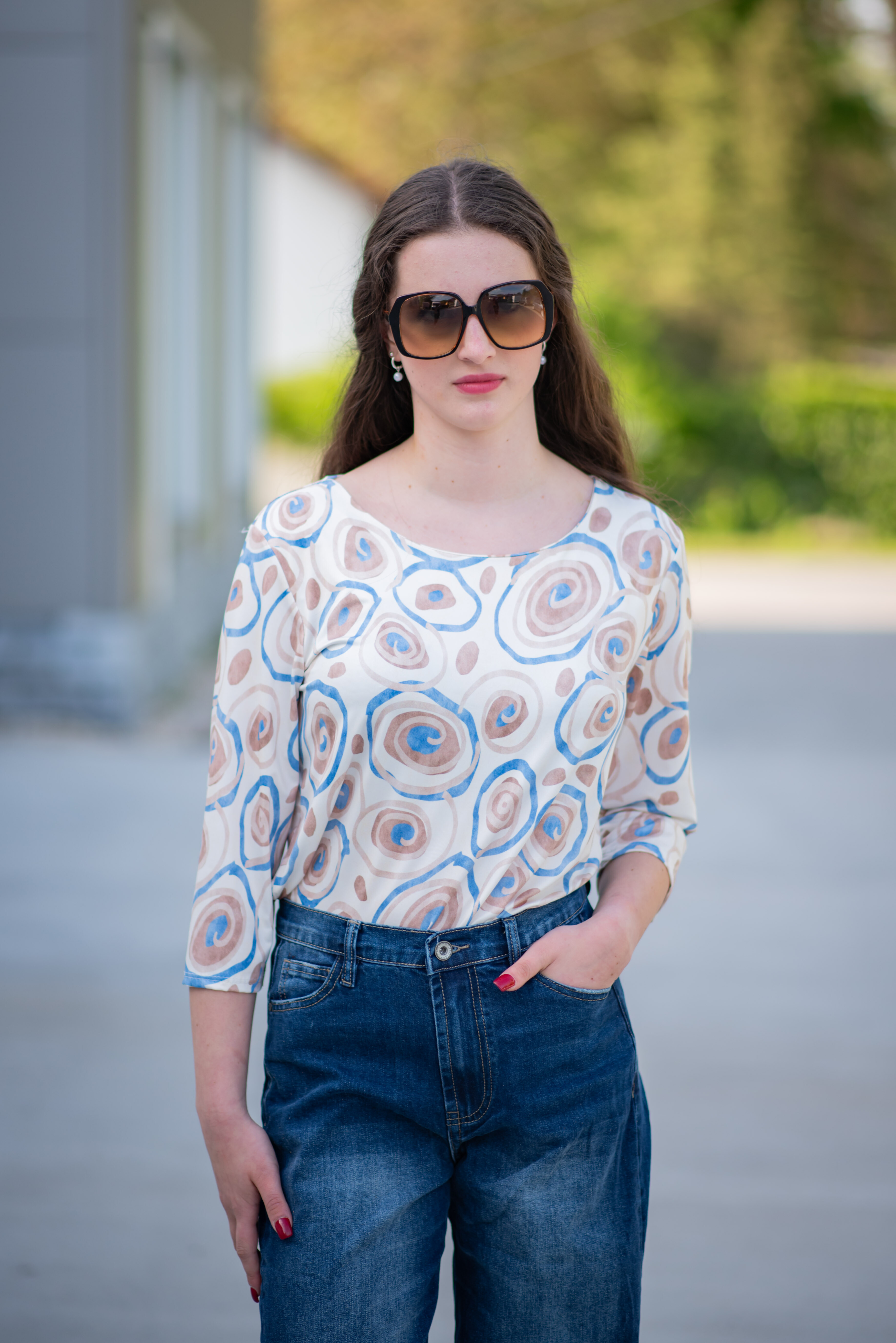 Módní halenka s potiskem. Halenka má 3/4 rukáv a kulatý výstřih, dovoz Itálie