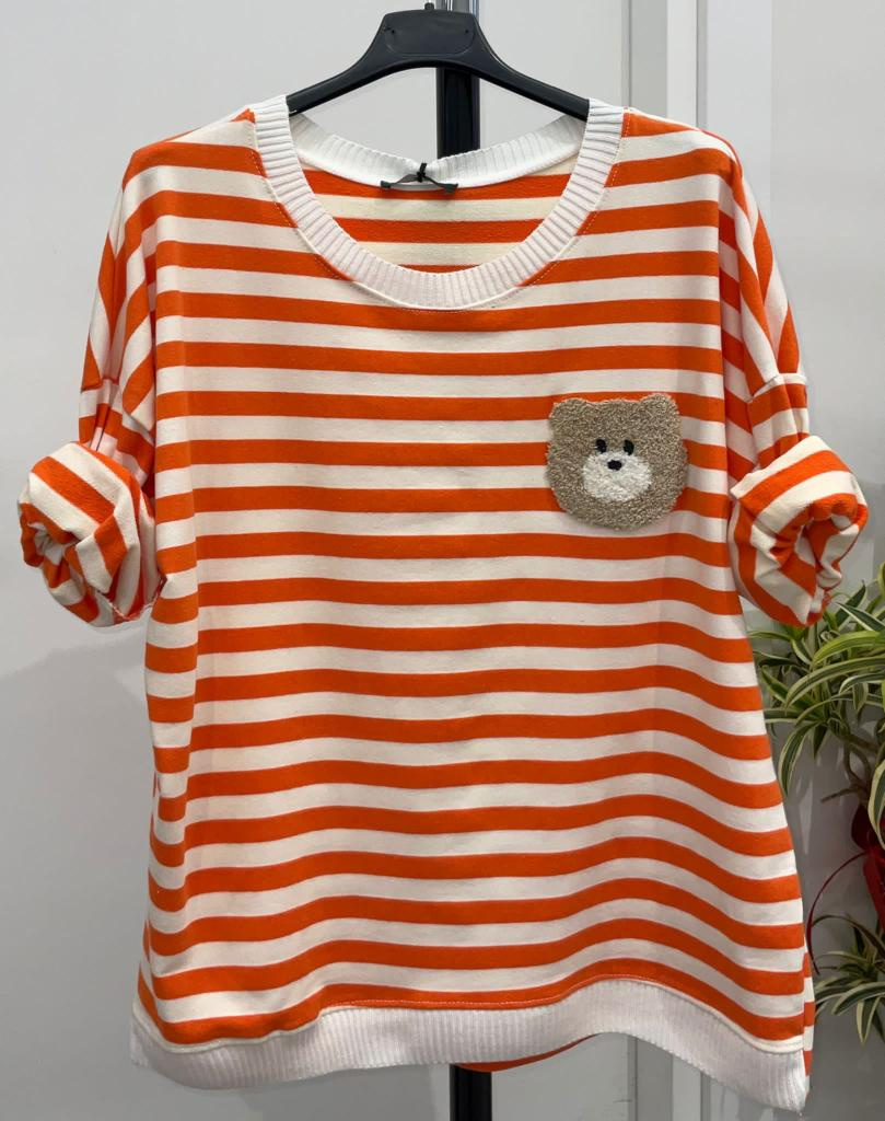 Halenka s proužkem aplikaci medvěd Teddy, dovoz Itálie