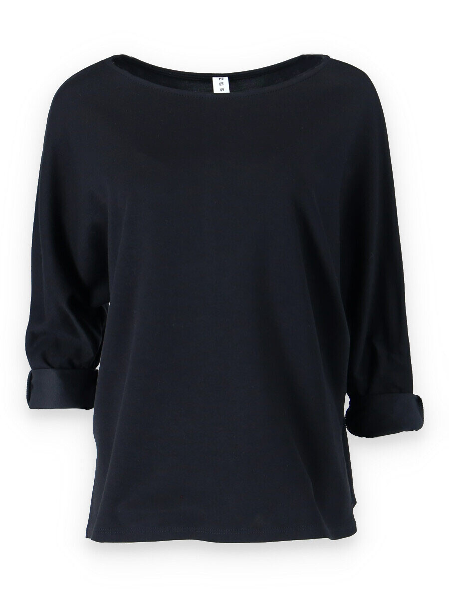 Halenka je volnějšího střihu a má kulatý výstřih.