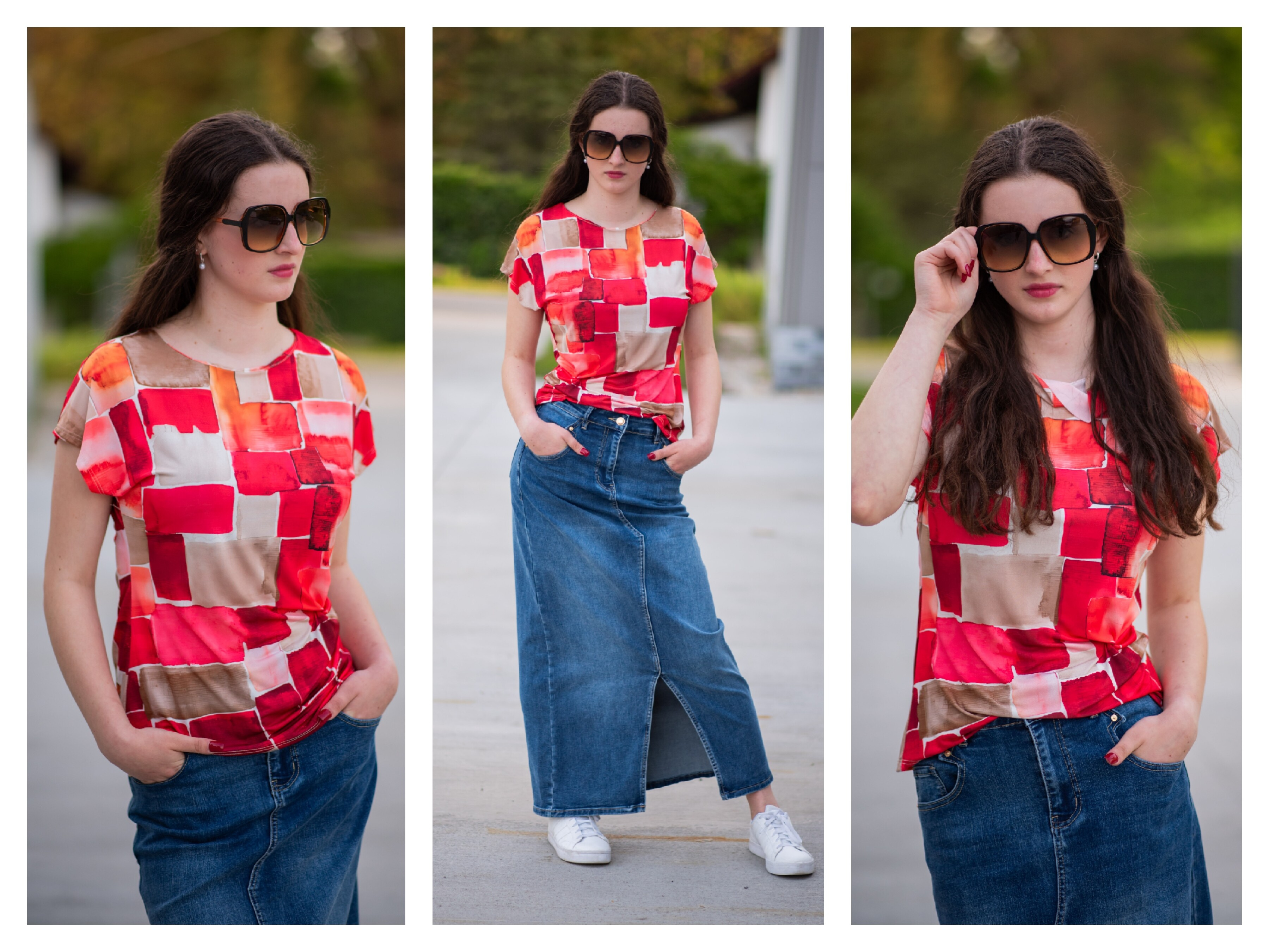 Barvy: červená, tmavě modrá, camel, khaki, černá