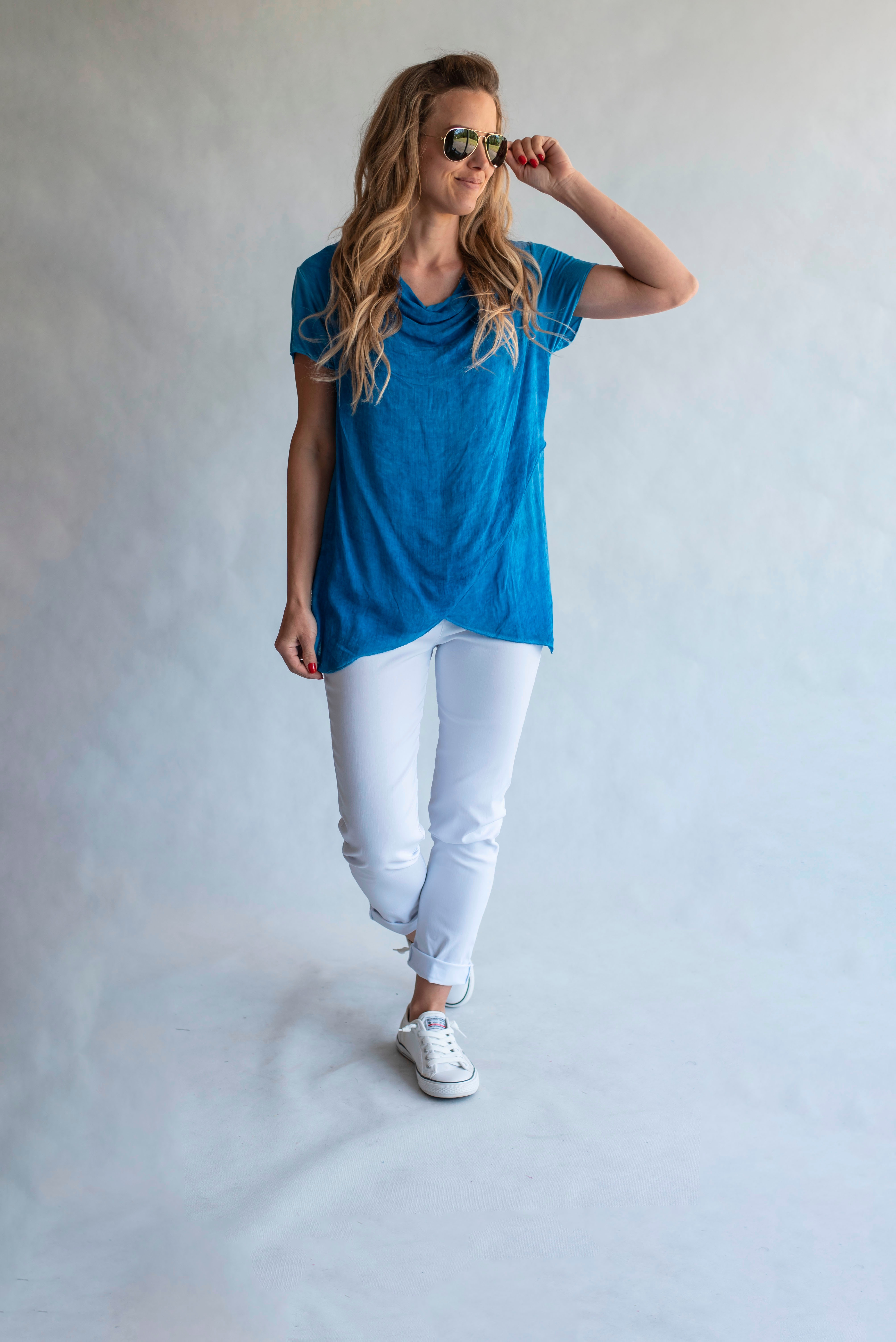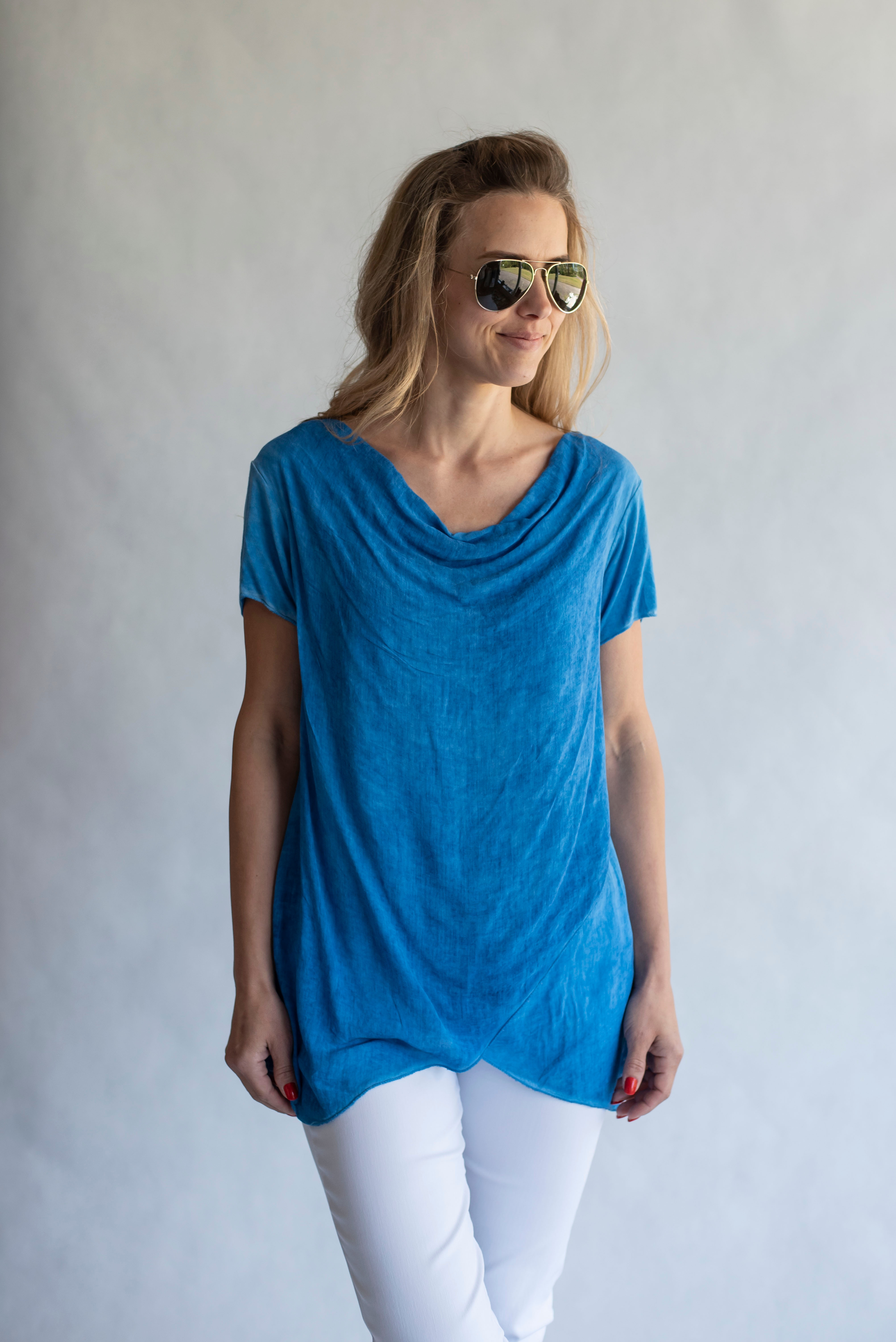 Letní halenka s vodou a krátkým rukávem, odlehčený materiál.