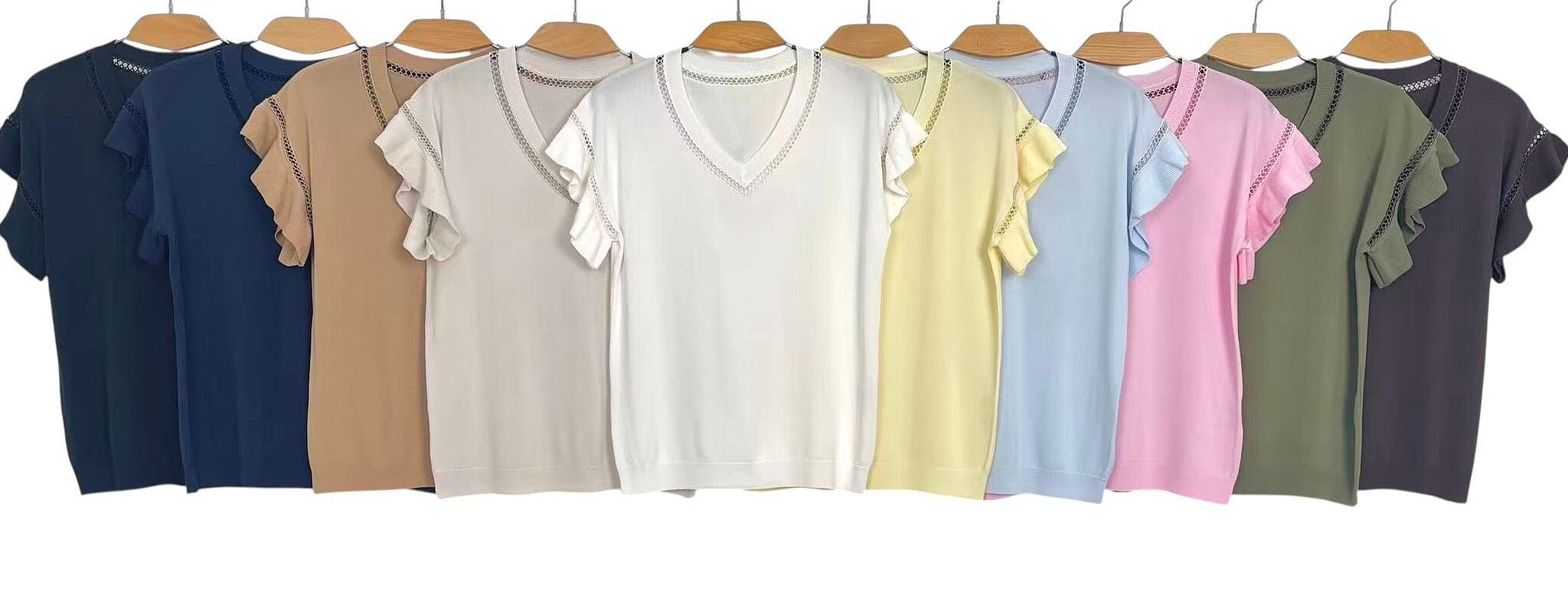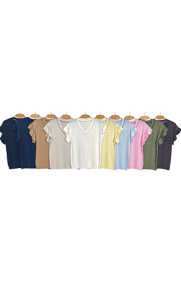 Elegantní halenka s krátkým volánkovým rukávem. Halenka má výstřih do V.