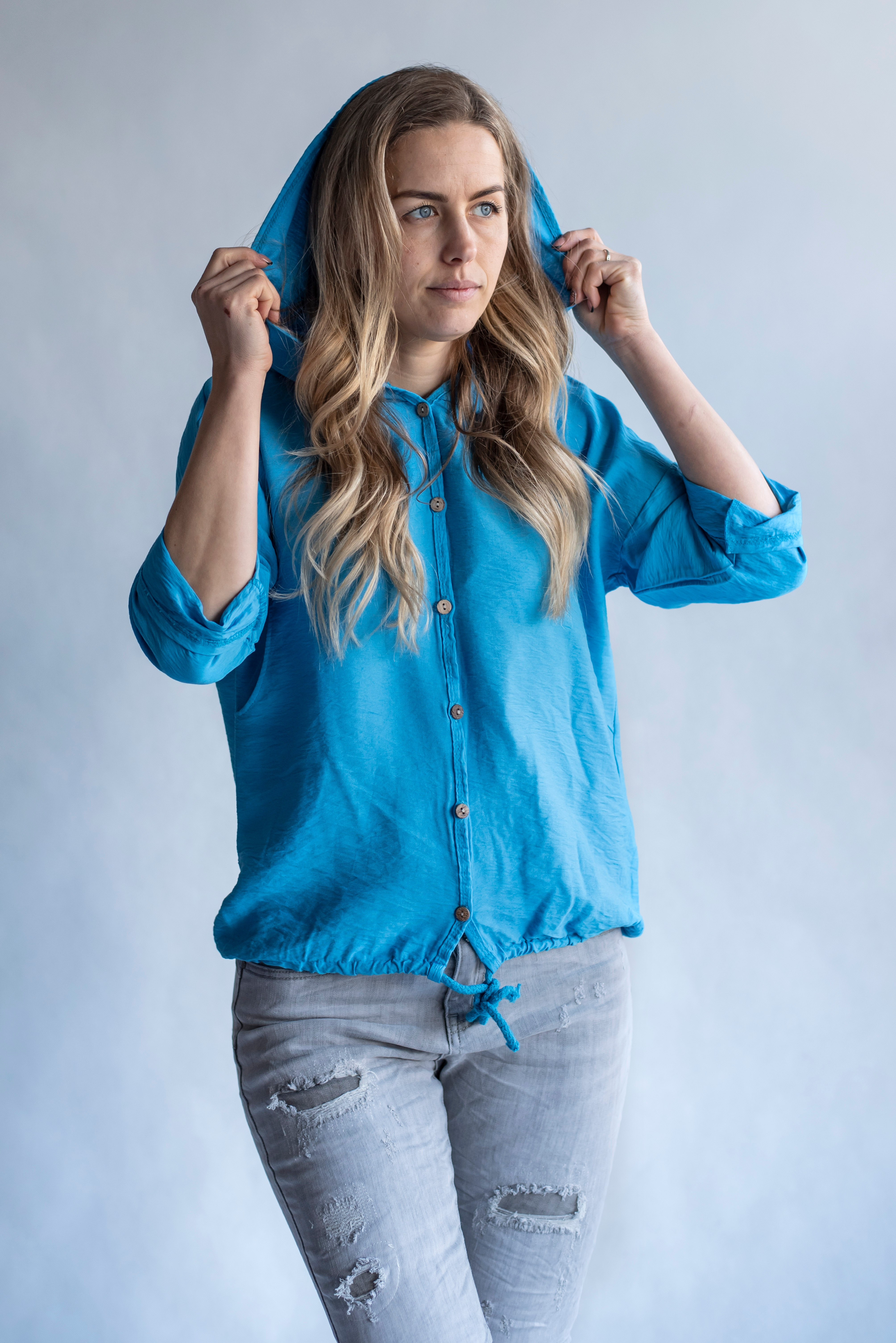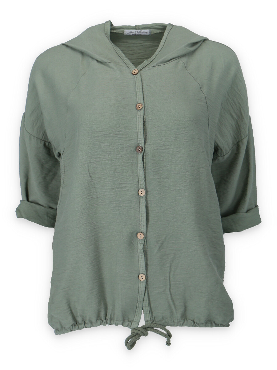 Halenka sportovní s kapucí, zapínaní na knoflíky s kapsami , dovoz Itálie
