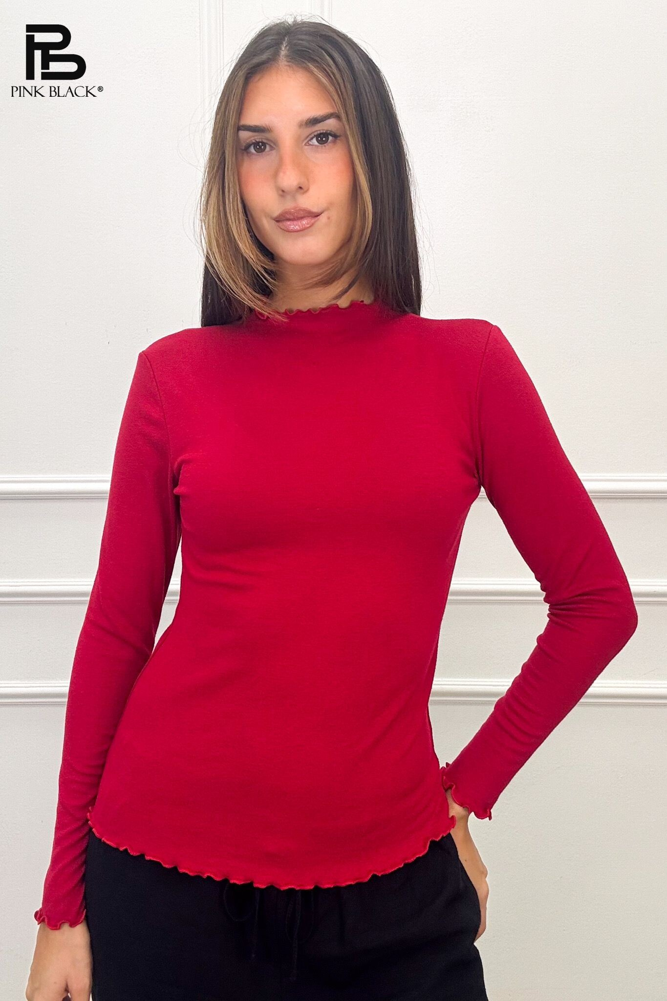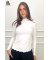 Elegantní halenka se stojáčkem. Halenka má drobné řasení v oblasti krku, rovněž rukávy a spodní část zakončena jemným řasením.
