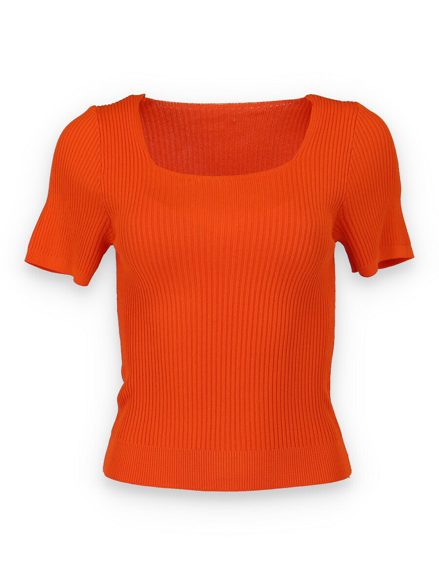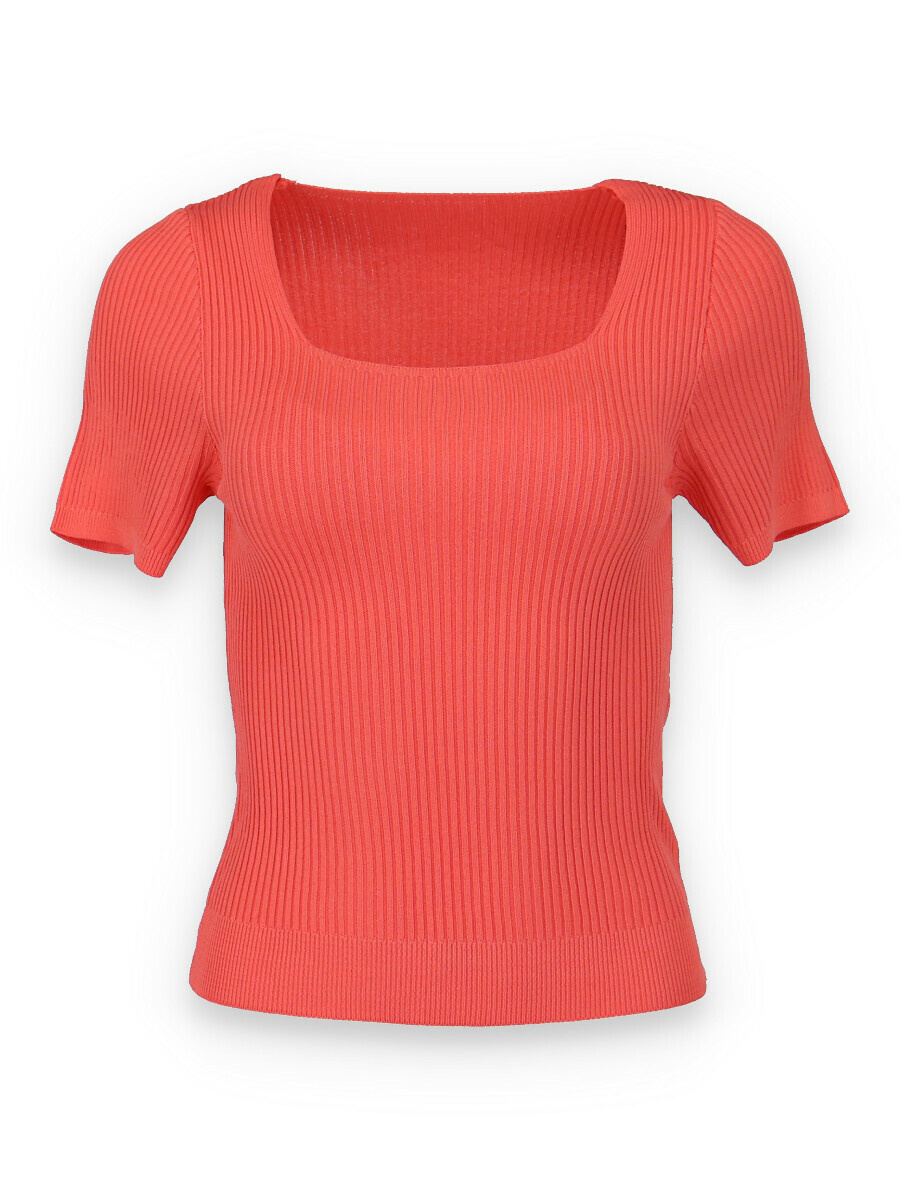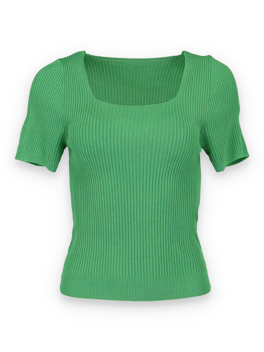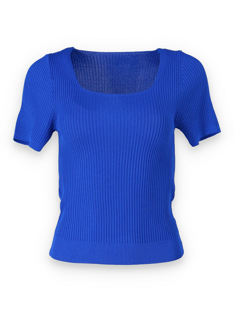 Módní halenka s krátkým rukávem, z žebrovaného úpletu.