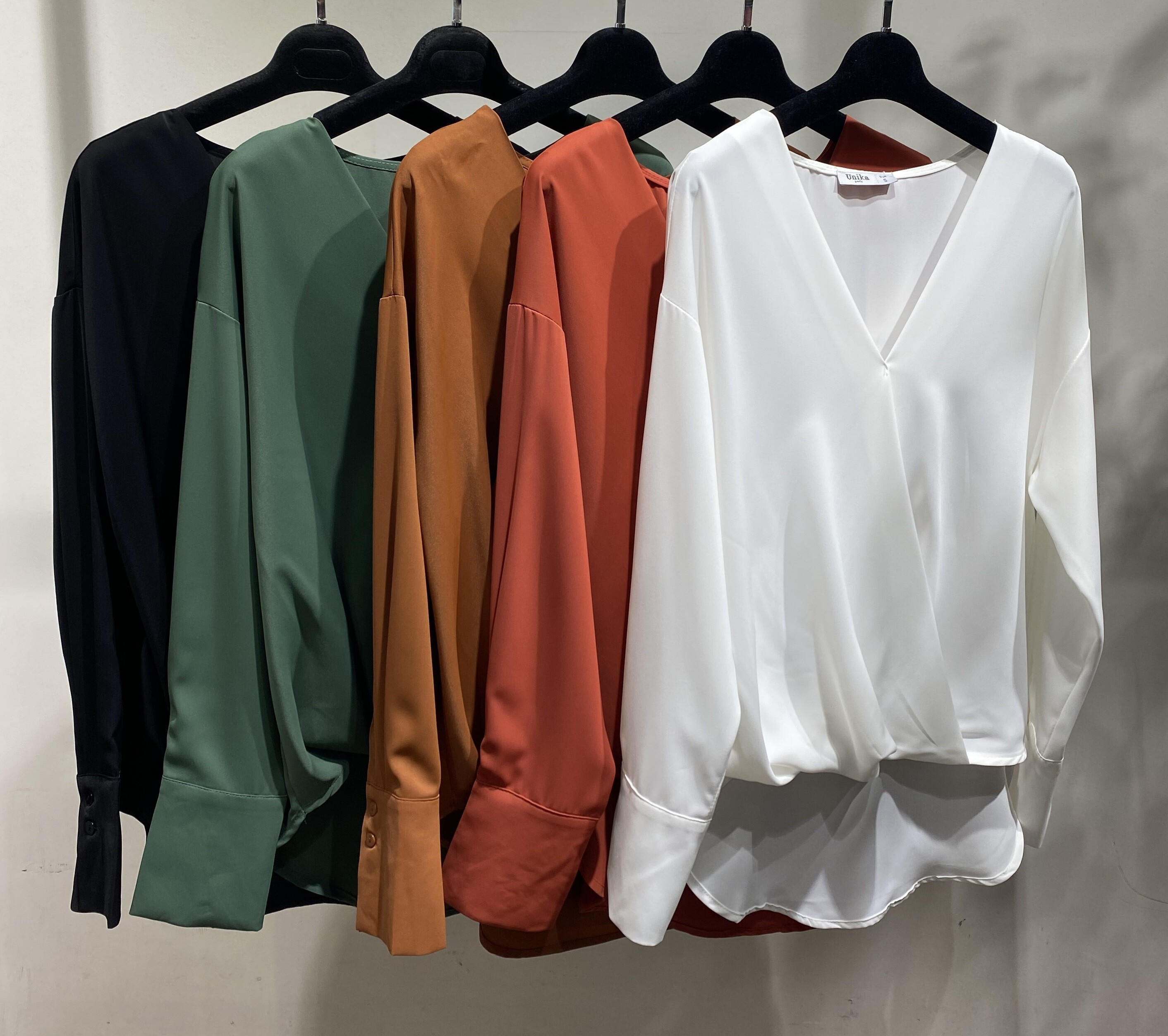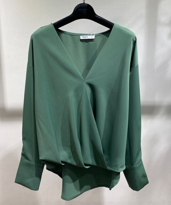 Halenka s překřížením na prsou, výstřih do V a dlouhým rukávem.