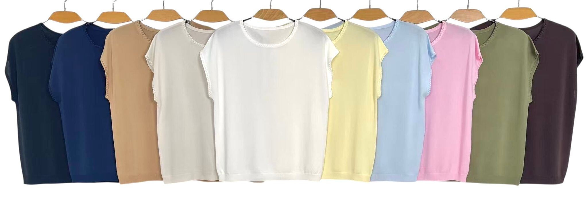 Barvy: bílá, béžová, sv. žlutá, růžová, sv. modrá, tm. modrá, khaki, camel, tm. hnědá, černá
