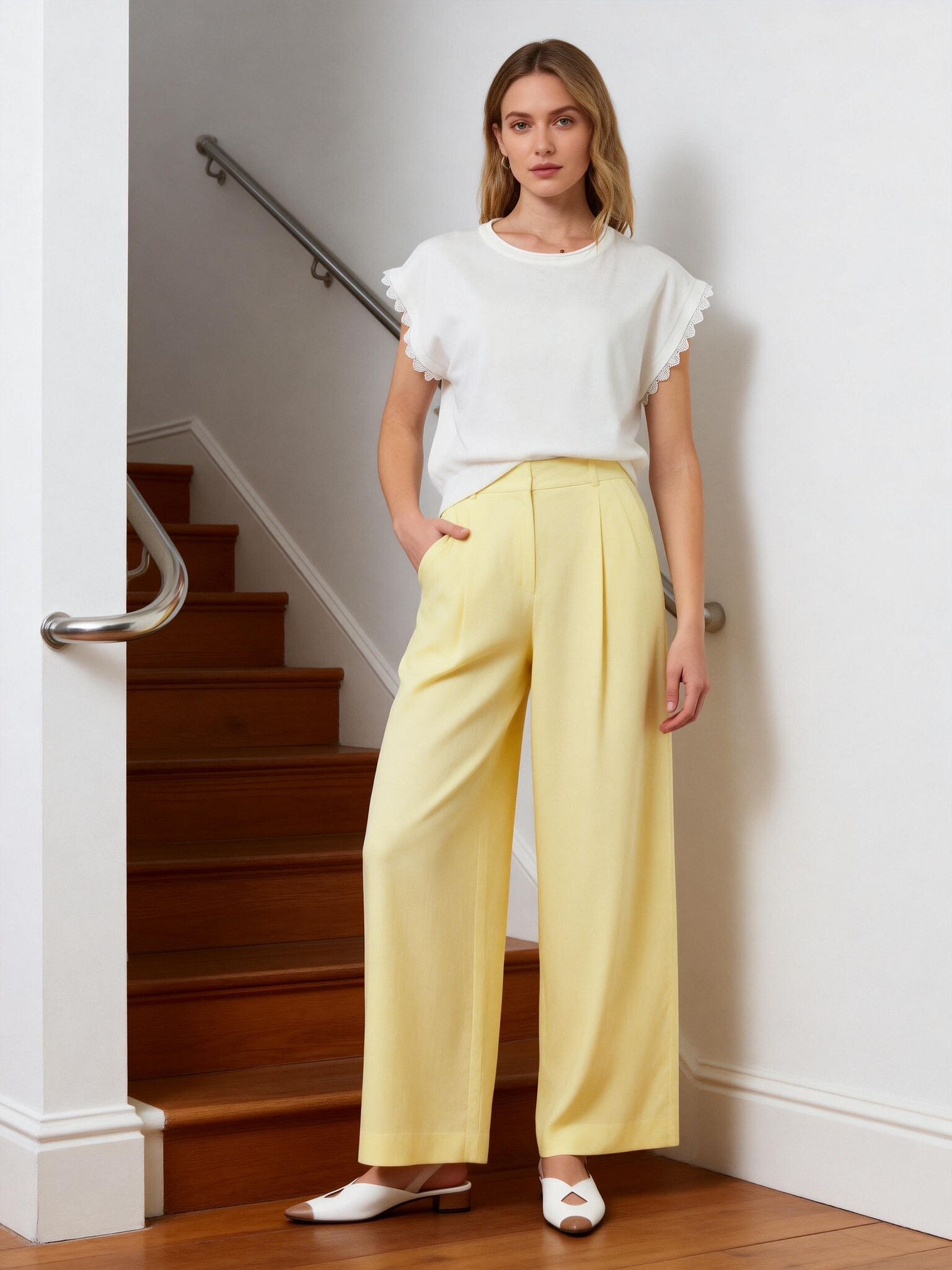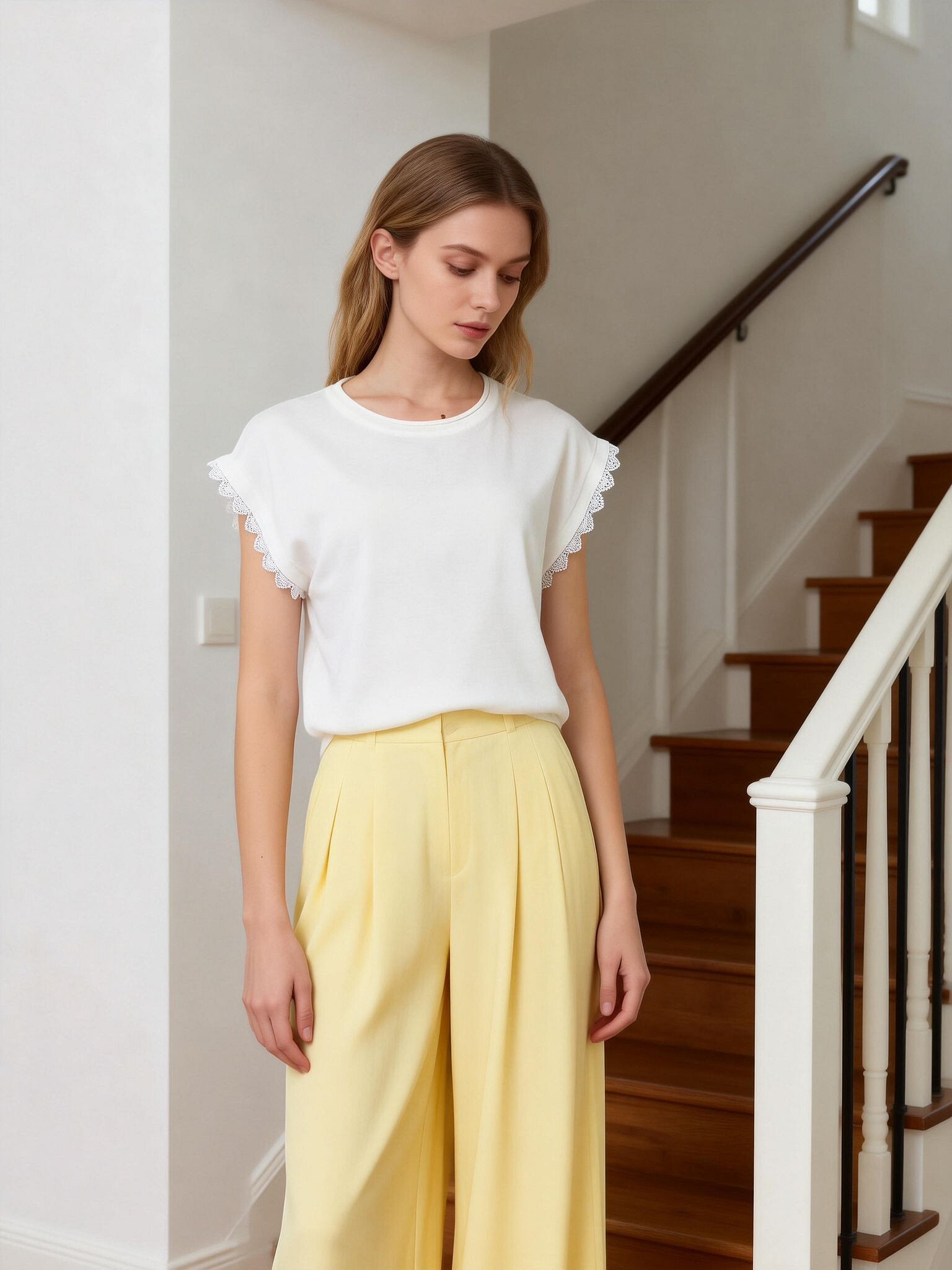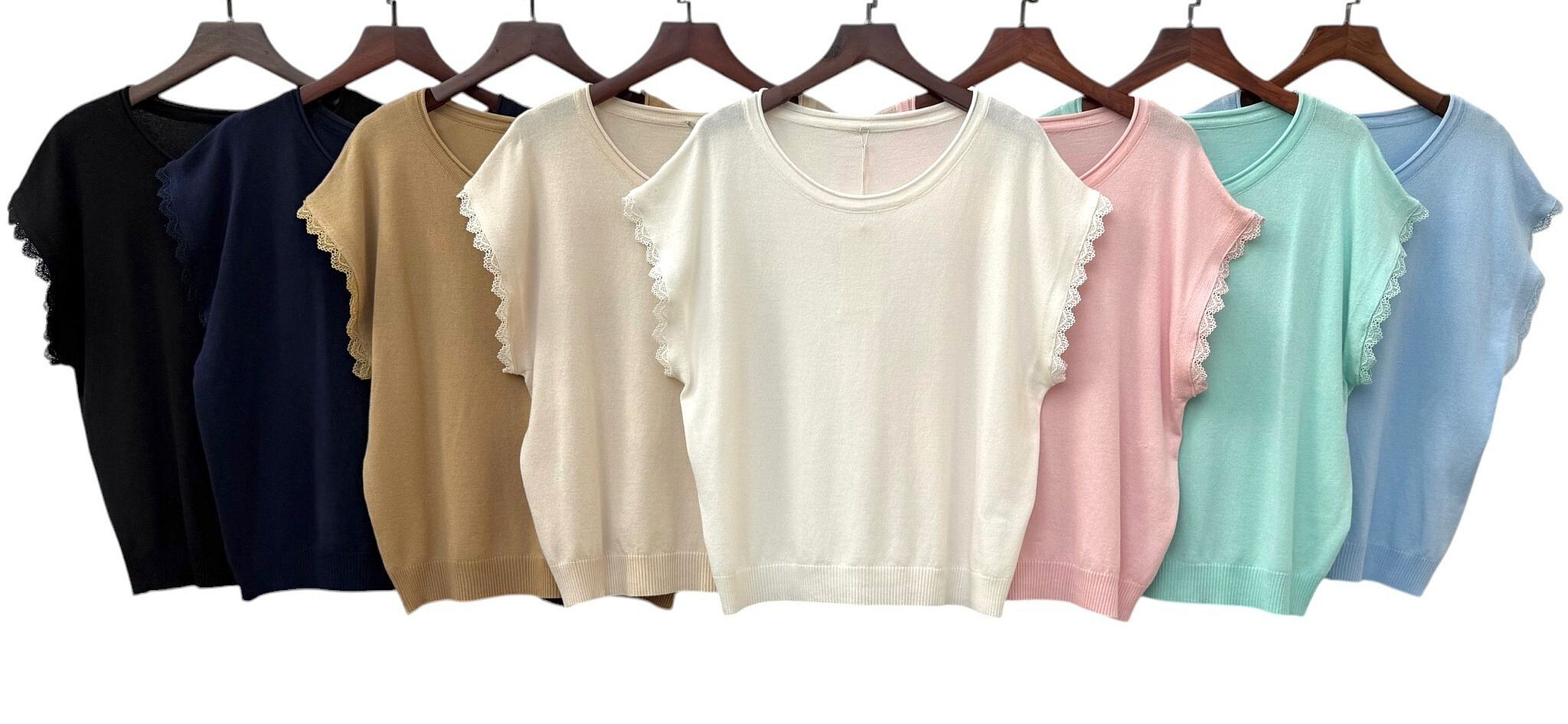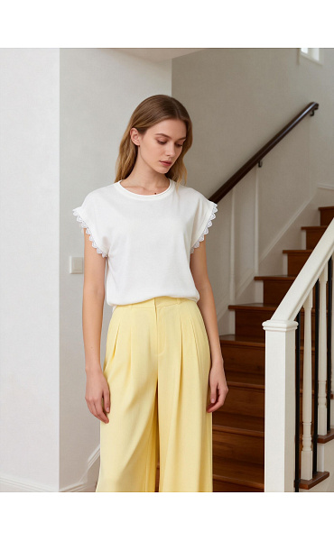 Elegantní halenka s krátkým rukávem s ozdobným krajkovým lemem.