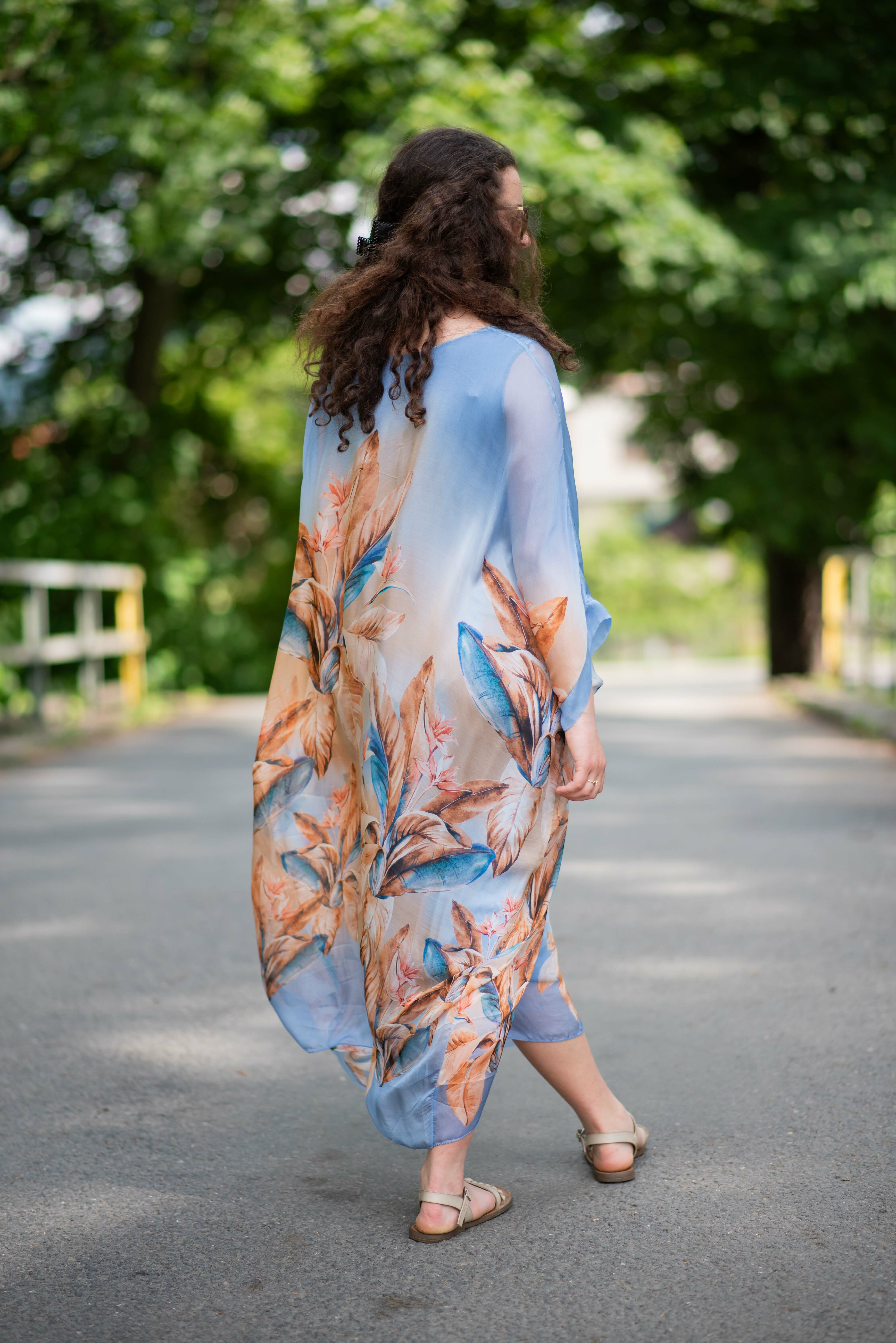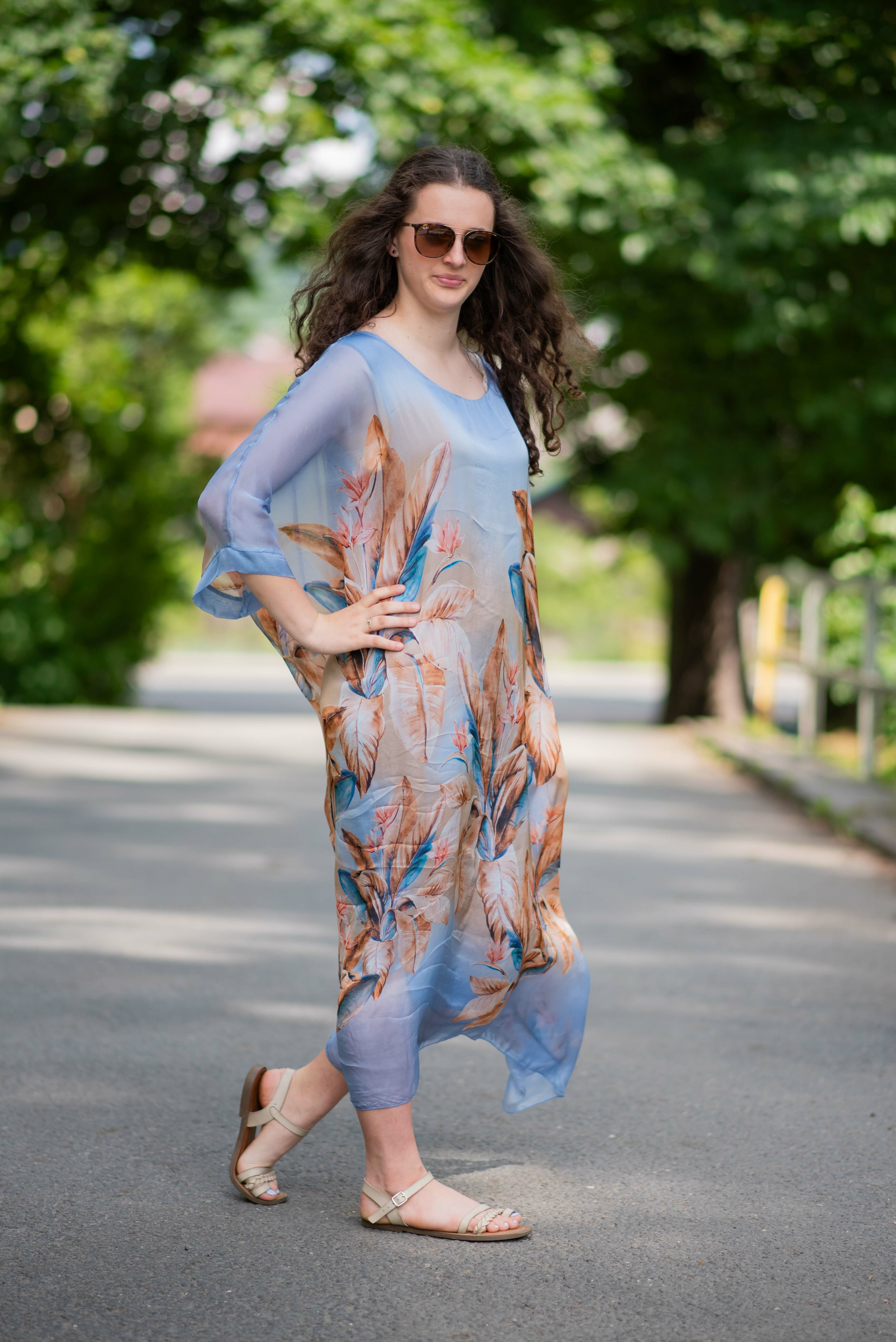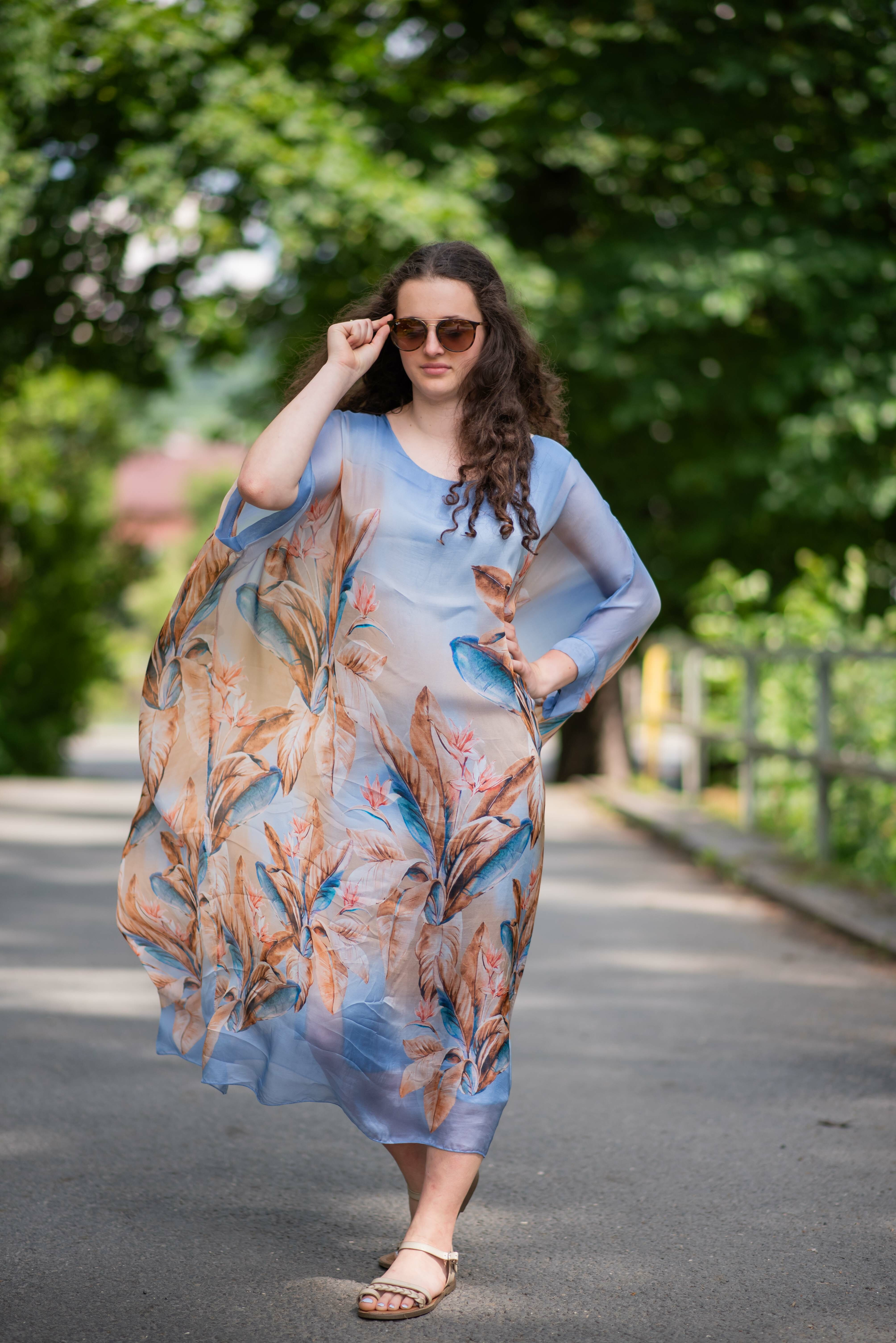 Elegantní letní hedvábné šaty s podšívkou, šaty mají raglanový rukáv, jsou oversize volného střihu.