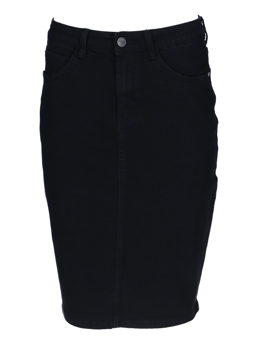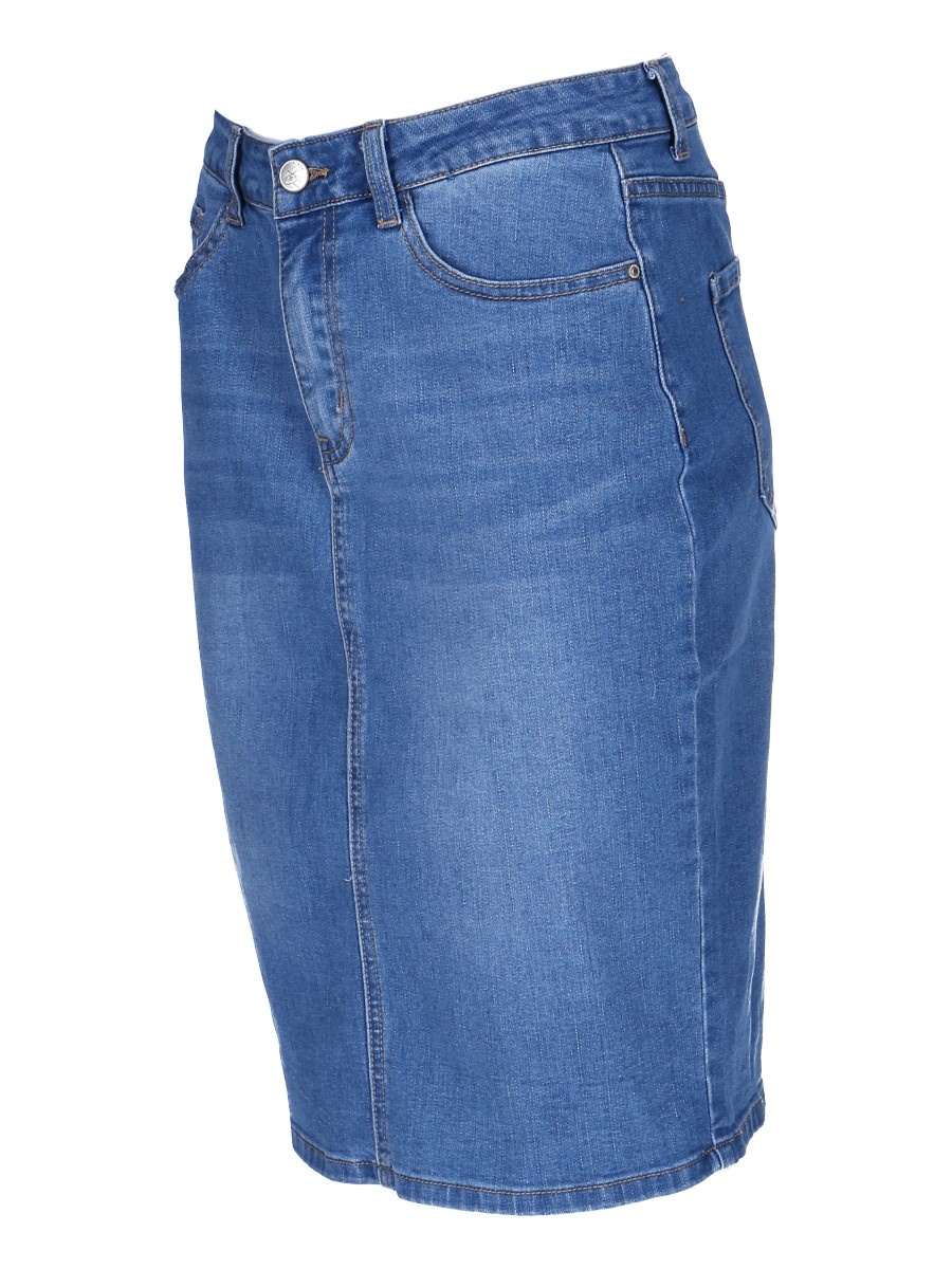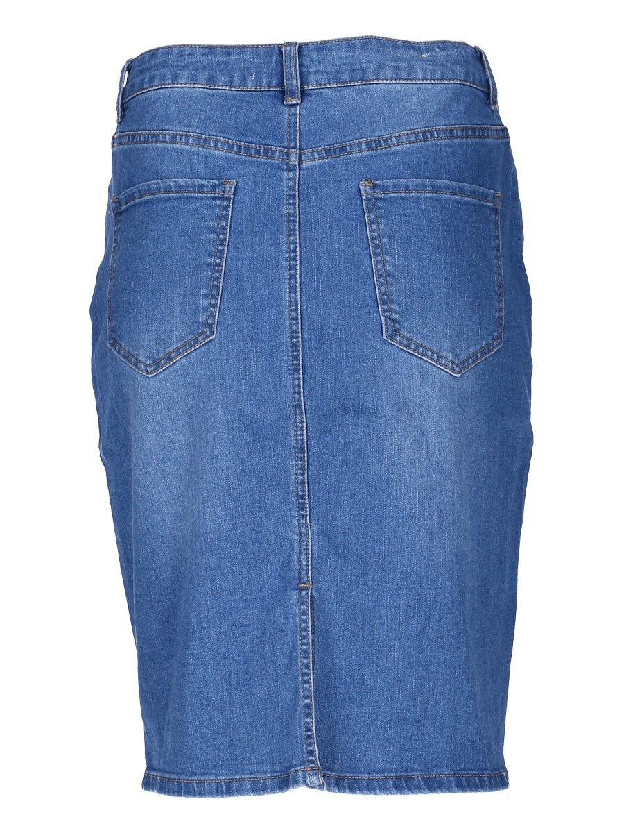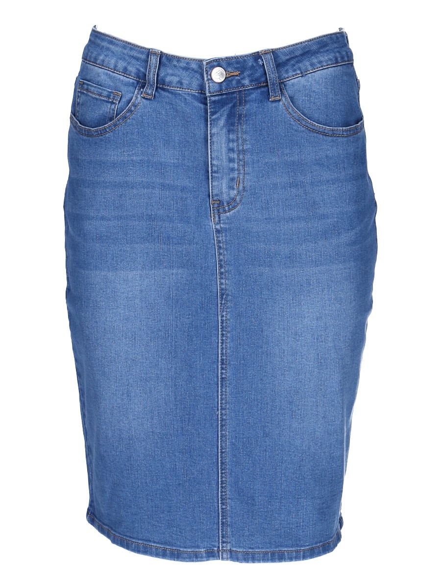 Klasická jeans sukně pohodlného střihu ke kolenům.