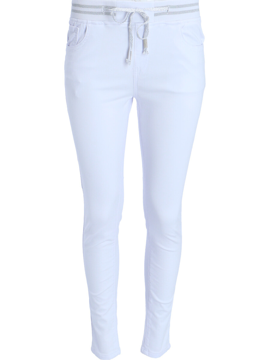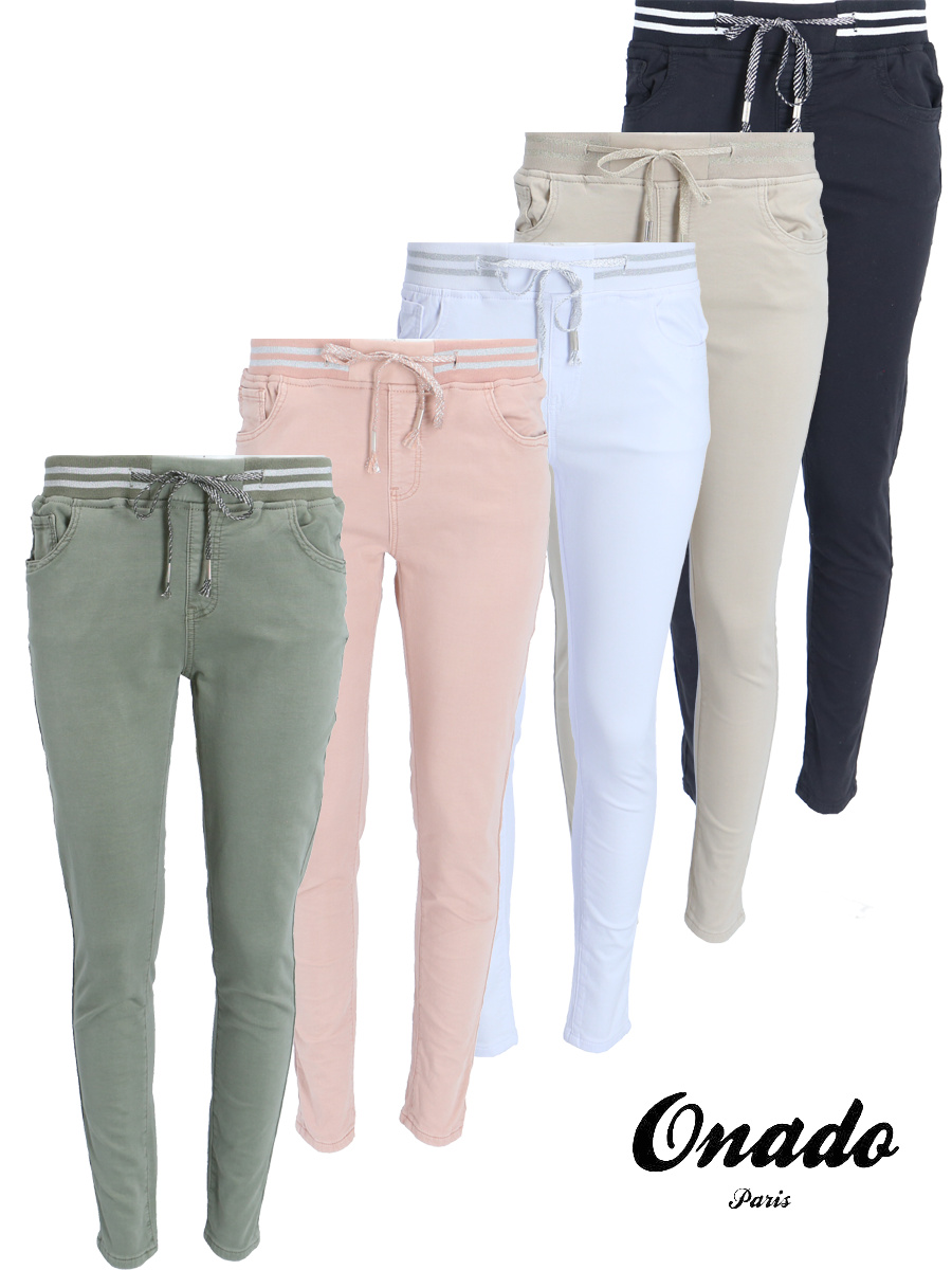 Elegantní dámské jeans kalhoty s elastickým pasem, pohodlné pro denní nošení, od francouzské značky Onado Paris