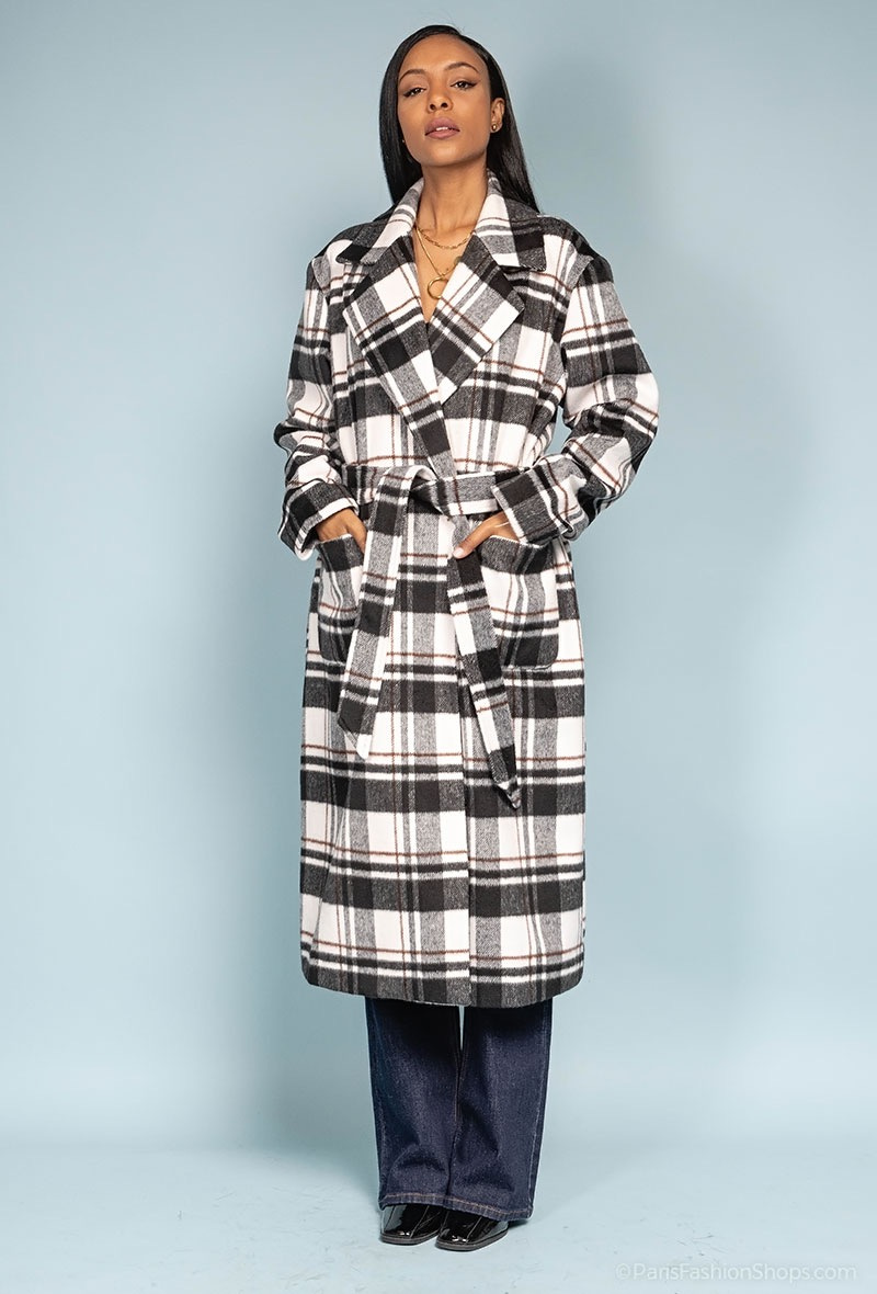 Módní károvaný kabát s elegantním límcem, francouzské značky Escandelle Paris