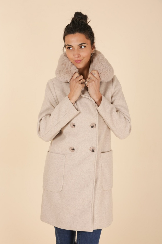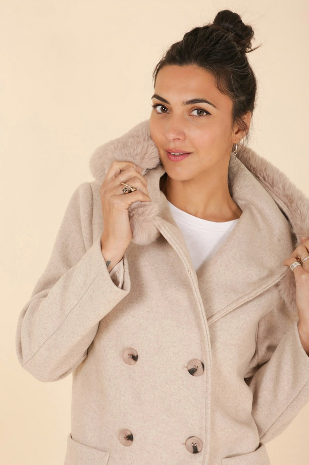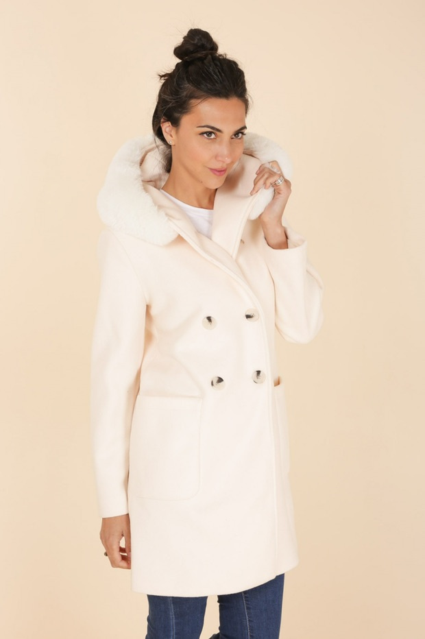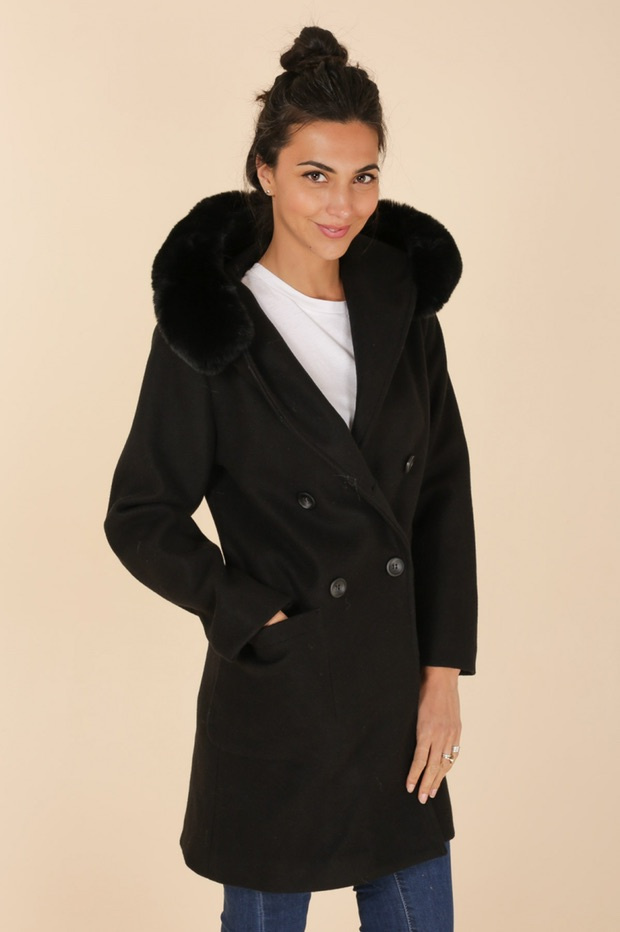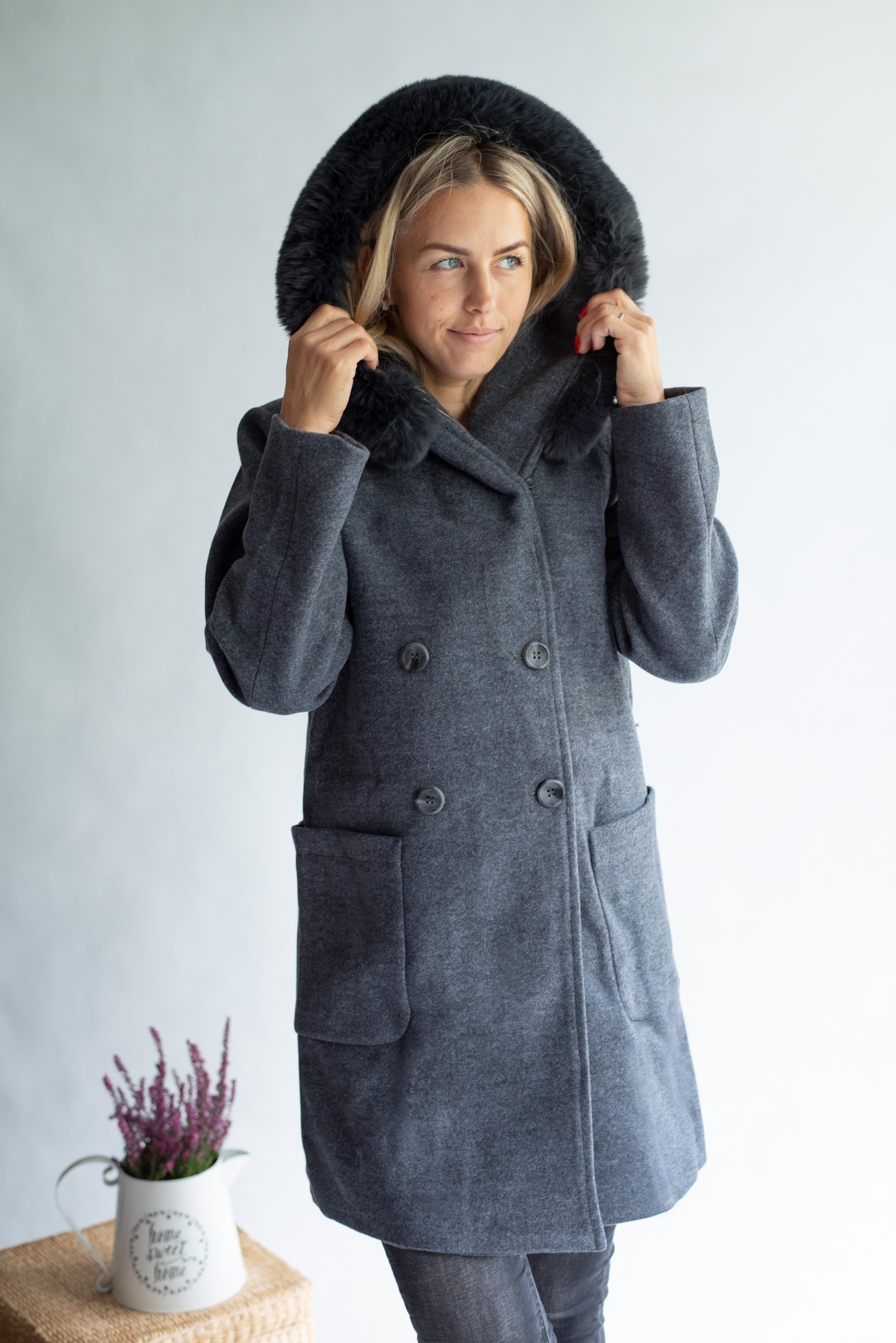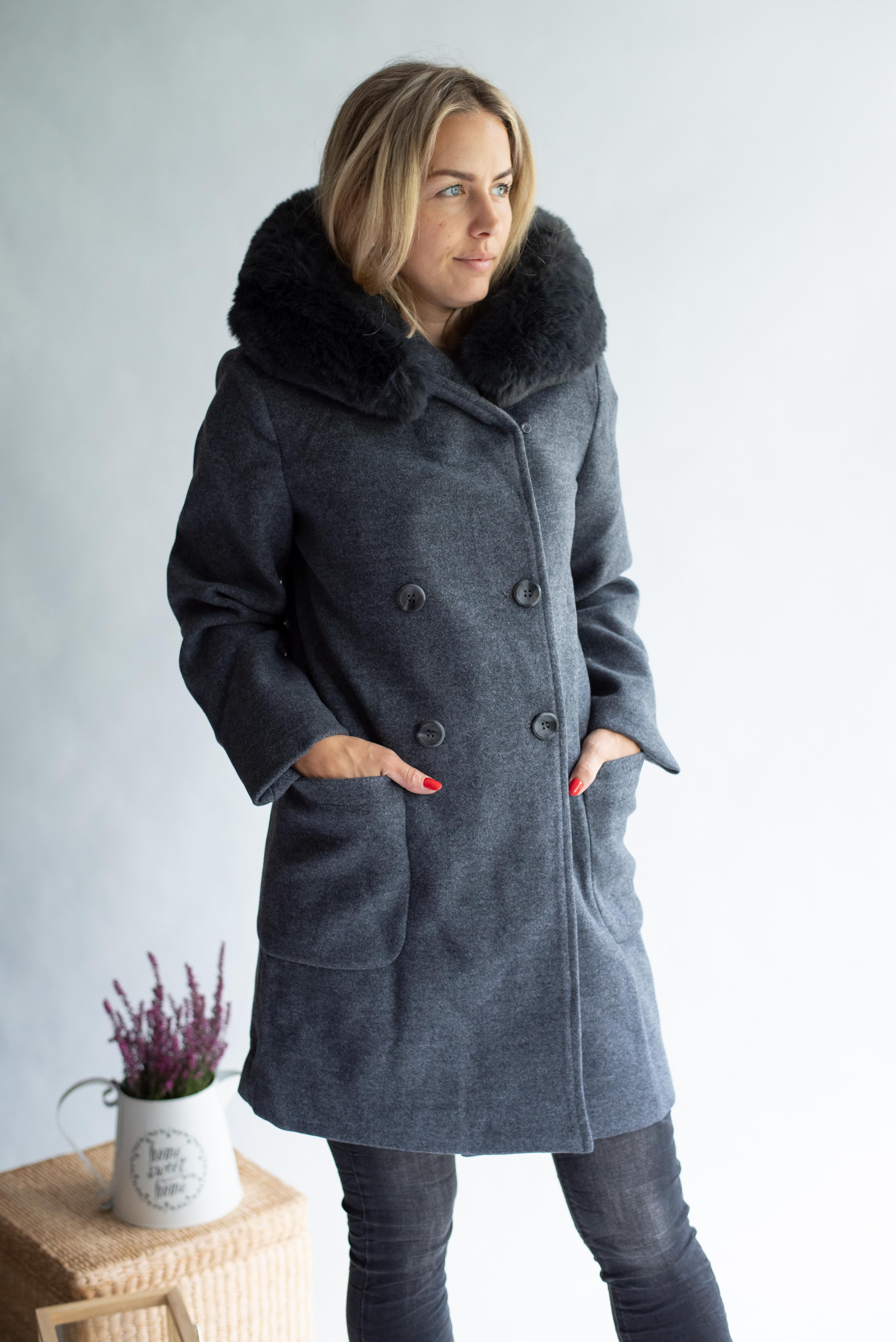Kabát s kožešinovou kapucí Laura Jo Paris 21027