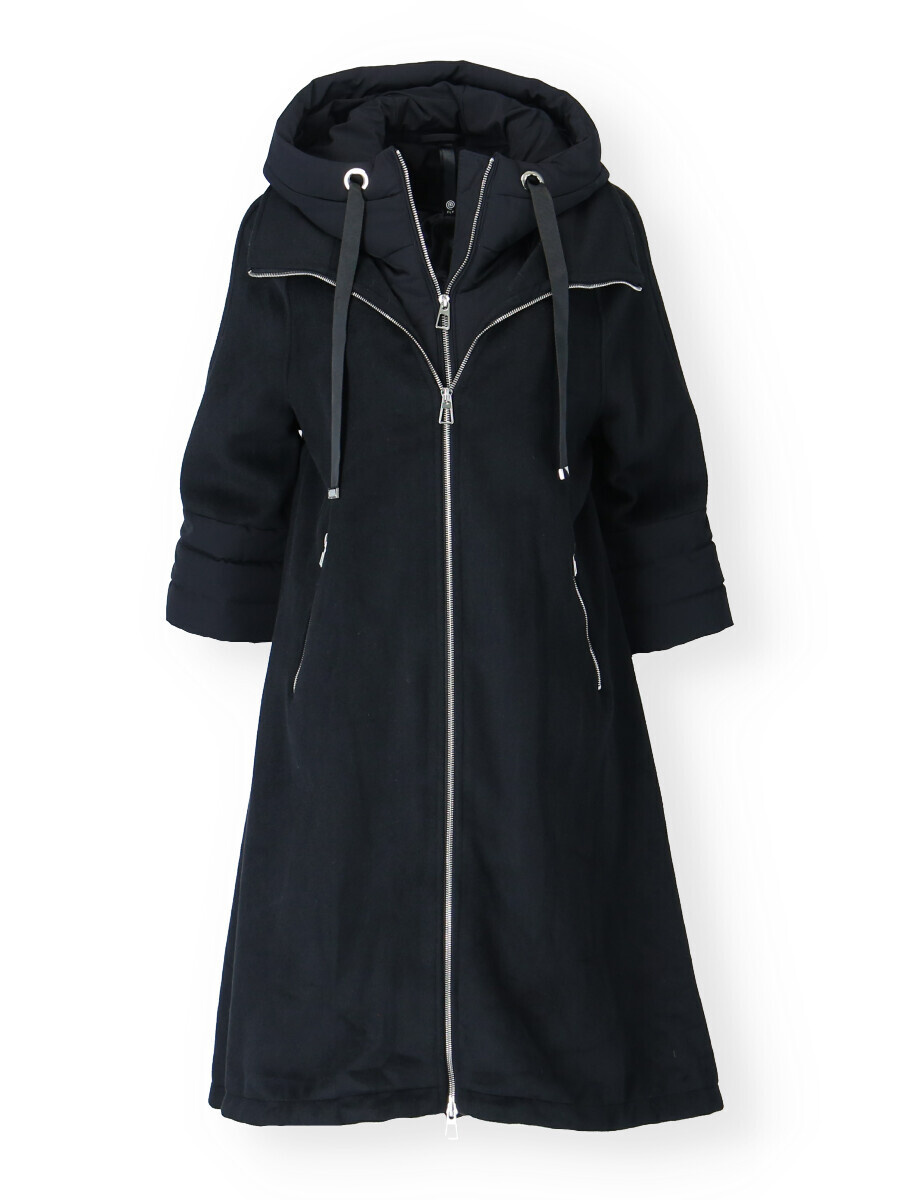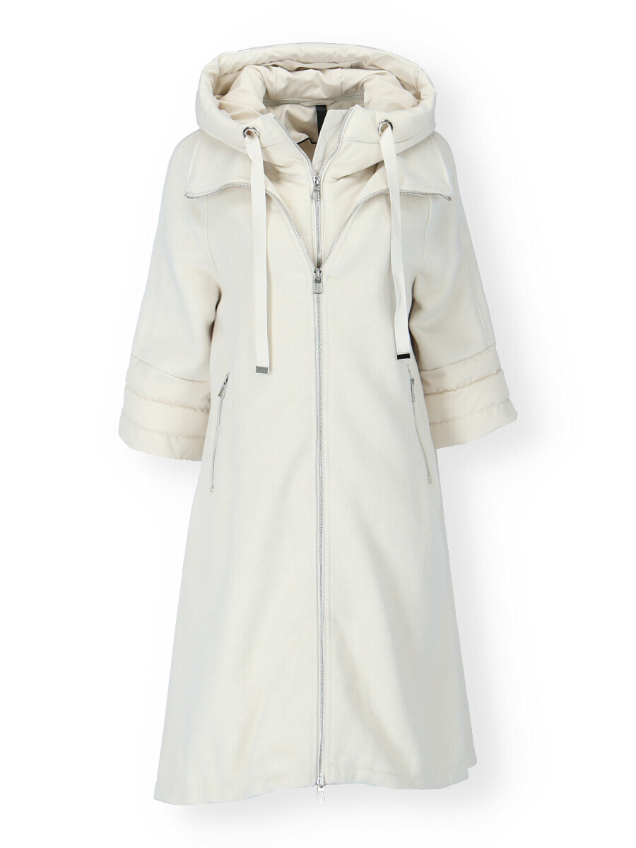 Zimní kabátek s kapucí 3/4 rukáv, regulace ve spodní části.
