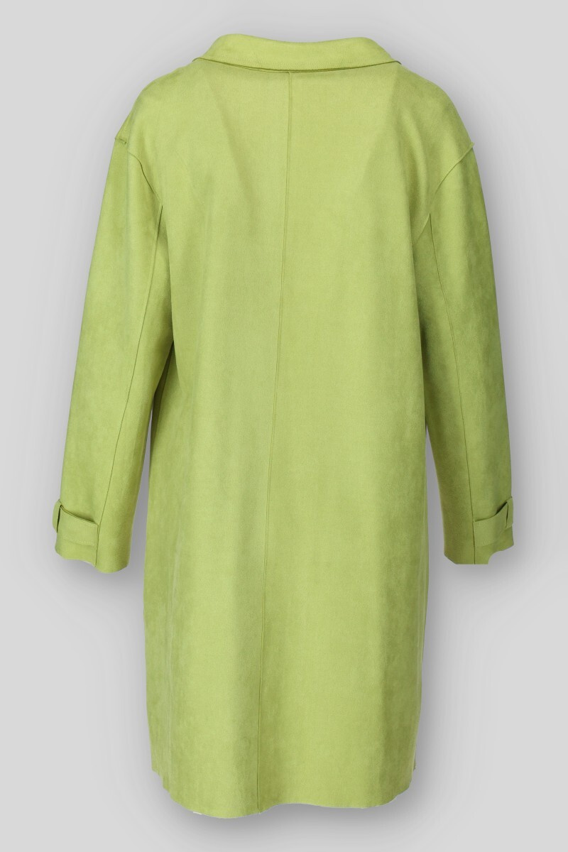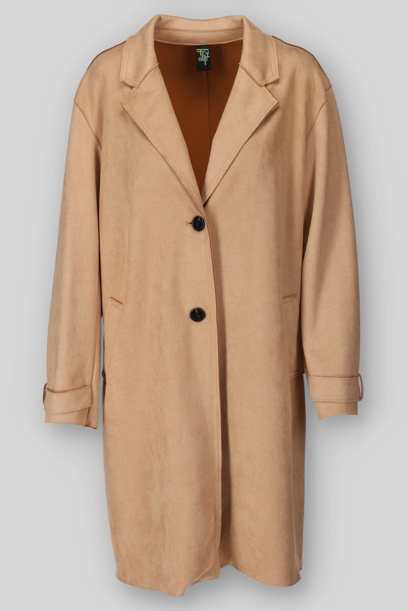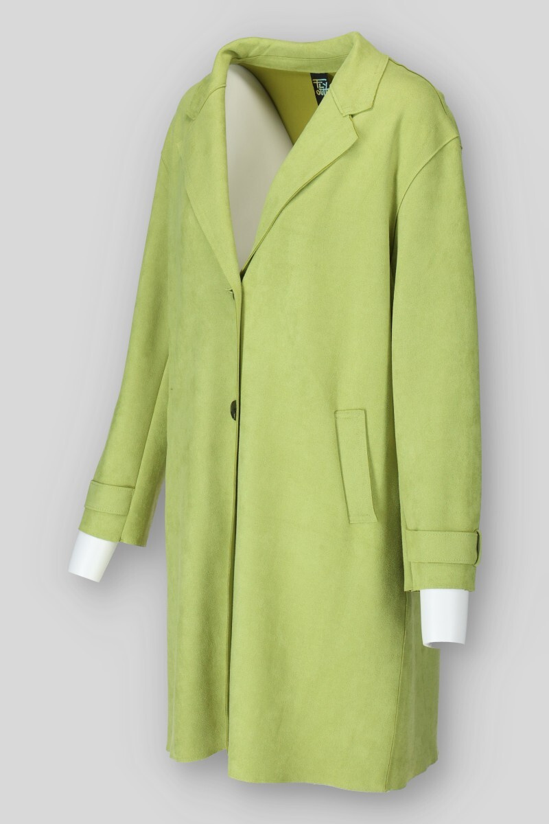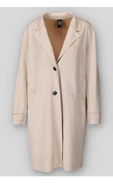 Dámský stylový kabátek imitace broušené kůže. Kabátek má límec a zapínání na knoflíky.