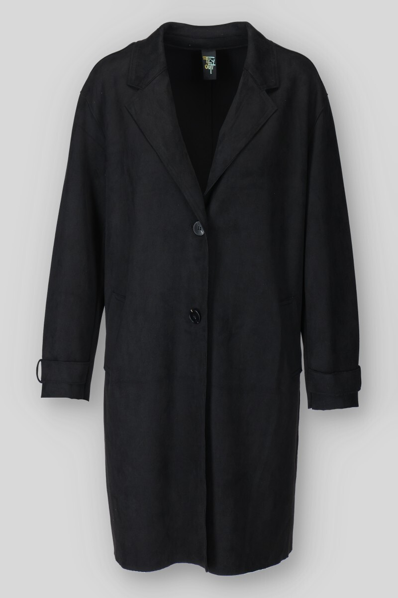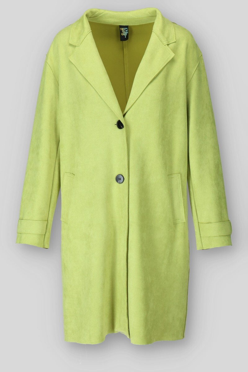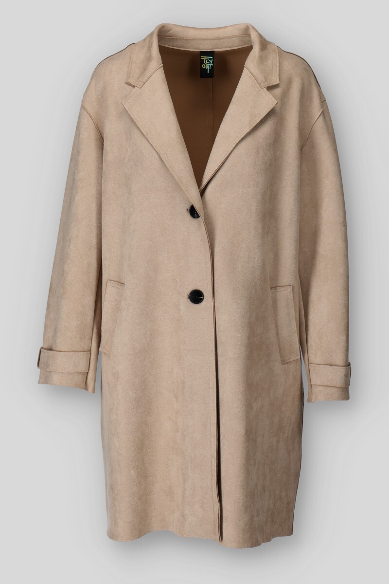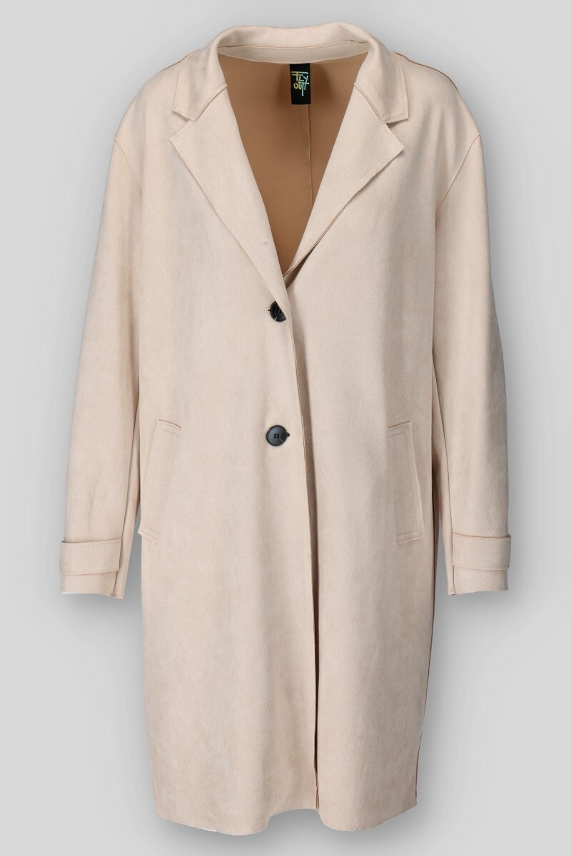 Dámský stylový kabátek imitace broušené kůže. Kabátek má límec a zapínání na knoflíky.