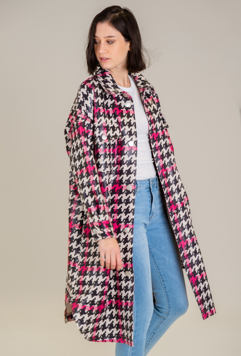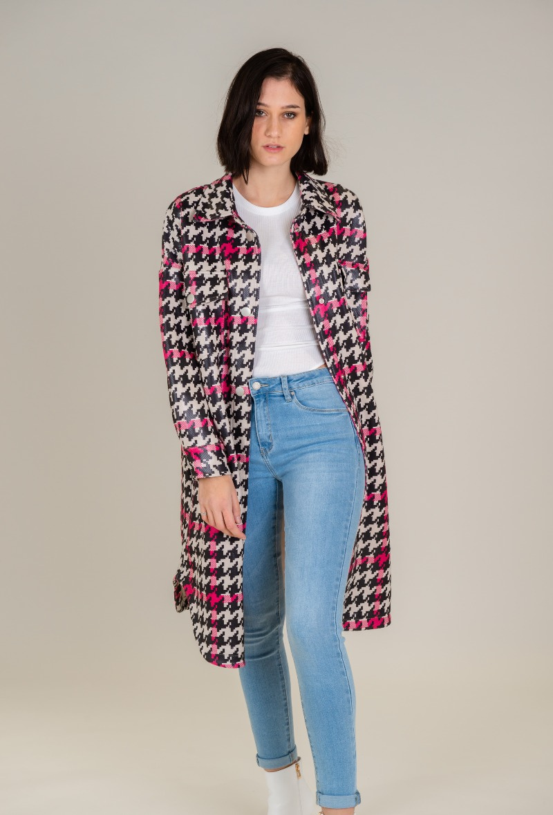 Trendy kabátek jaro/podzim, efektní a zároveň velmi módní design materiálu a střihu,pro denní použití od firmy Madison Paris. Dovezeno z Francie. Velikosti a rozměry: S,M,L,. Složení materiálu: ,polyester 90% , spandex 10% .