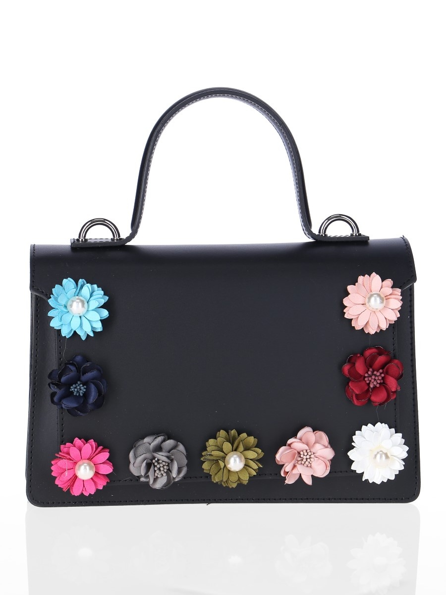 Kabelka kůže klopa květiny barva: černá