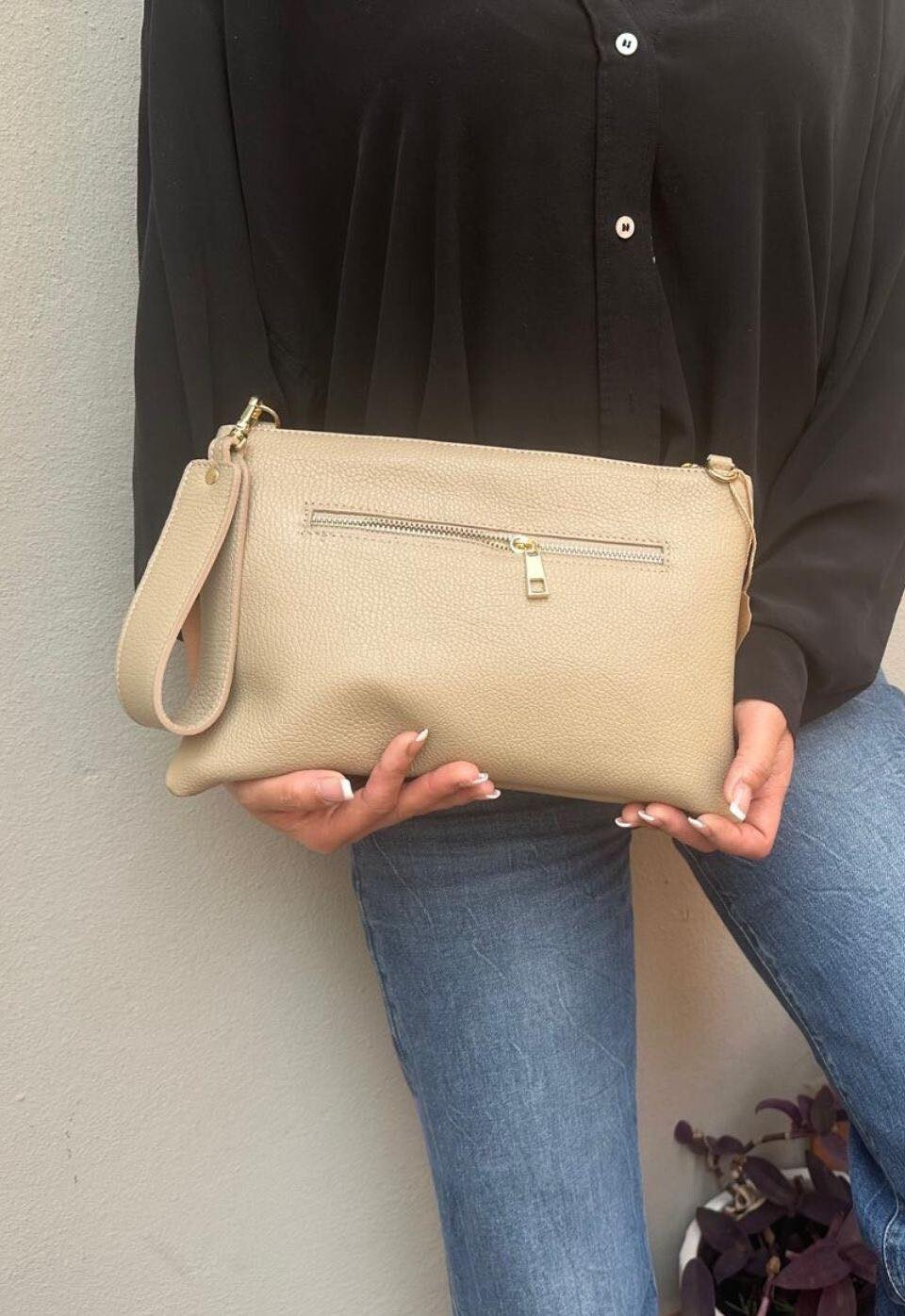 • Dámská malá kožená kabelka typu psaní, na zip, s další vnitřní uzavíratelnou kapsou na zip.