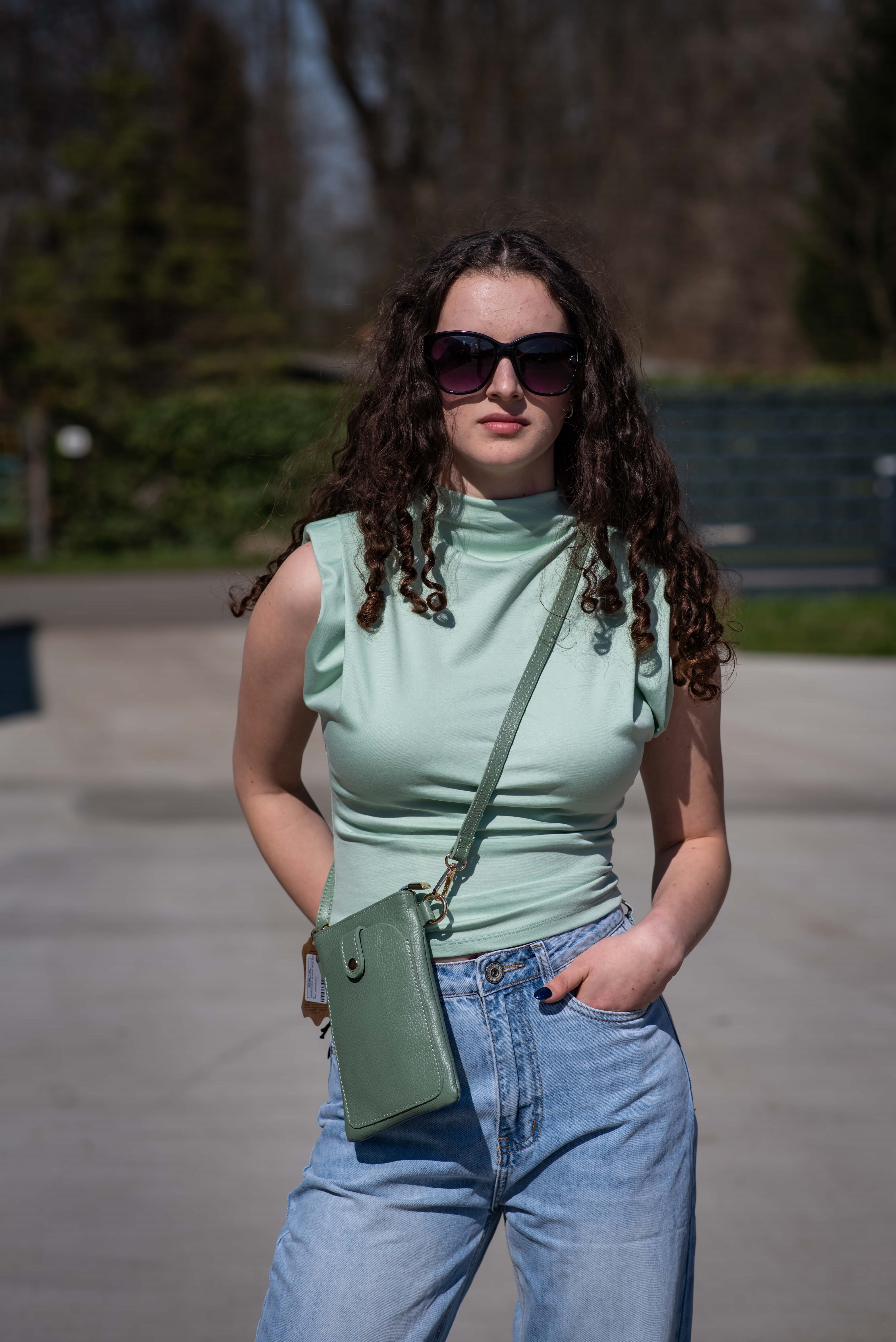 - Stylová dámská kožená kabelka na mobil