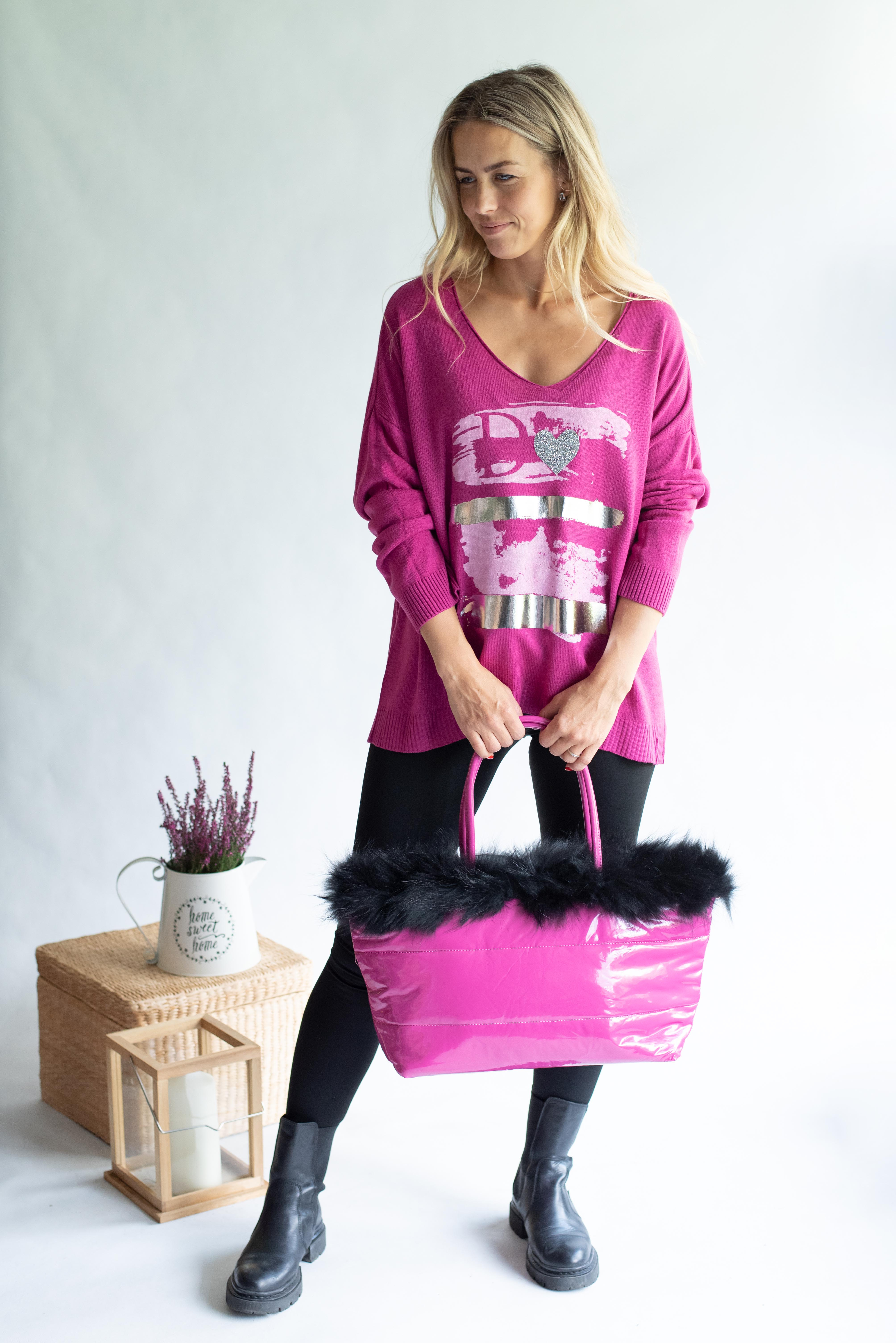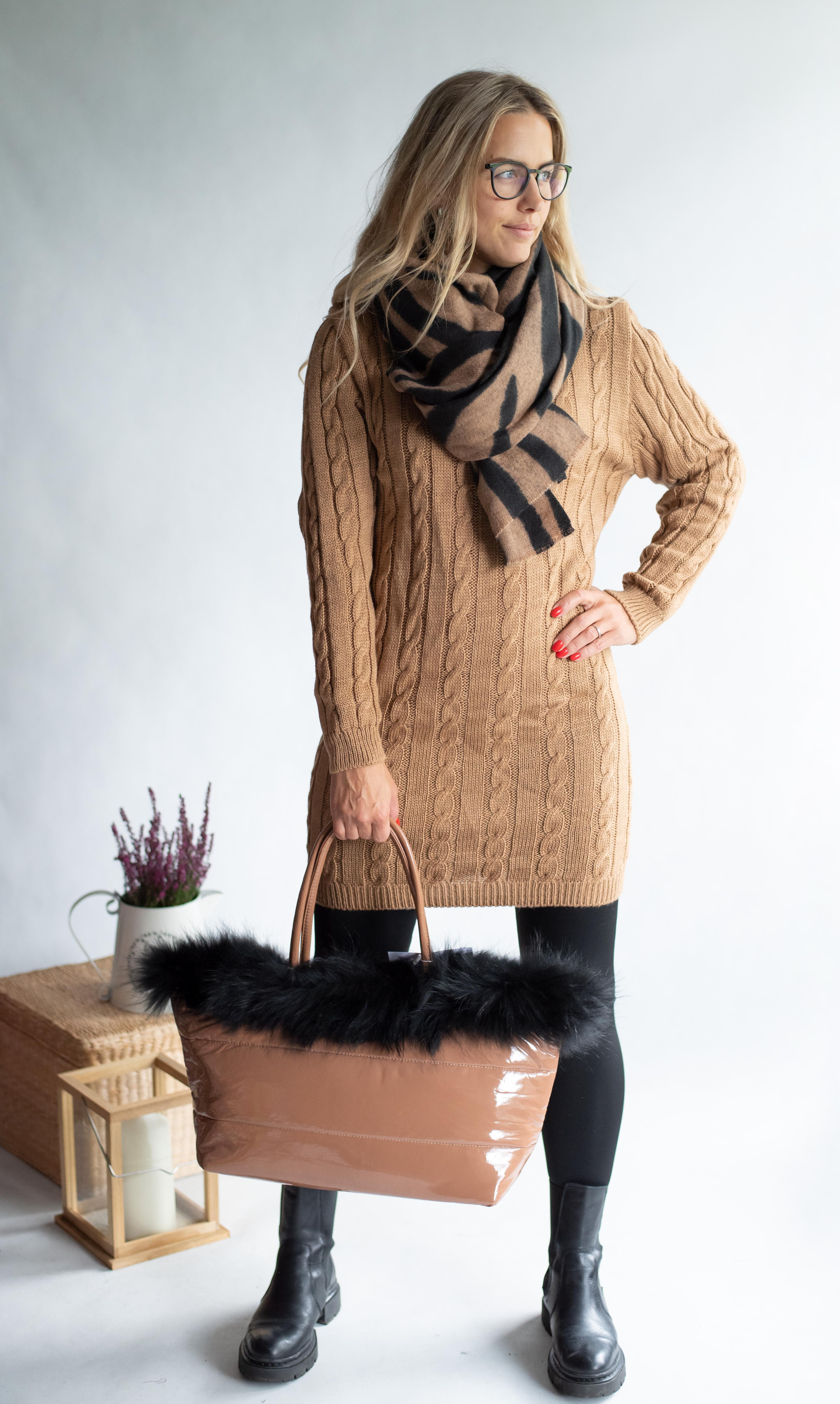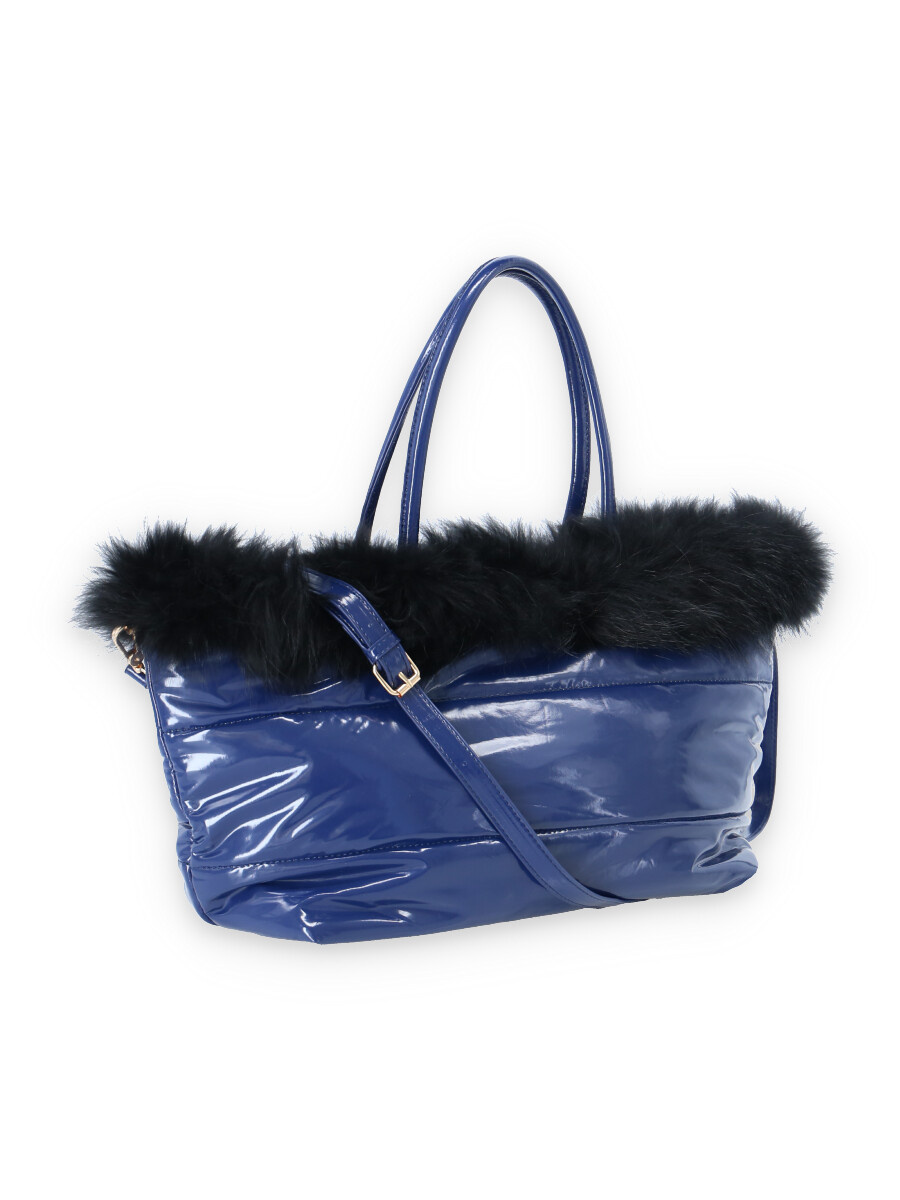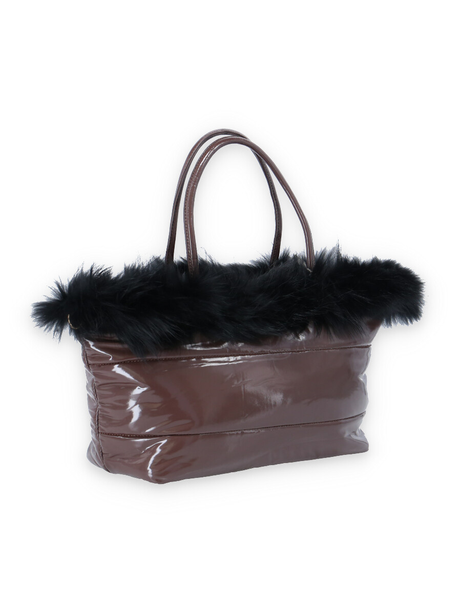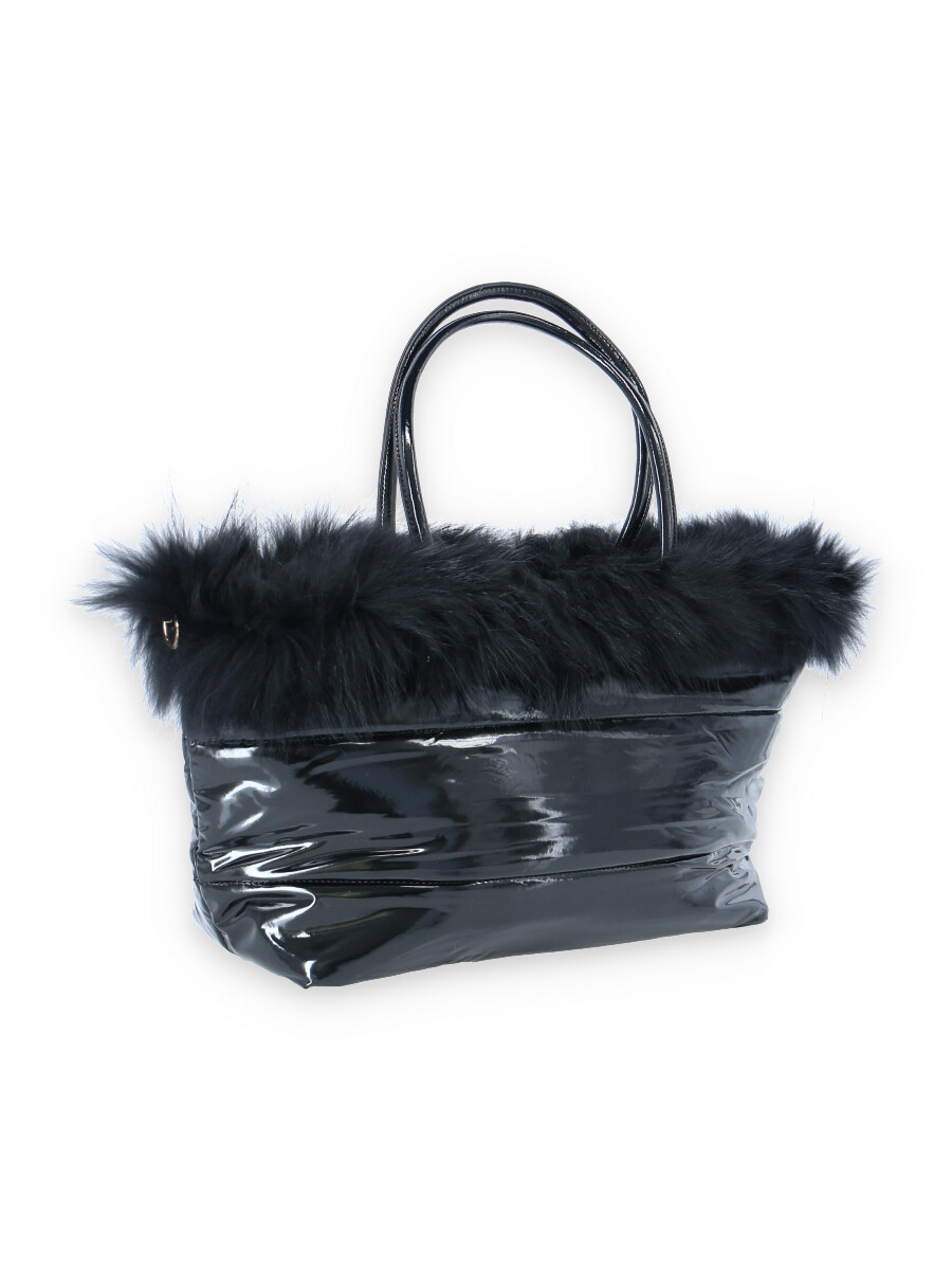 Dámská módní kabelka zdobená přírodní kožešinou  s odnímatelným popruhem a vnitřními kapsami a popruhem