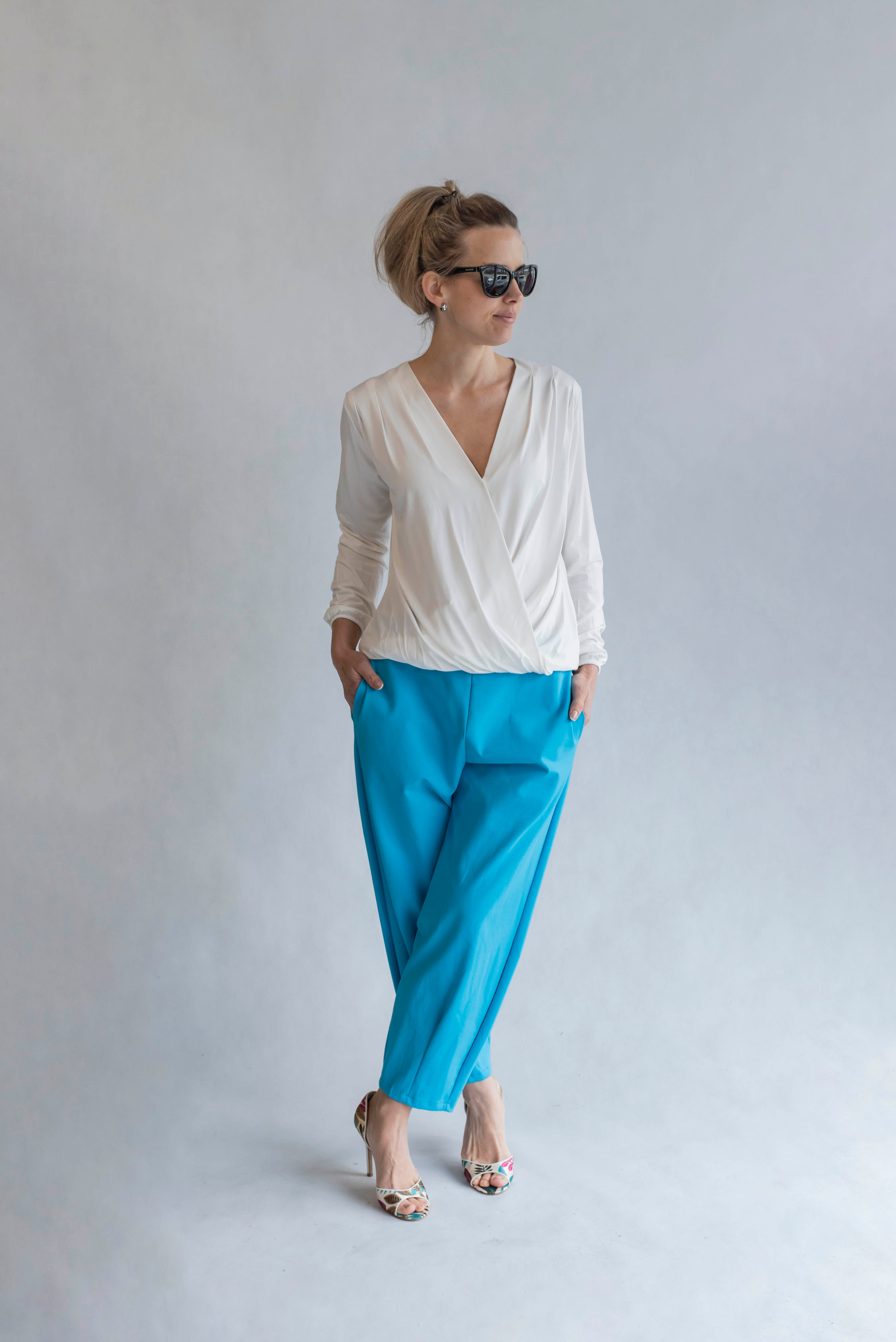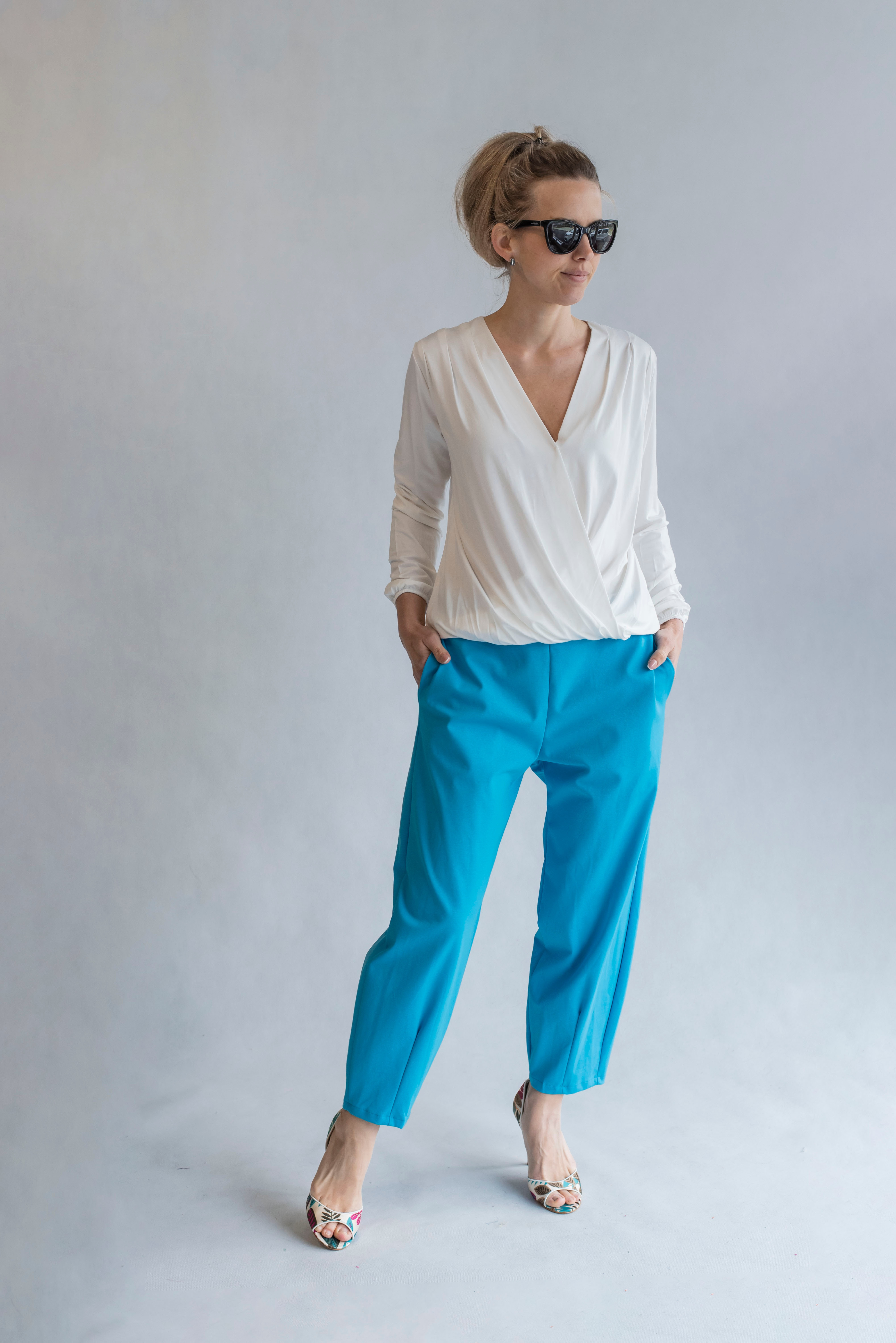 Módní 7/8 kalhoty do gumy s všitými kapsami.