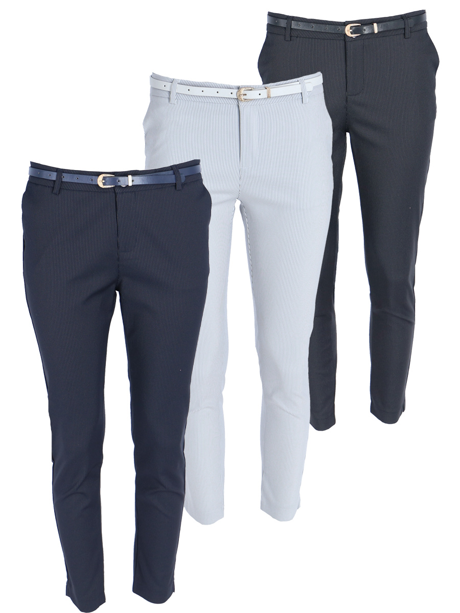 Elegantní dámské kalhoty doplněné opaskem, velmi pohodlné pro denní nošení.