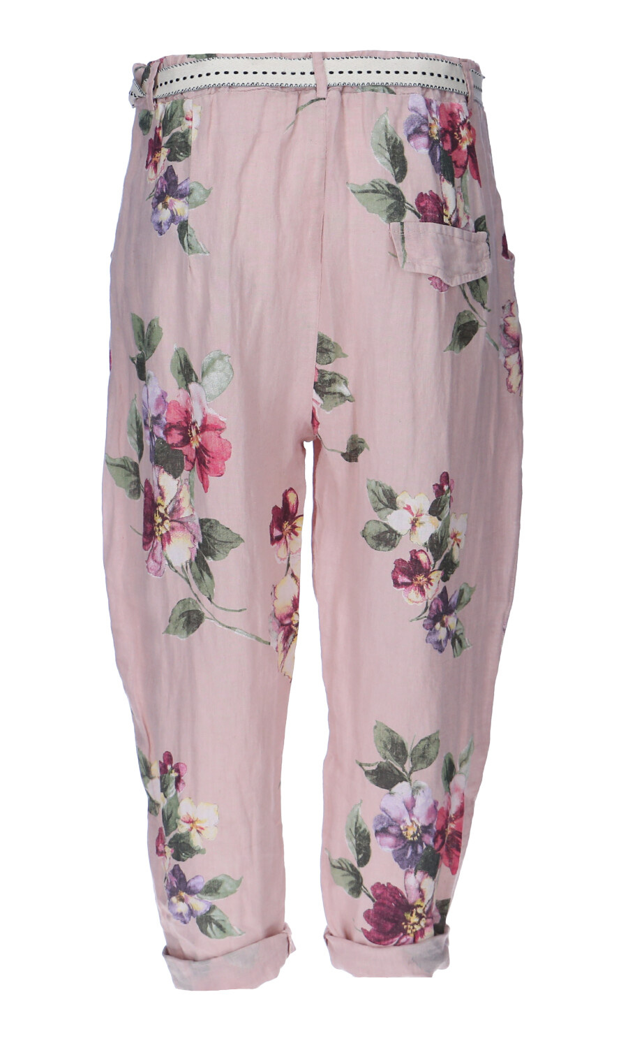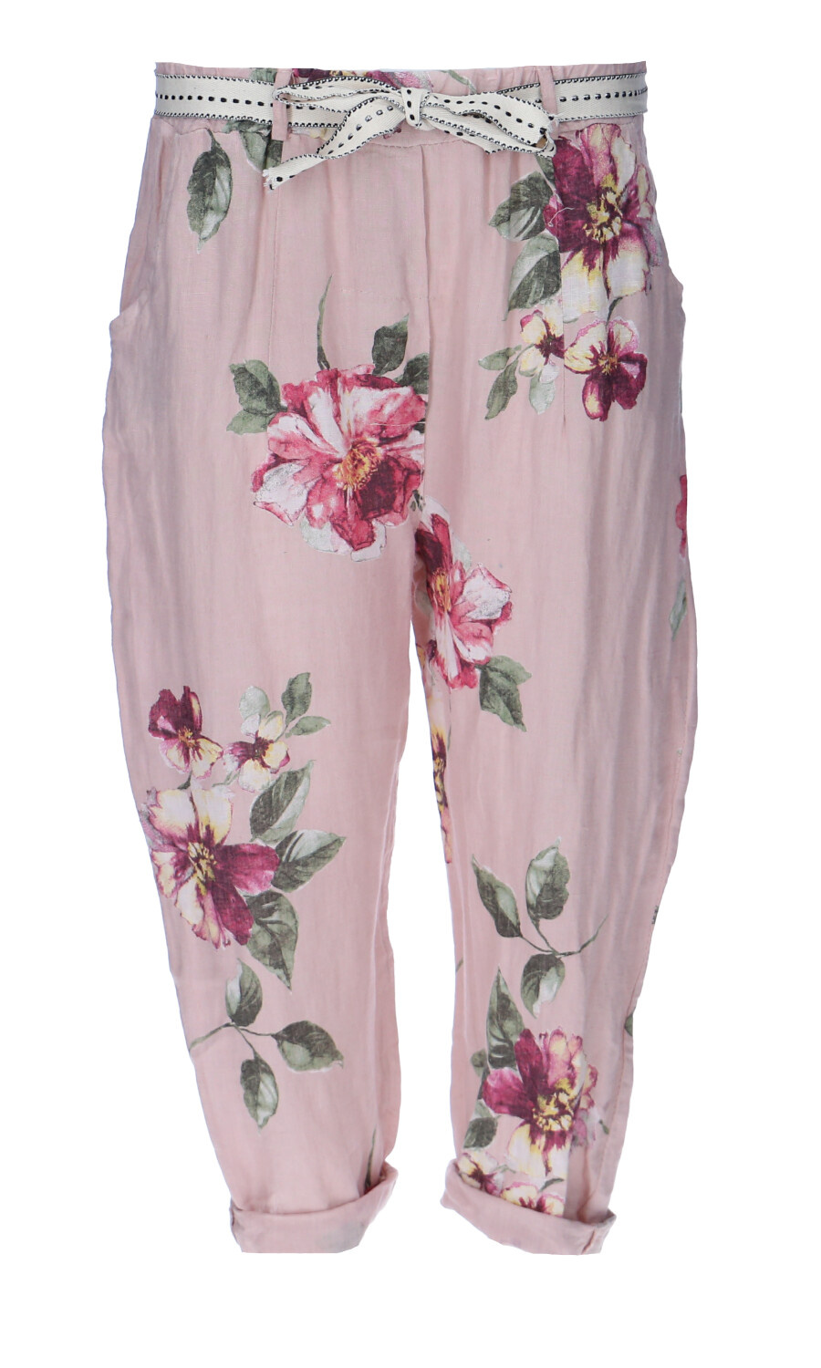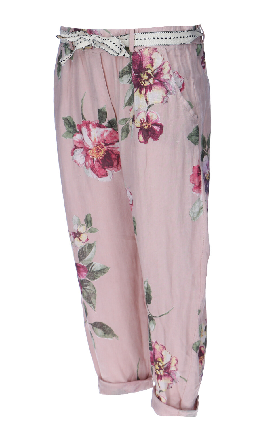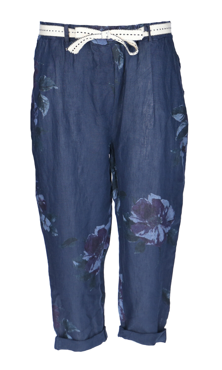 Módní letní capri kalhoty lněné s pasem do gumy.