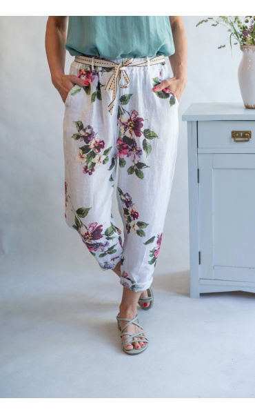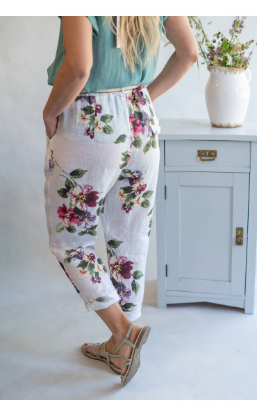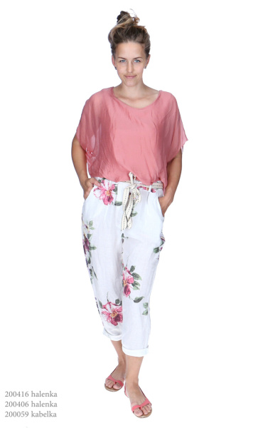 Kalhoty capri s potiskem 7232 len Italie
