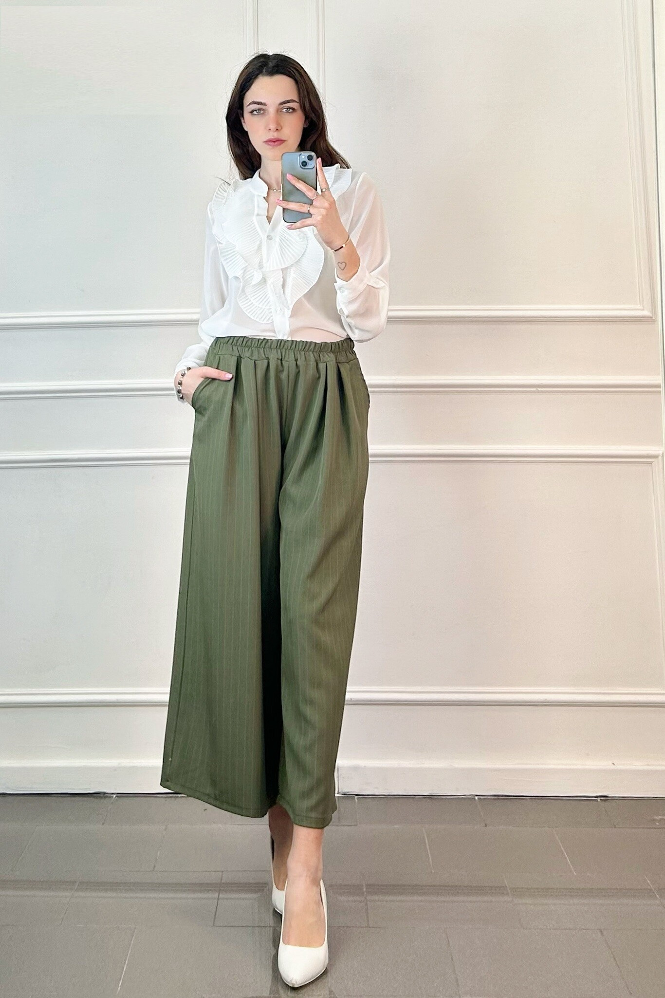 Pohodlné kalhoty, široké nohavice , postranními kapsami a elastickým pasem