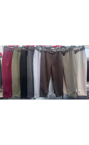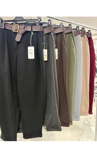 Dámské kalhoty do gumy, doplněny páskem. Kalhoty jsou volnějšího střihu a mají všité kapsy. Vyrobeno v Itálii.