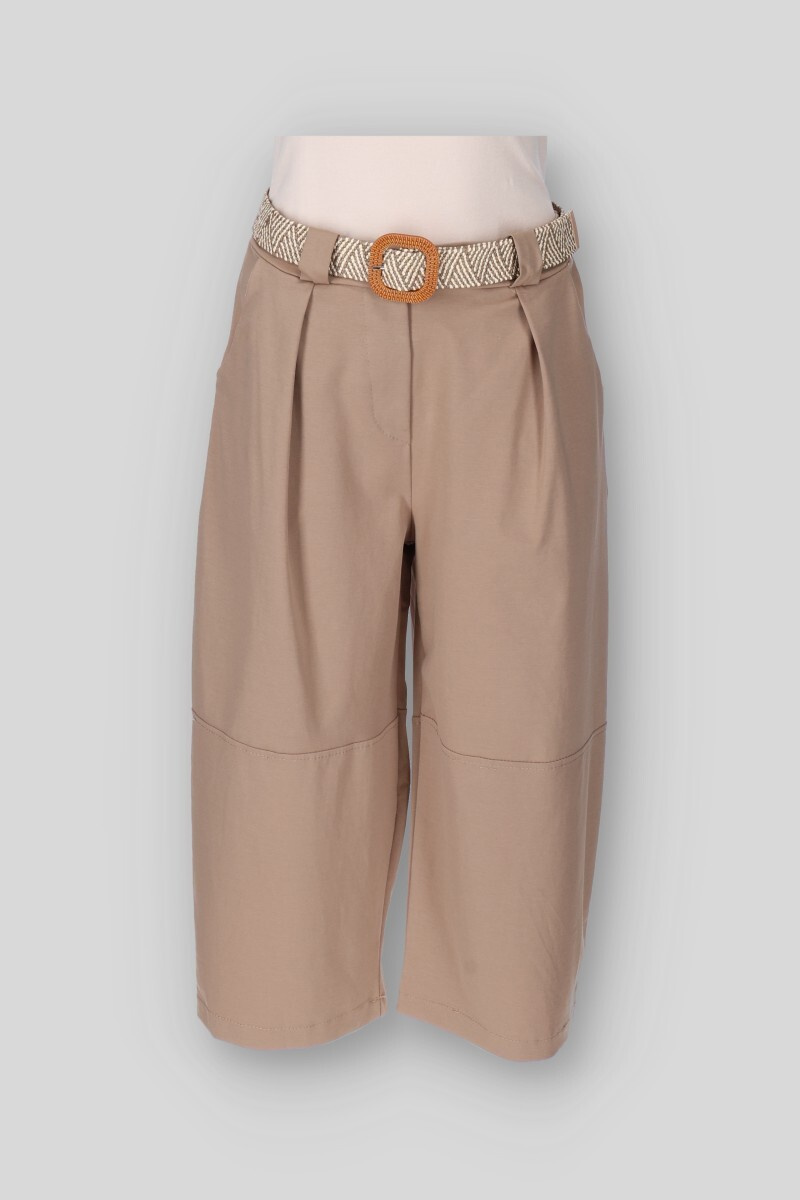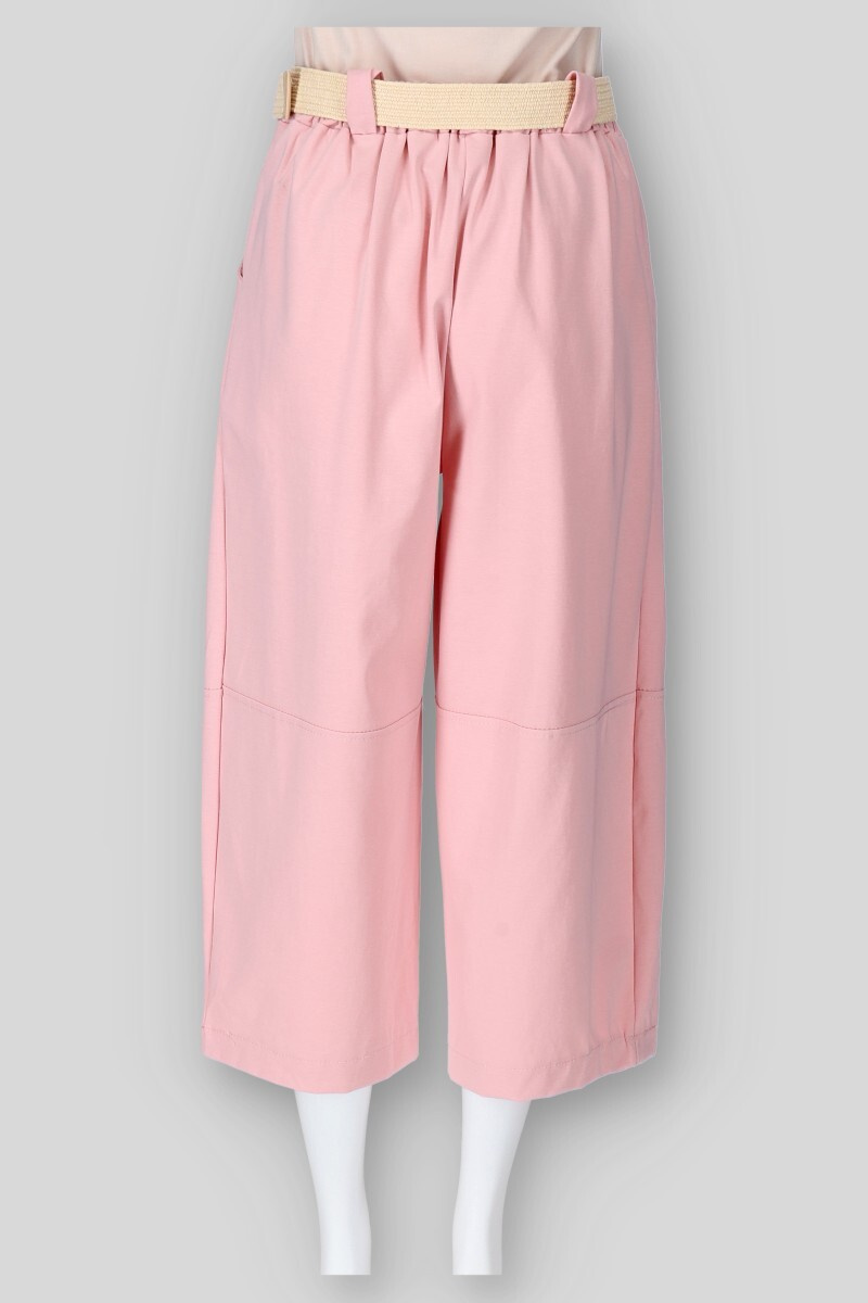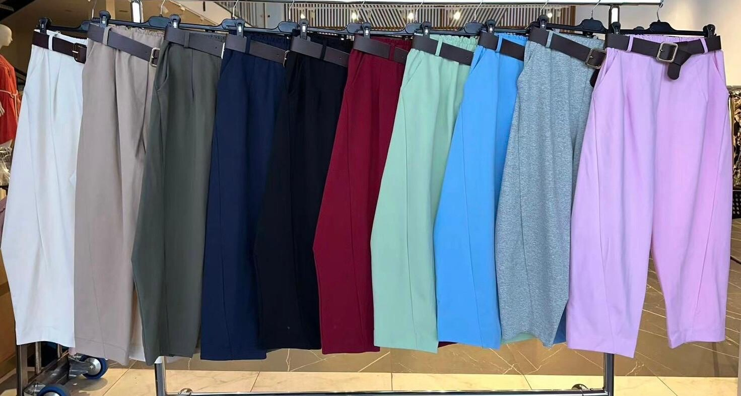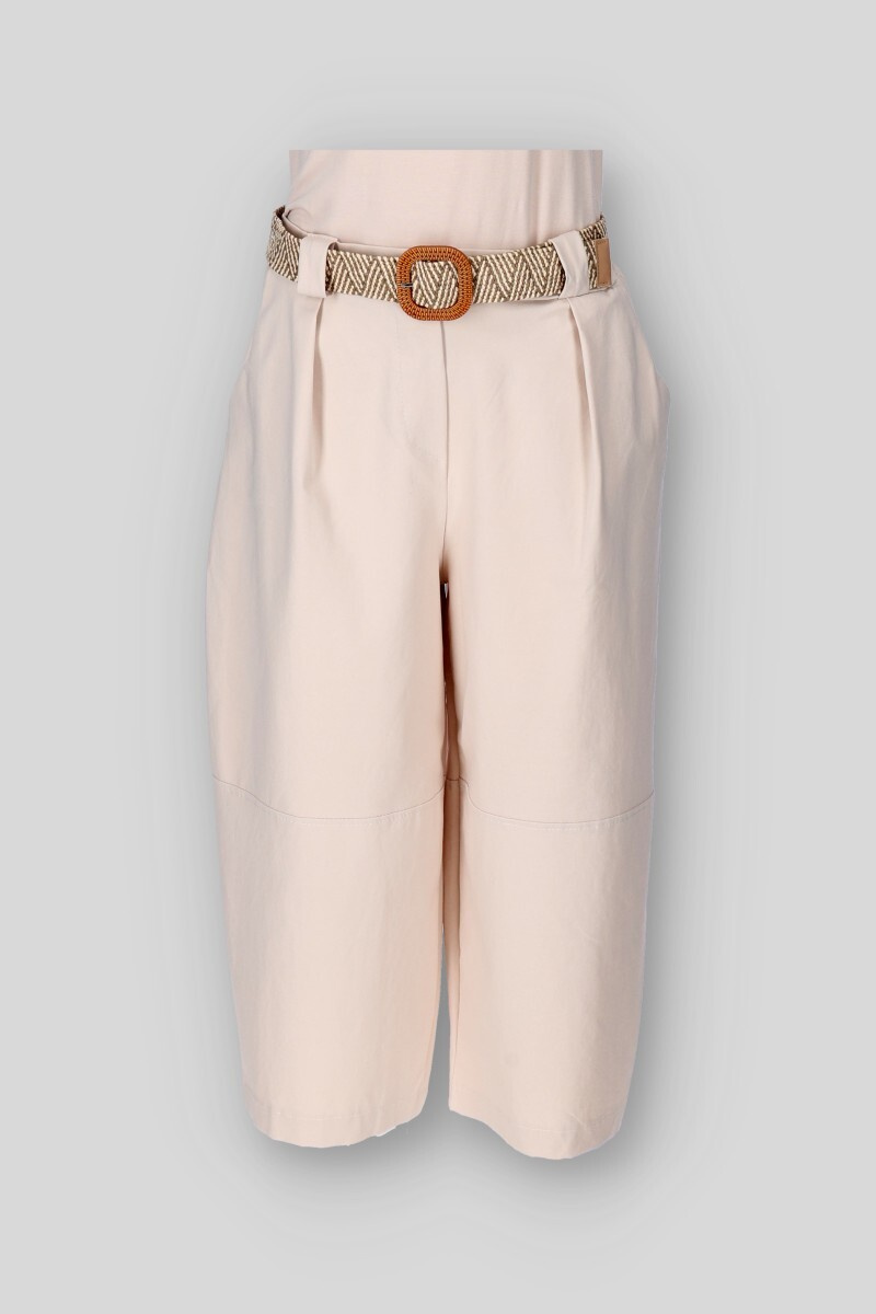 Dámské bavlněné kalhoty balónového střihu. Kalhoty jsou v pase do gumy, mají všité kapsy po stranách a jsou doplněny páskem.