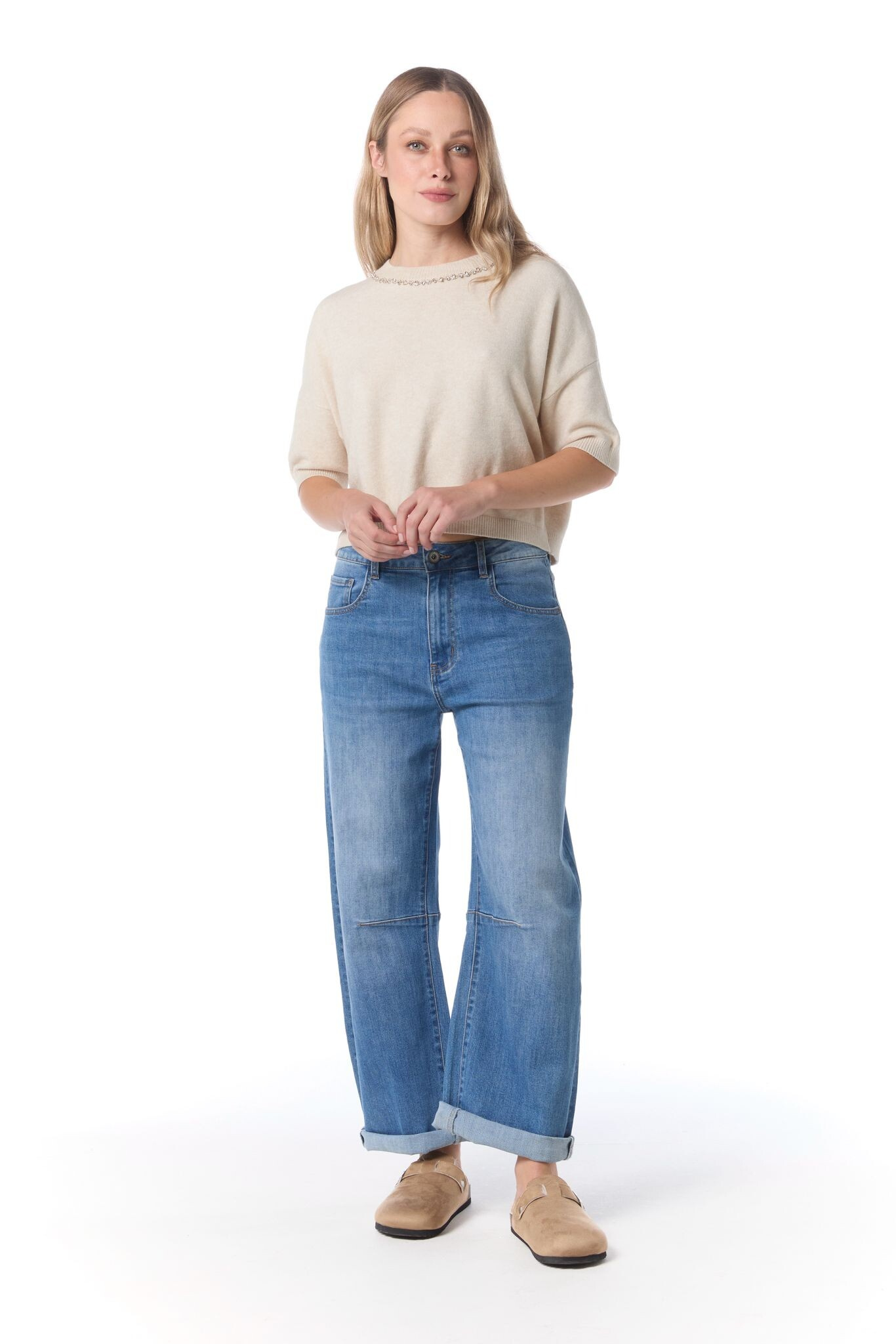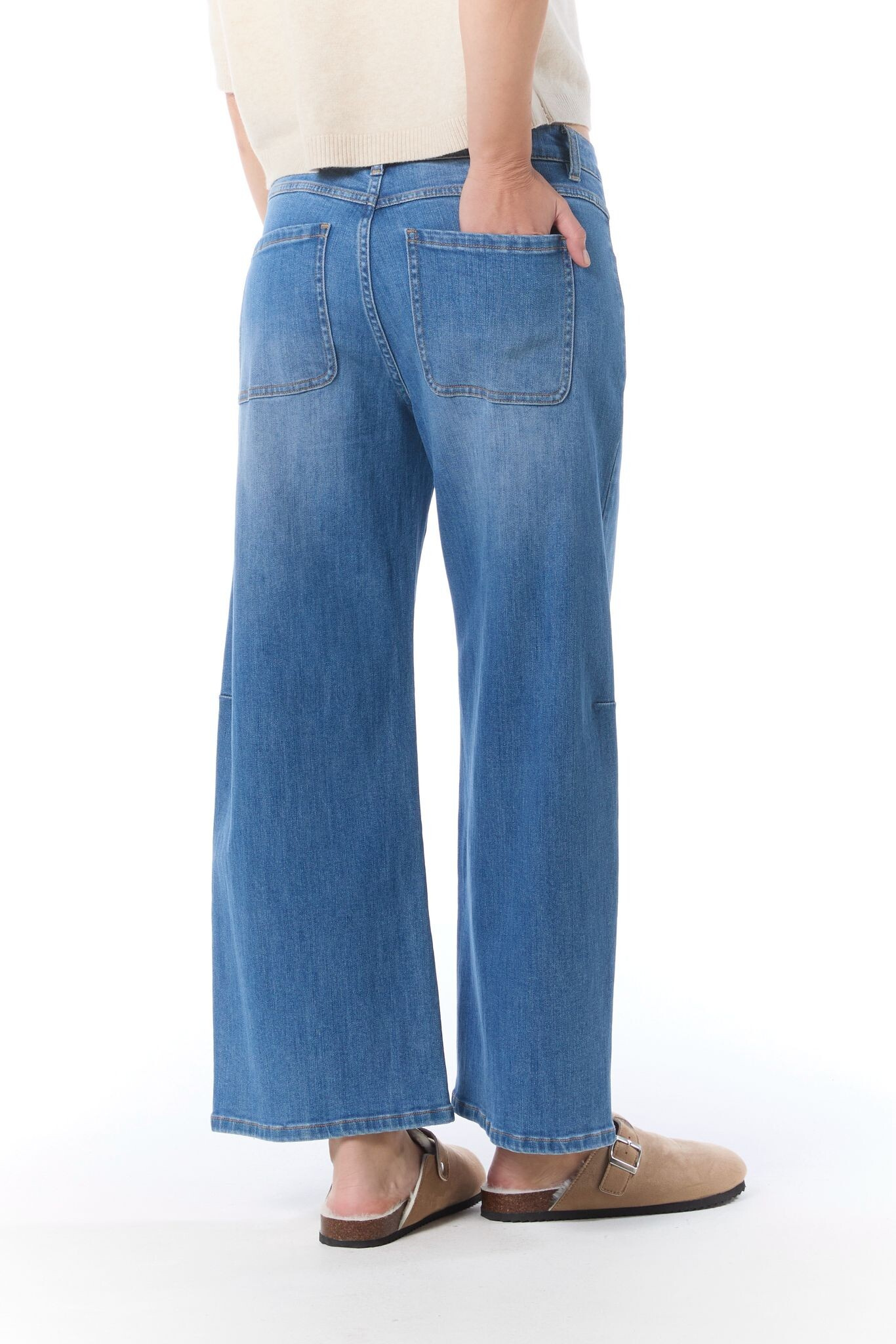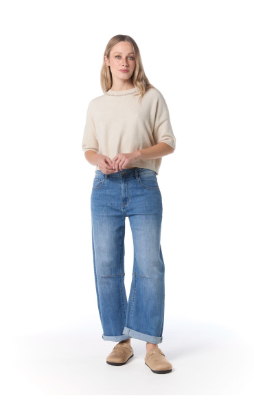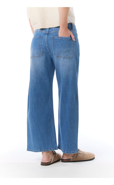 Módní džínové kalhoty balónového střihu s rozšířenými nohavicemi.