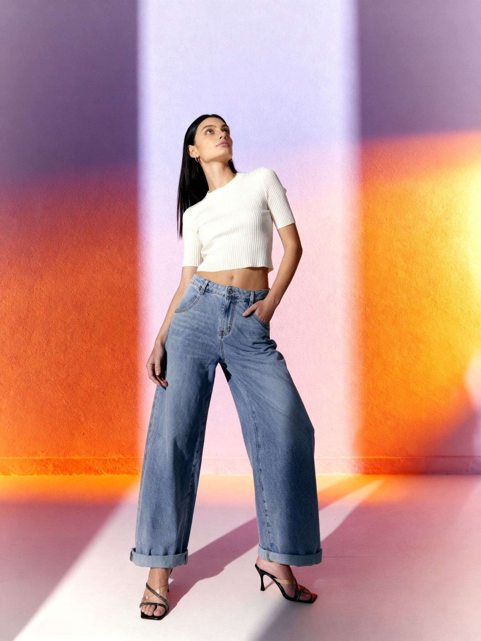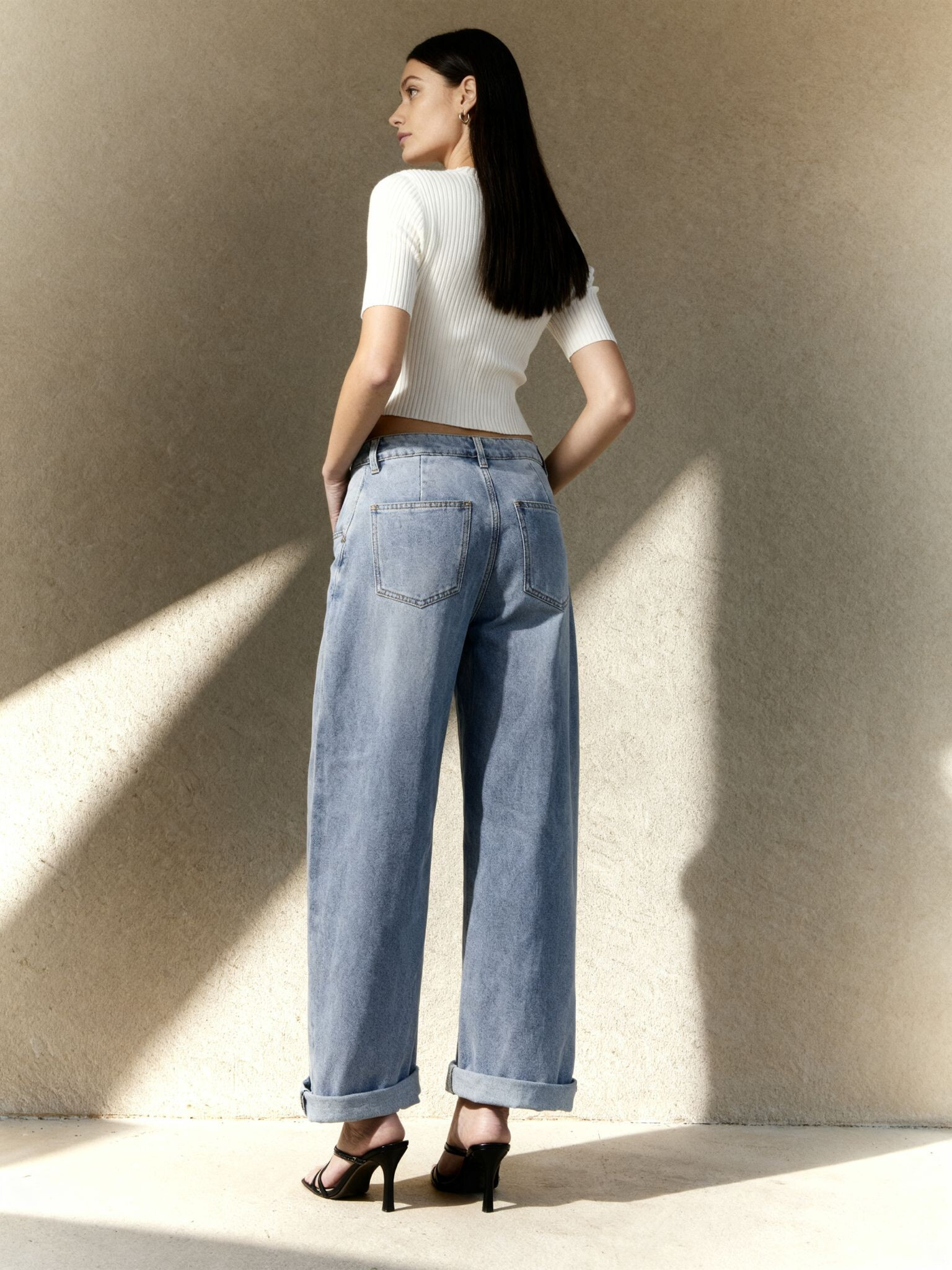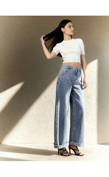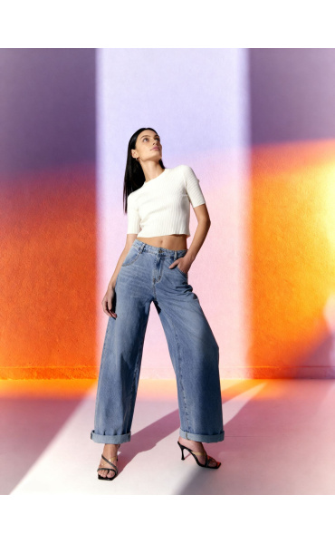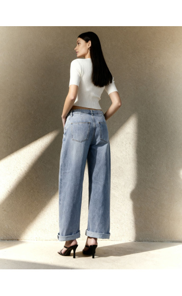 Módní džínové kalhoty balónového střihu.