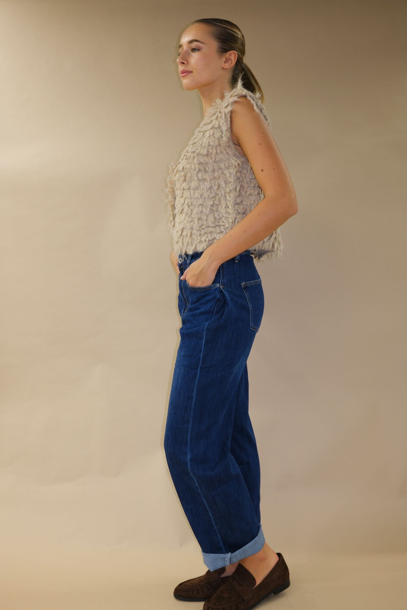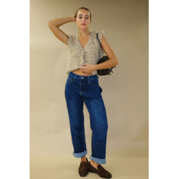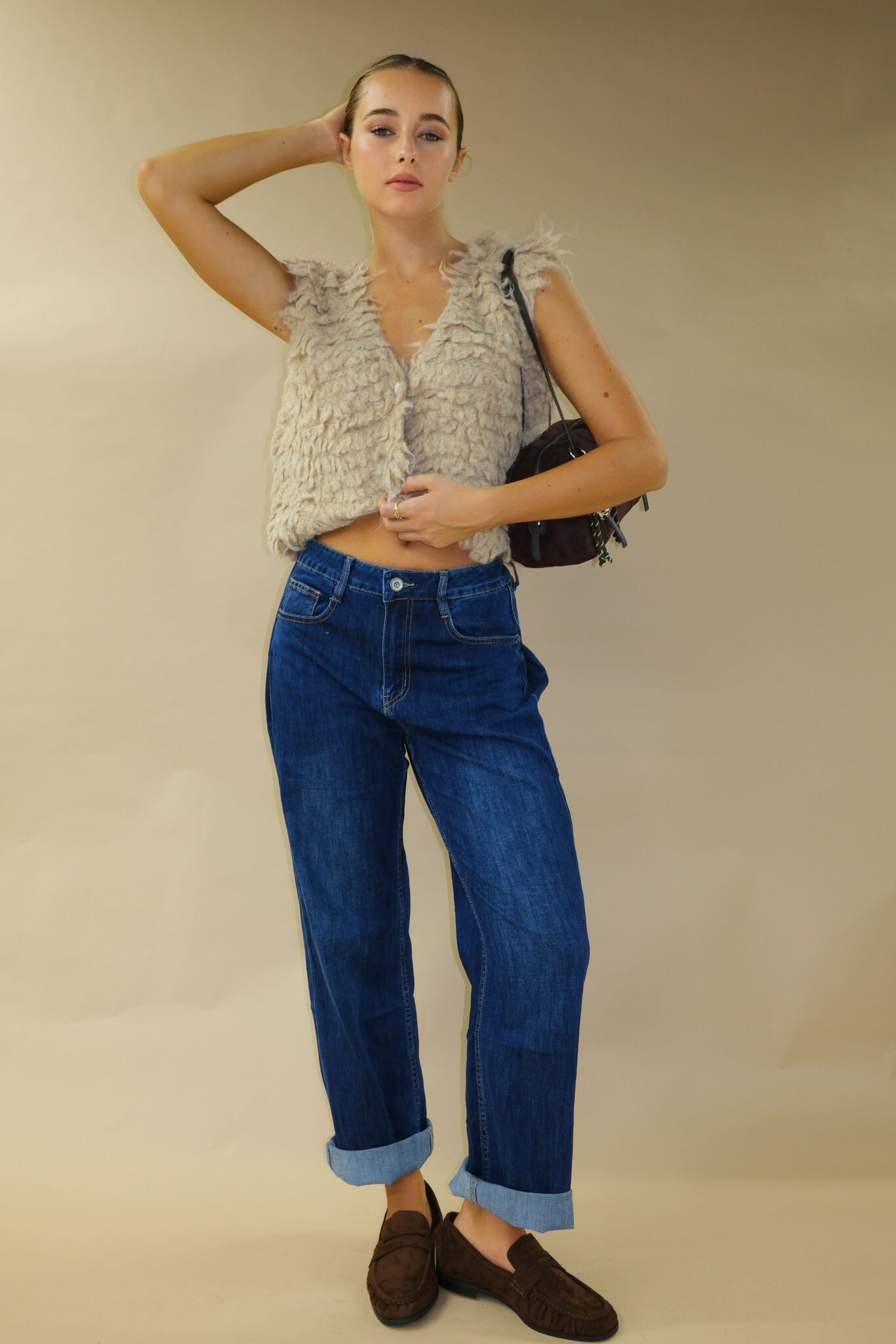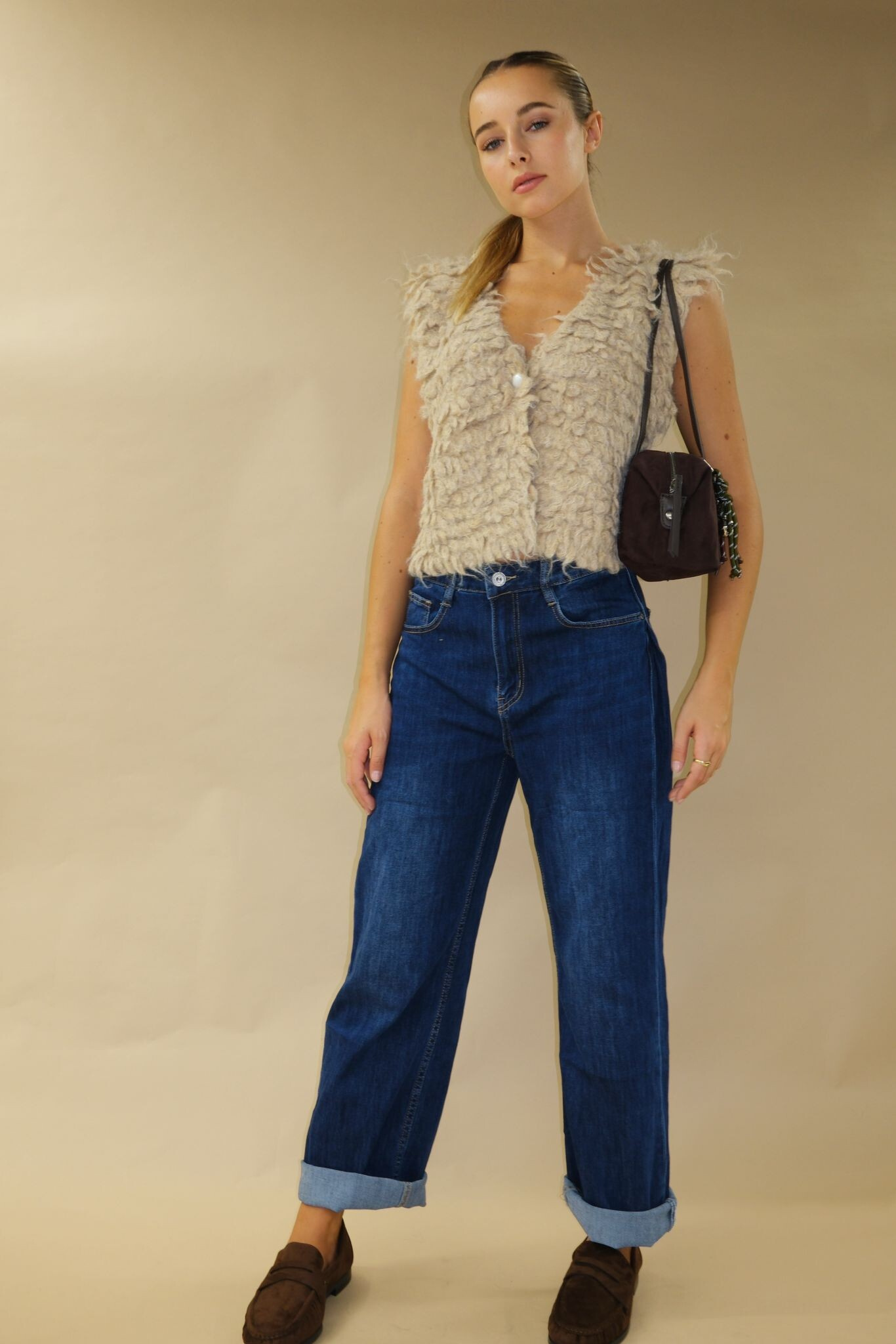 Módní džínové kalhoty s rozšířenými nohavicemi.