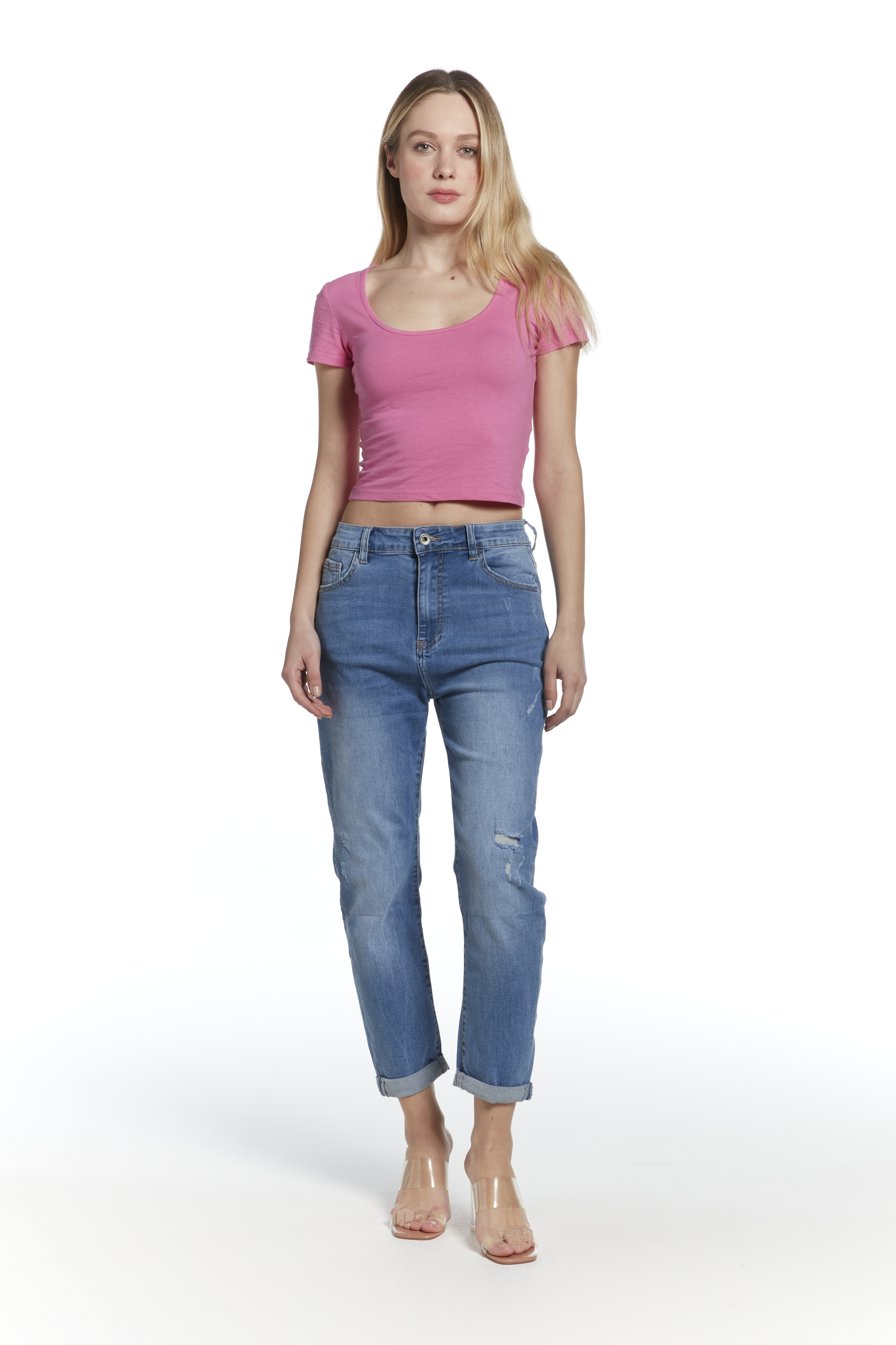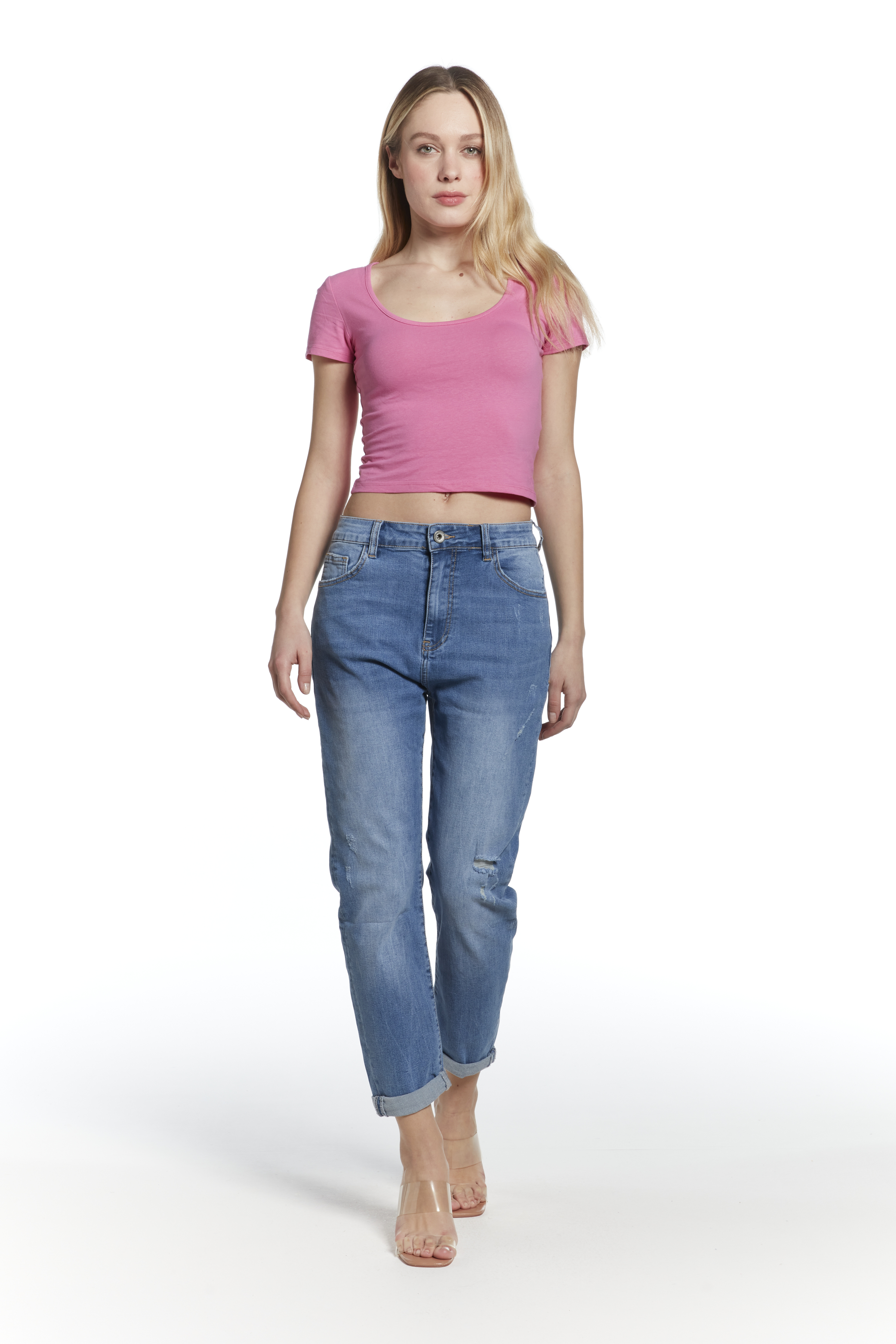 Kalhoty džínové boyfriend 3D-1360-1 Itálie