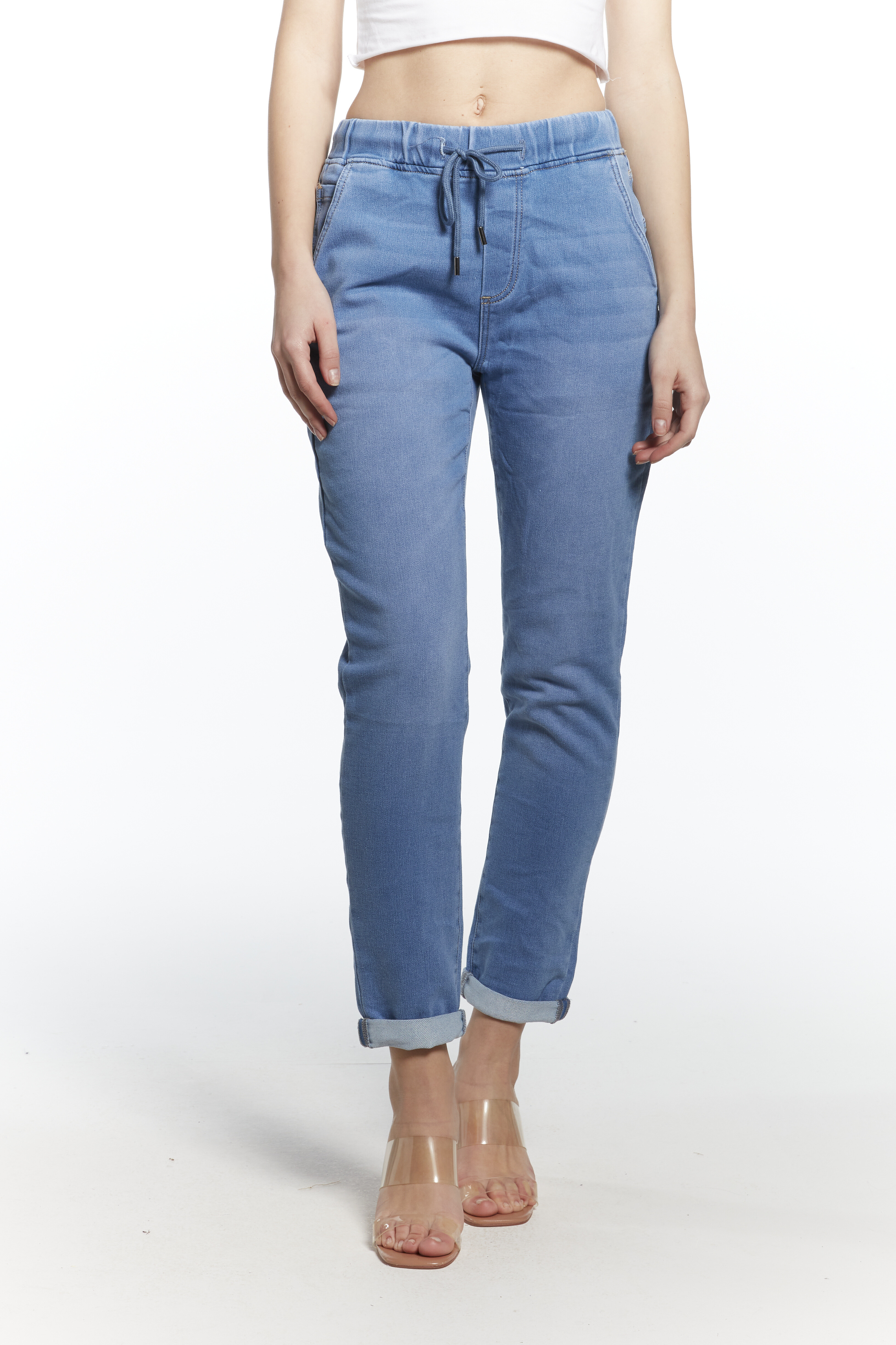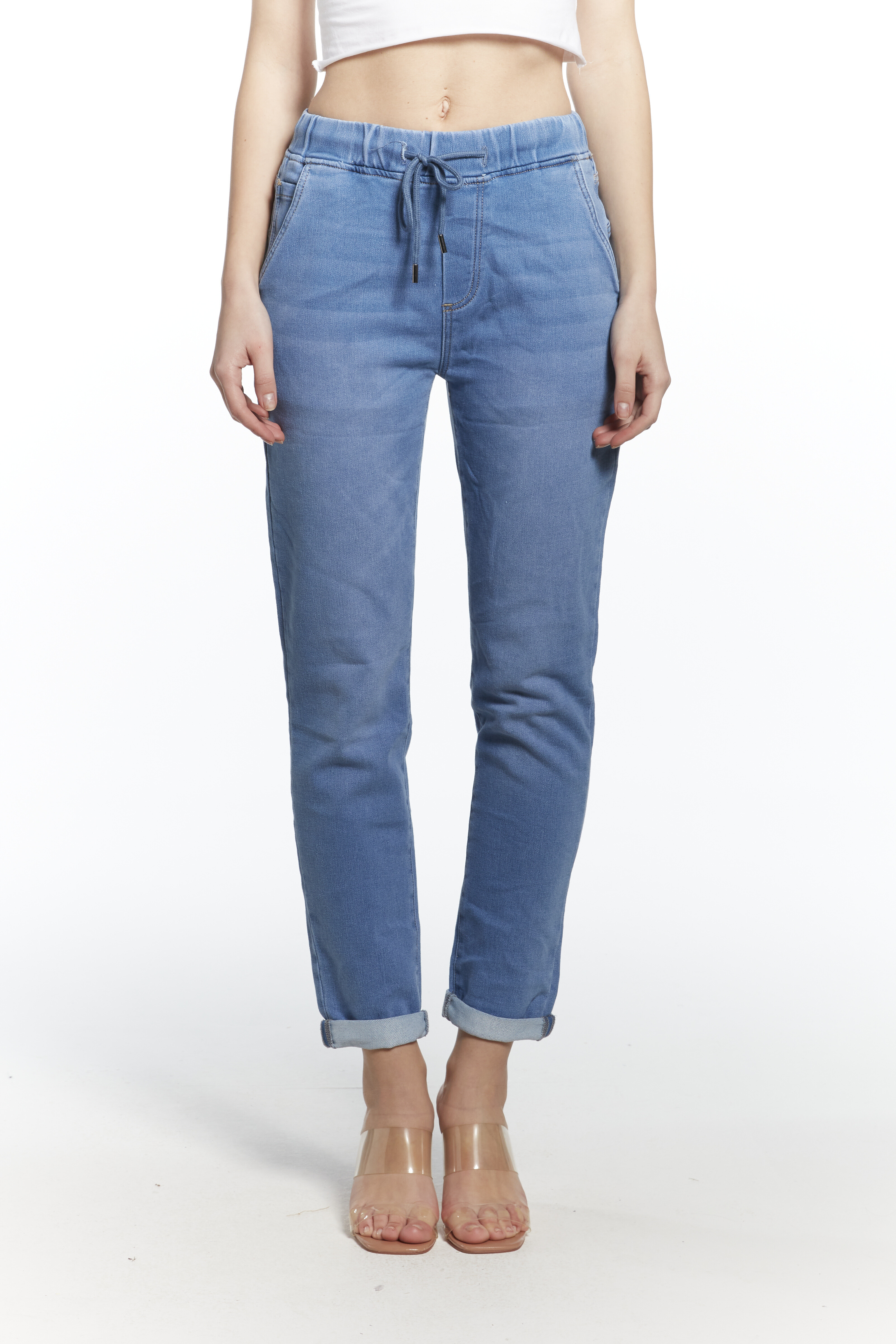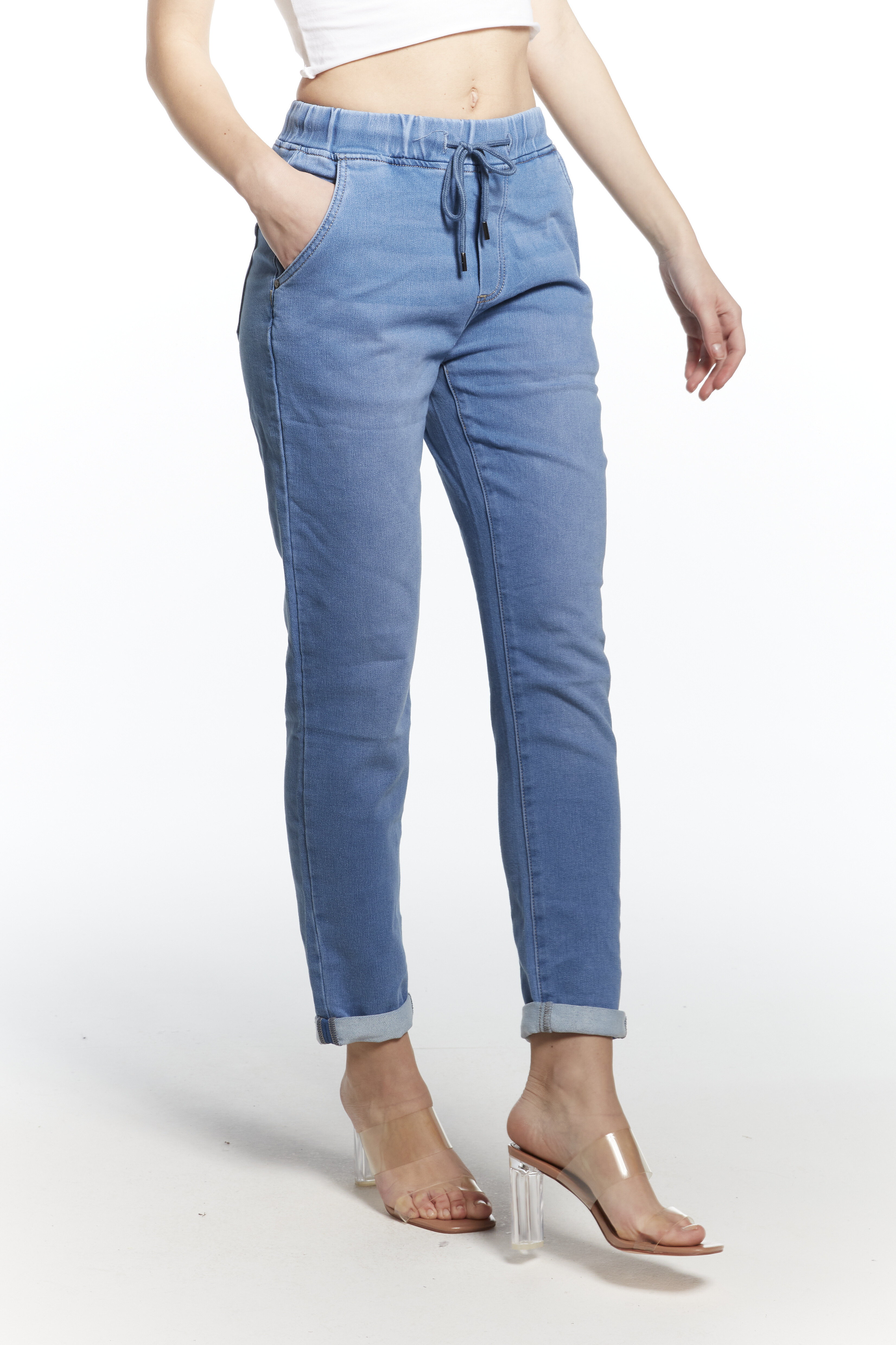 Módní džínové kalhoty do gumy na šňůrku v pase ,Vyrobeno v Itálii