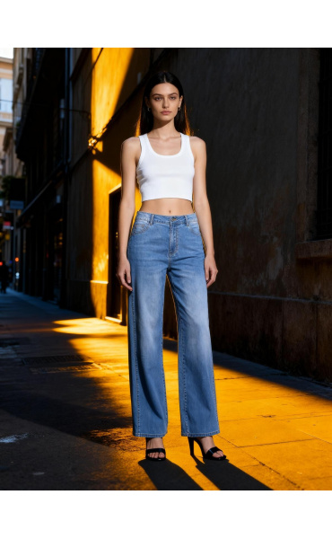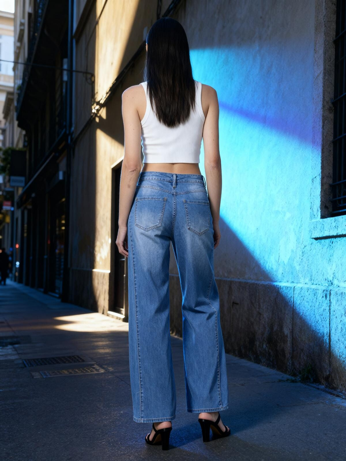 Módní džínové kalhoty Wide Leg střihu s rozšířenými nohavicemi.