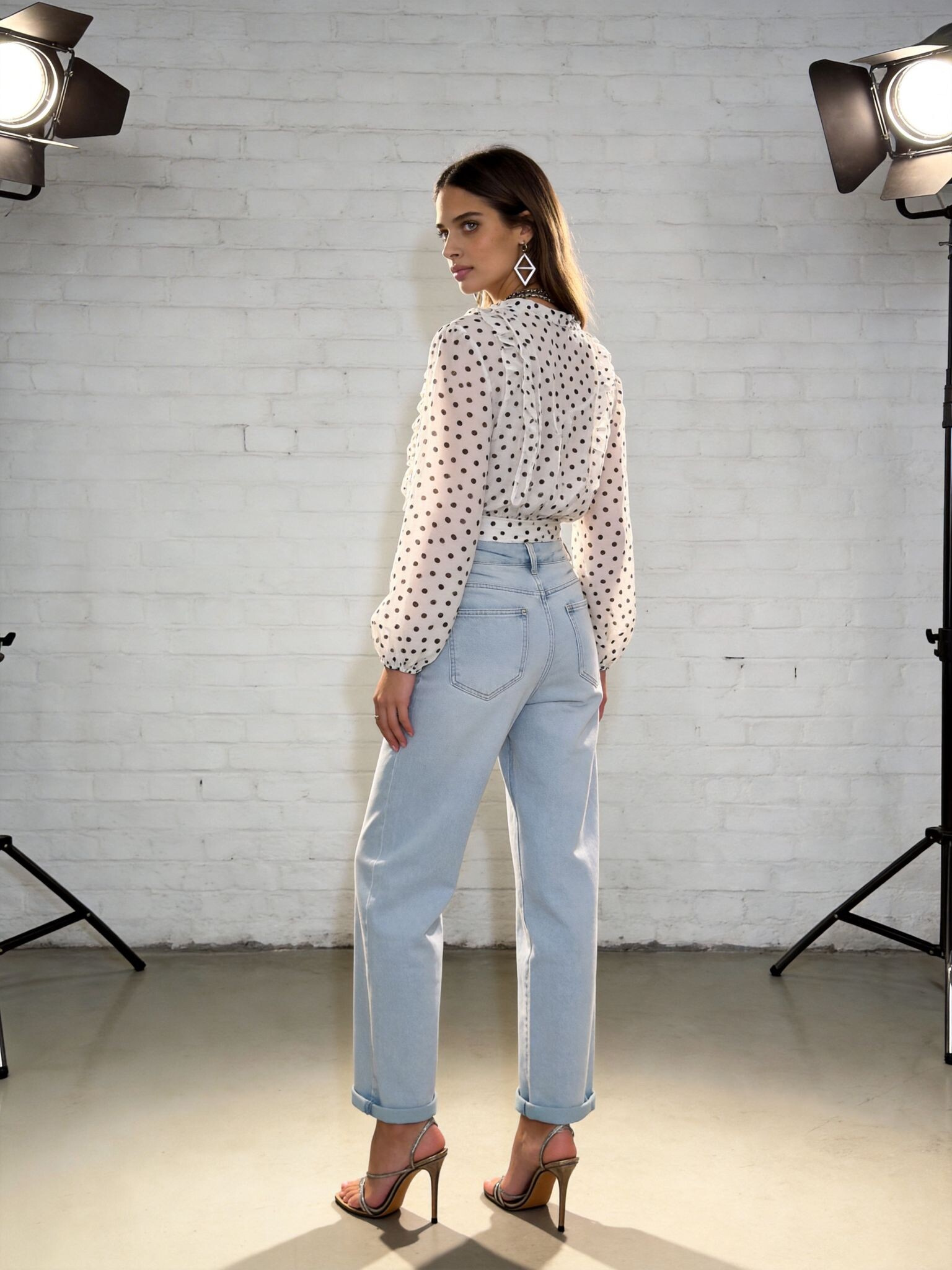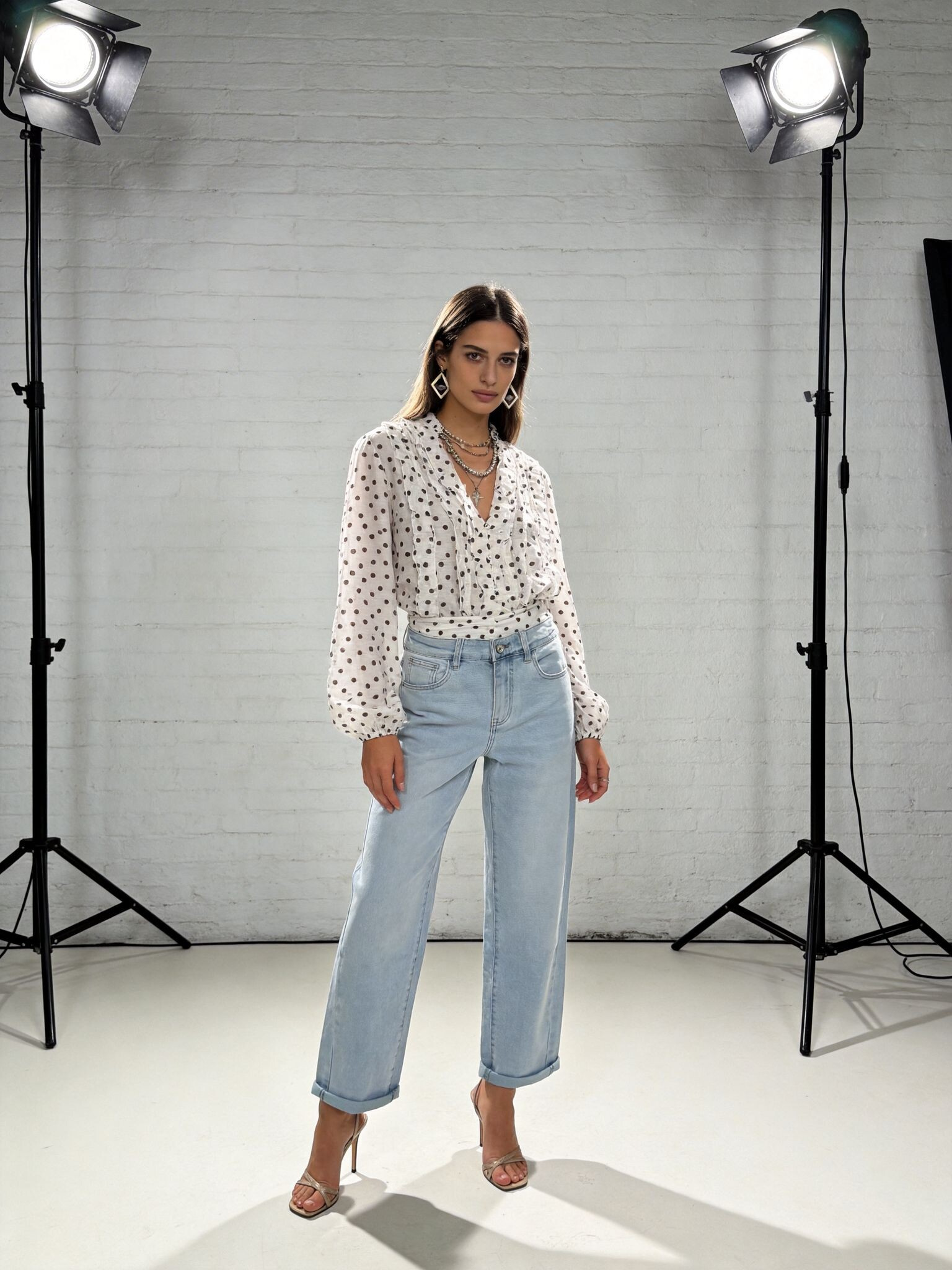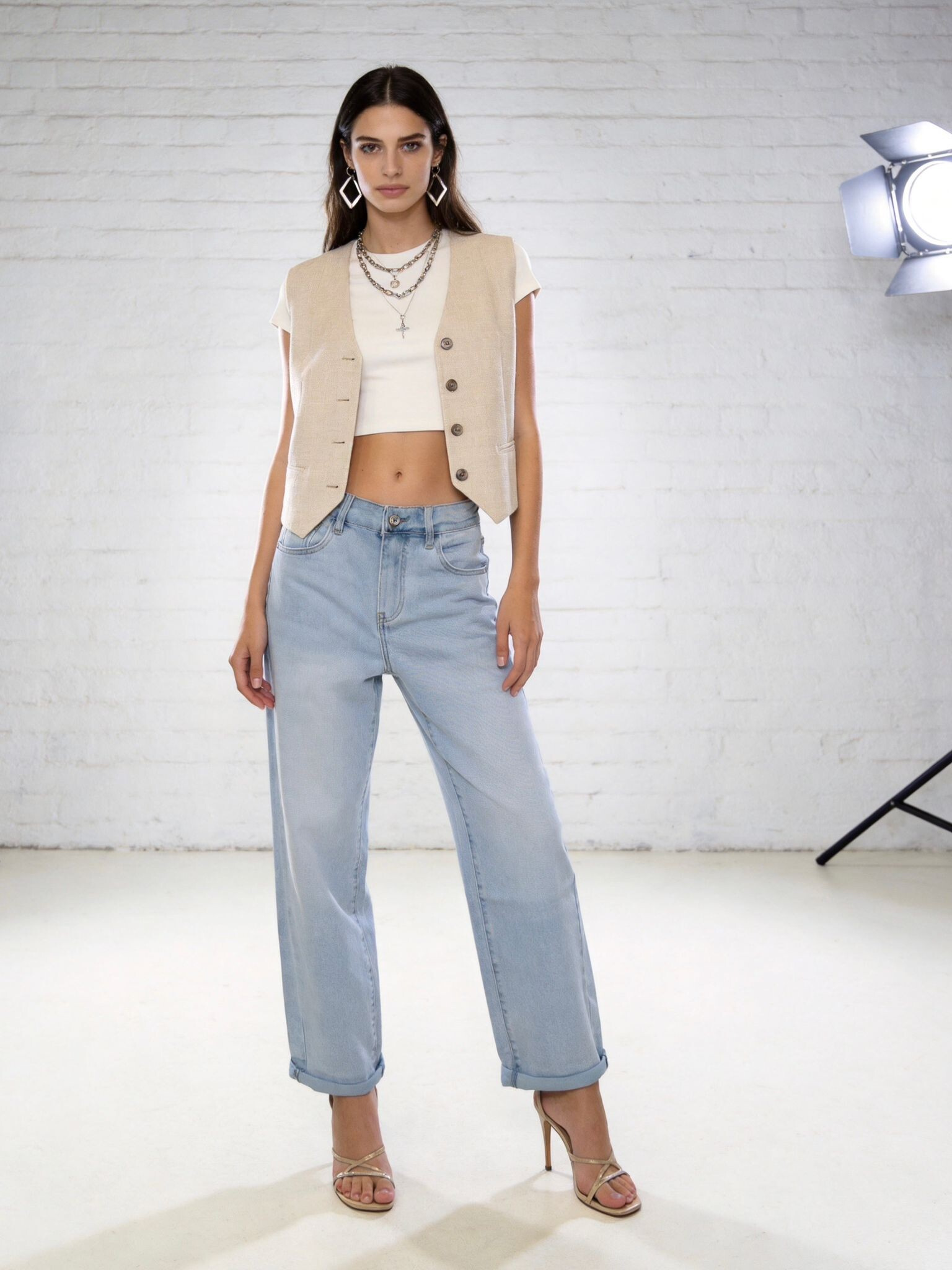 Módní džínové kalhoty s rozšířenými nohavicemi.