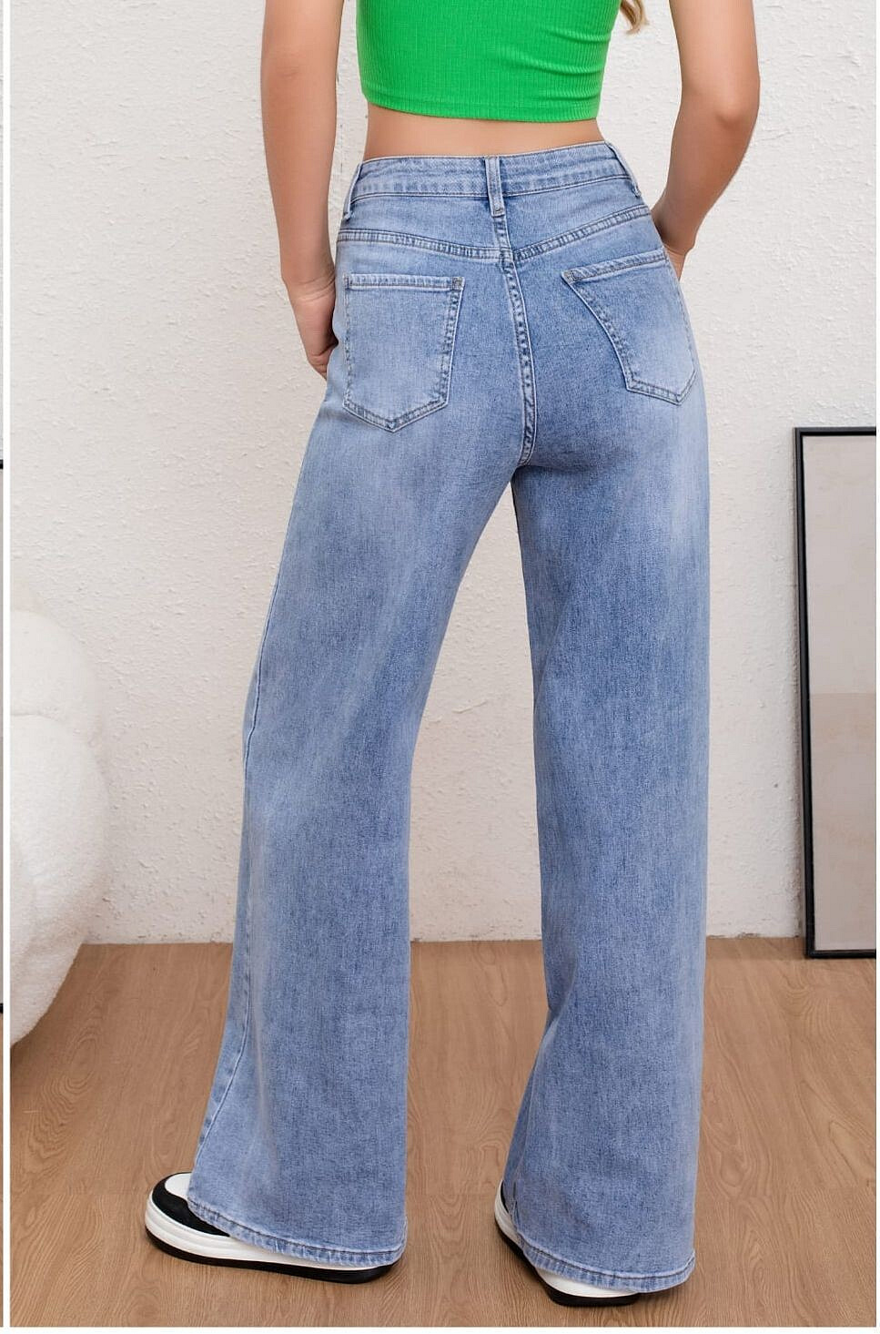 Módní džínové kalhoty s rozšířenými nohavicemi.