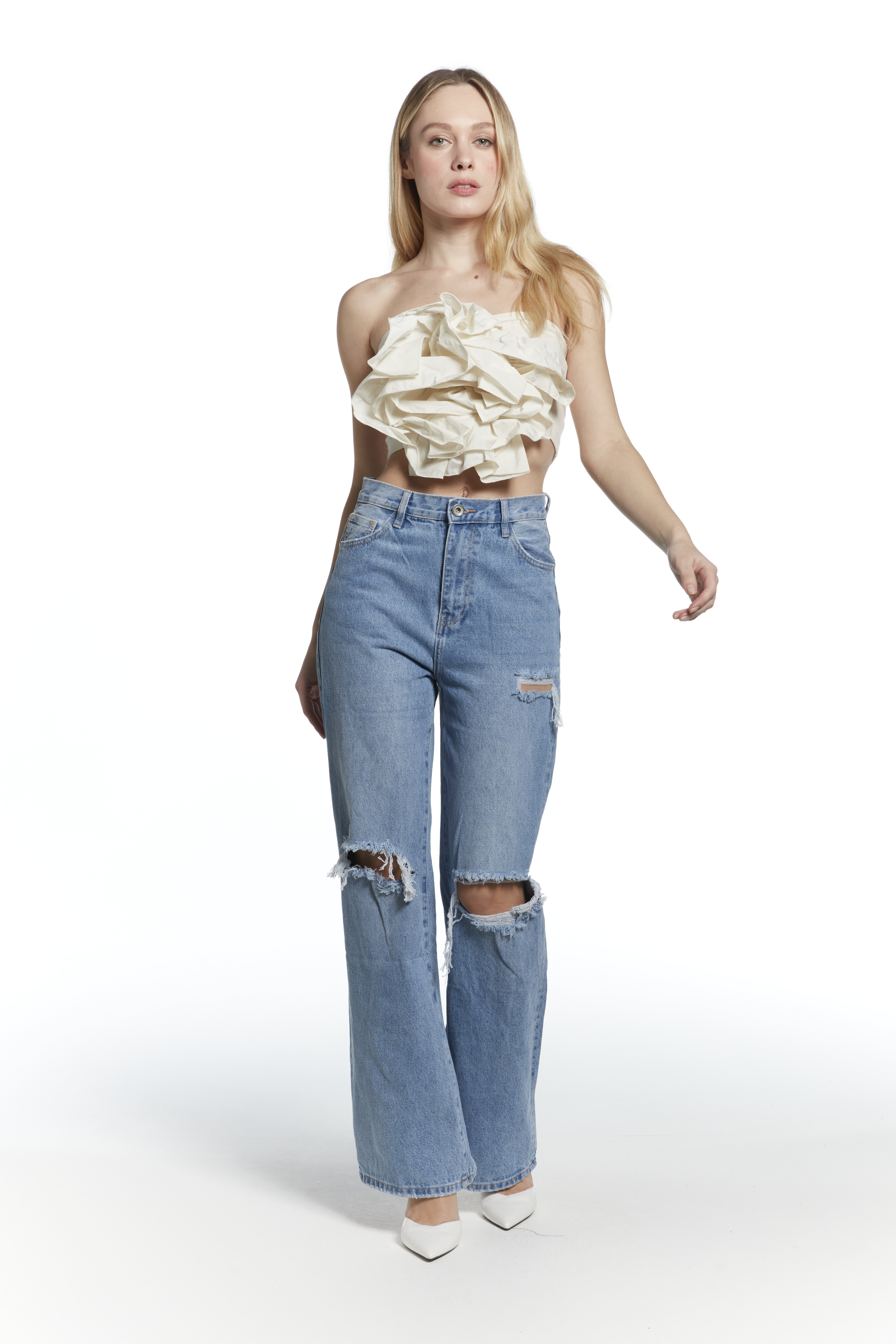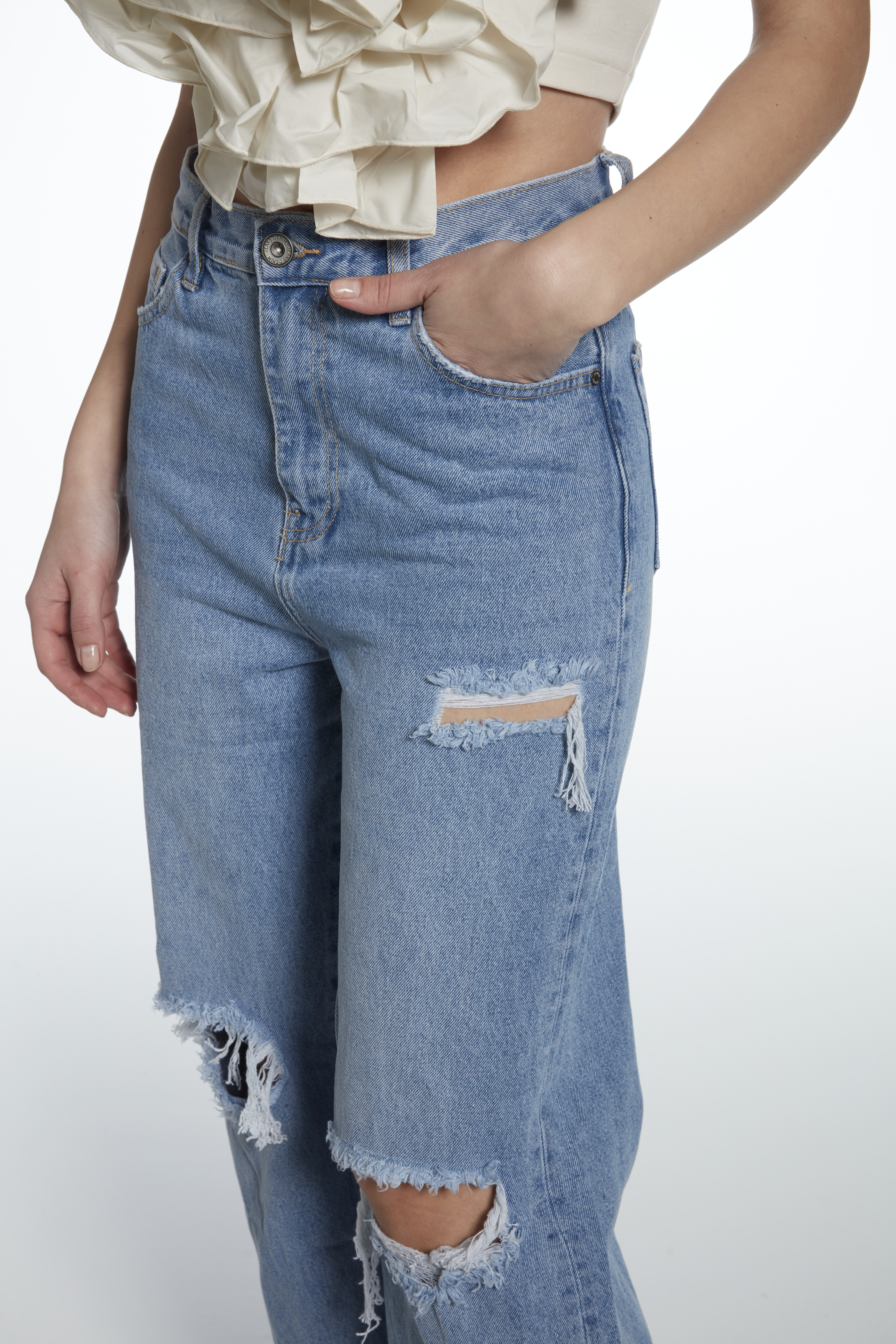 Kalhoty džínové wide leg regular 3D-1319 Itálie