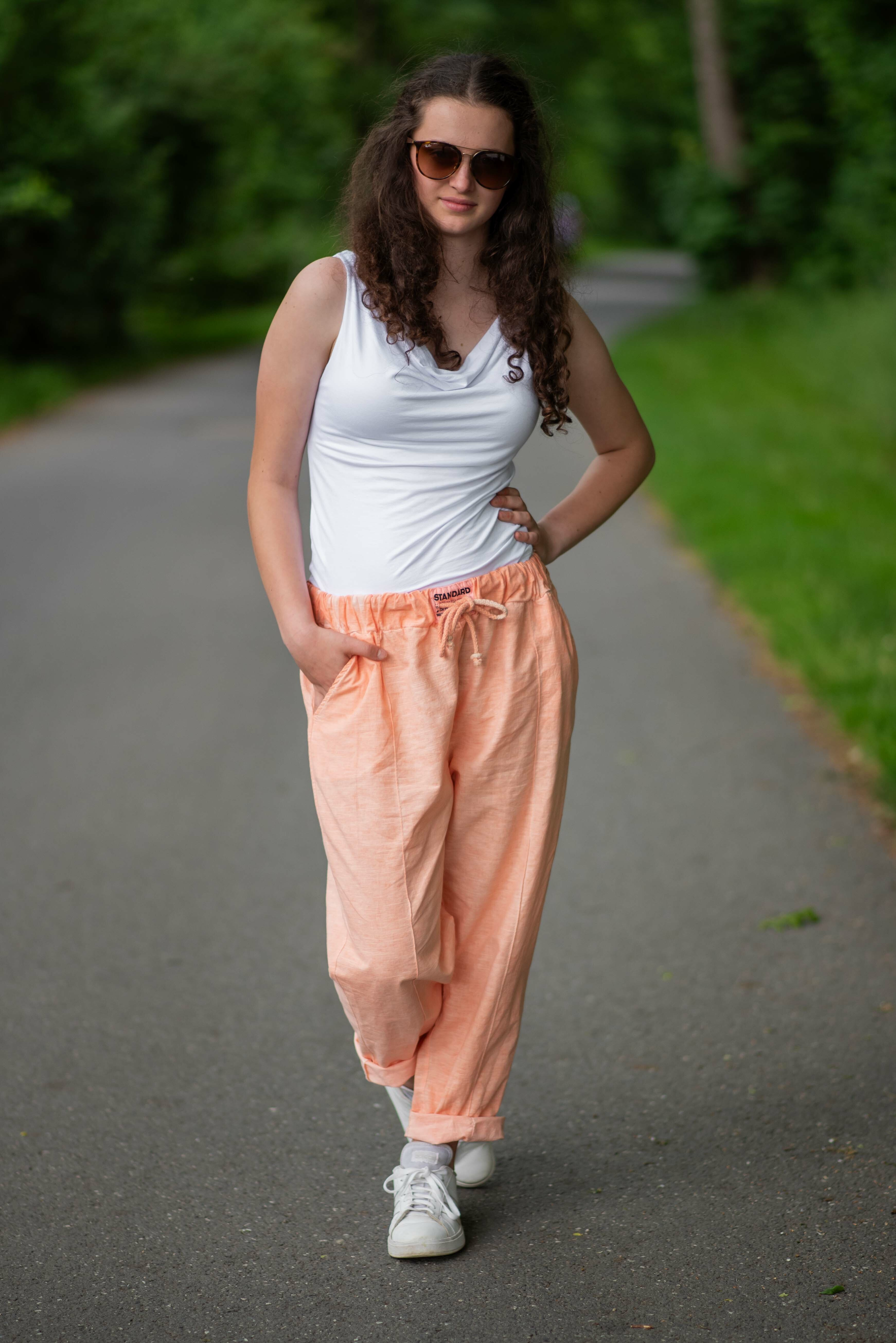 Módní lněné kalhoty v pase do gumy, velice příjemné na každodenní nošení.