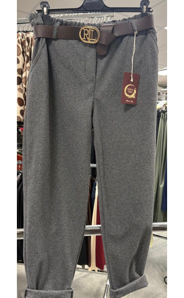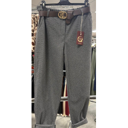 Dámské kalhoty do gumy, doplněny páskem. Kalhoty jsou volnějšího střihu a mají všité kapsy. Vyrobeno v Itálii.