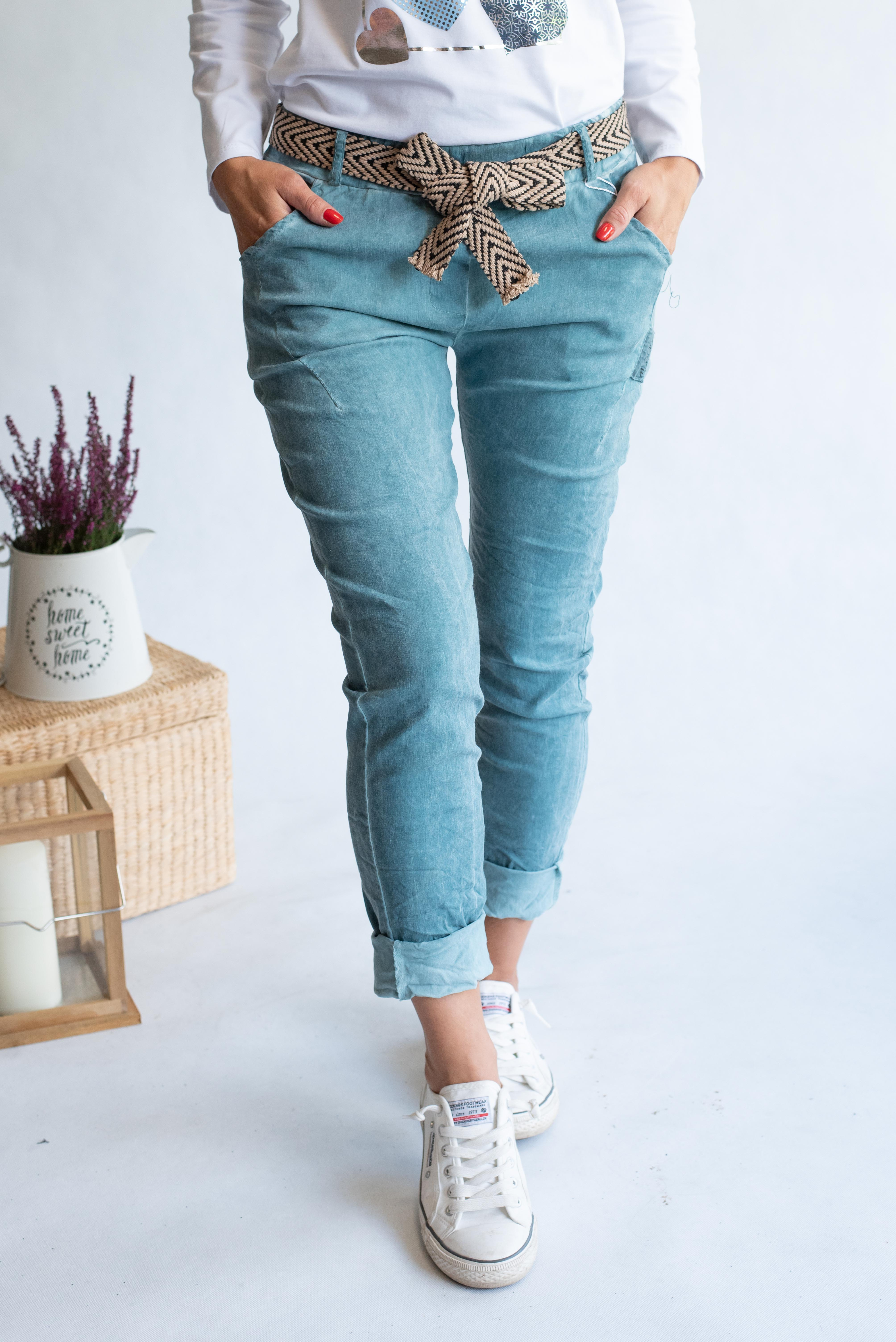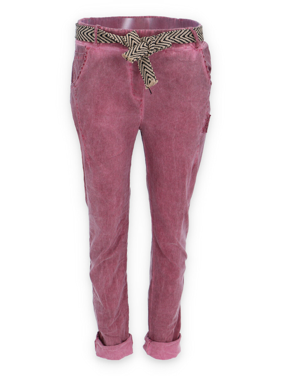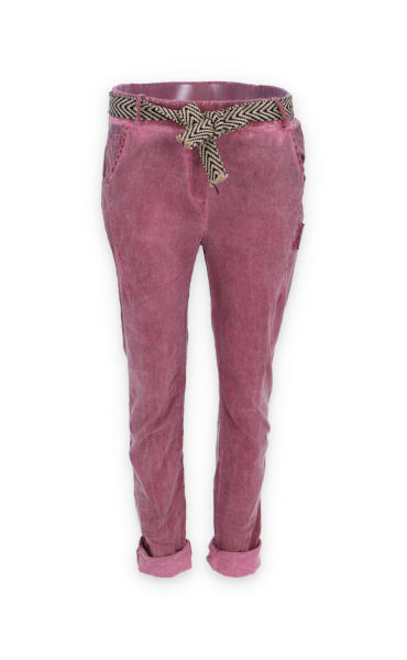 Kalhoty s páskem 22746 Itálie barva: červená-bordó