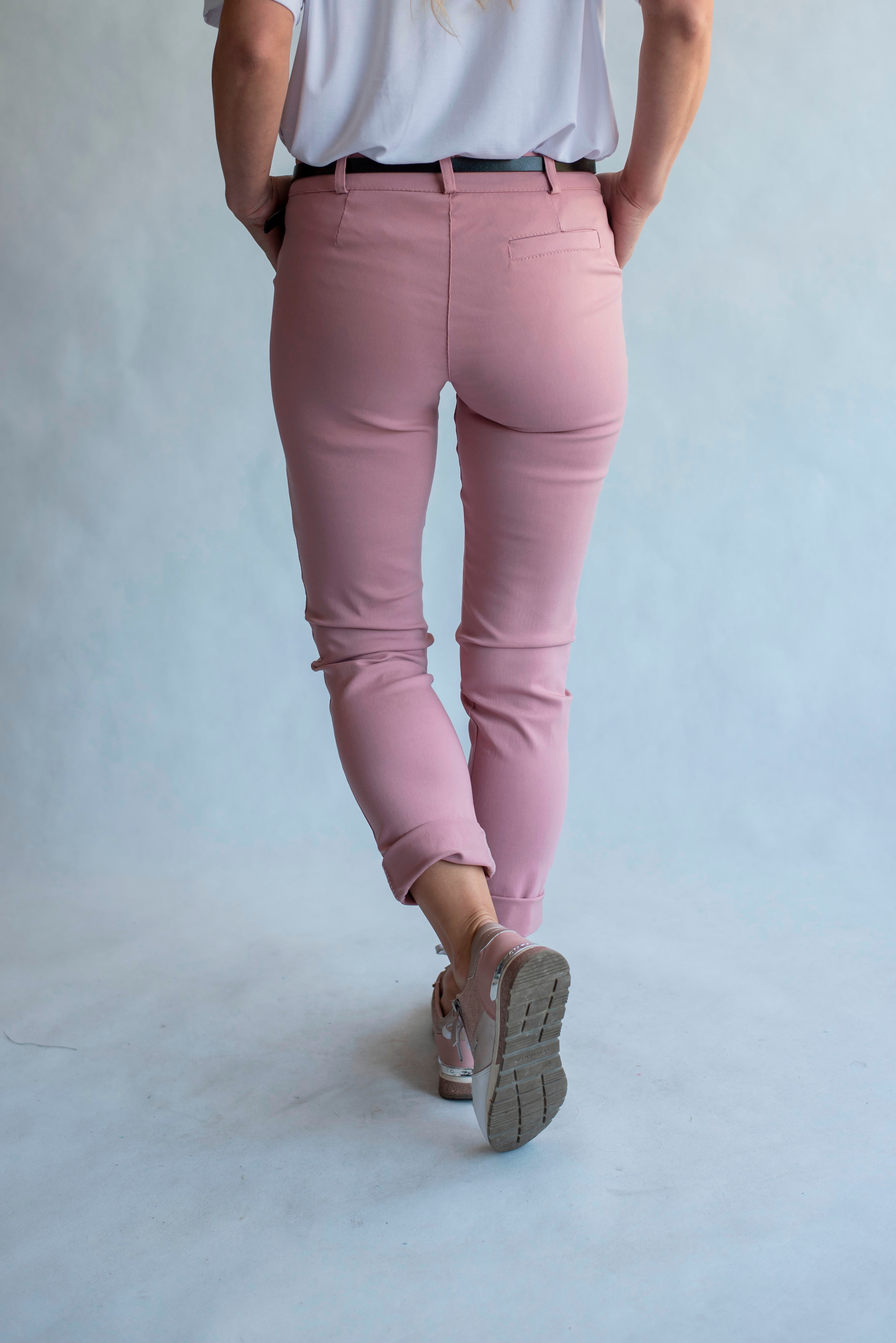 Módní kalhoty pohodlného střihu, elastický pas, opasek a 2x přední kapsy, jedna zadní