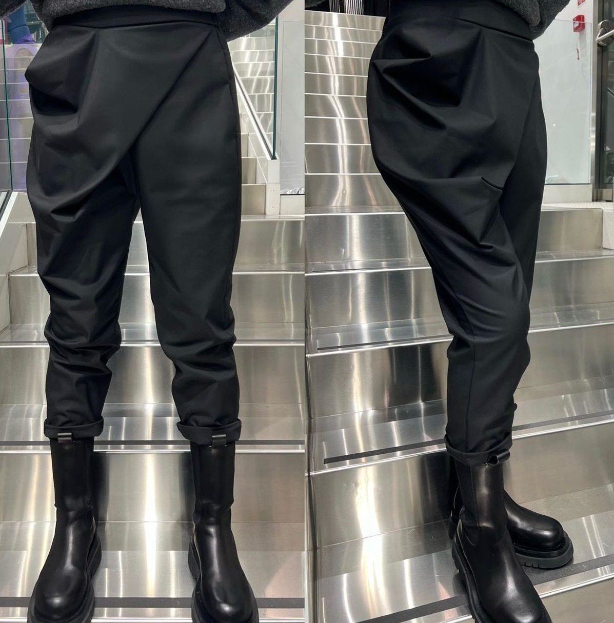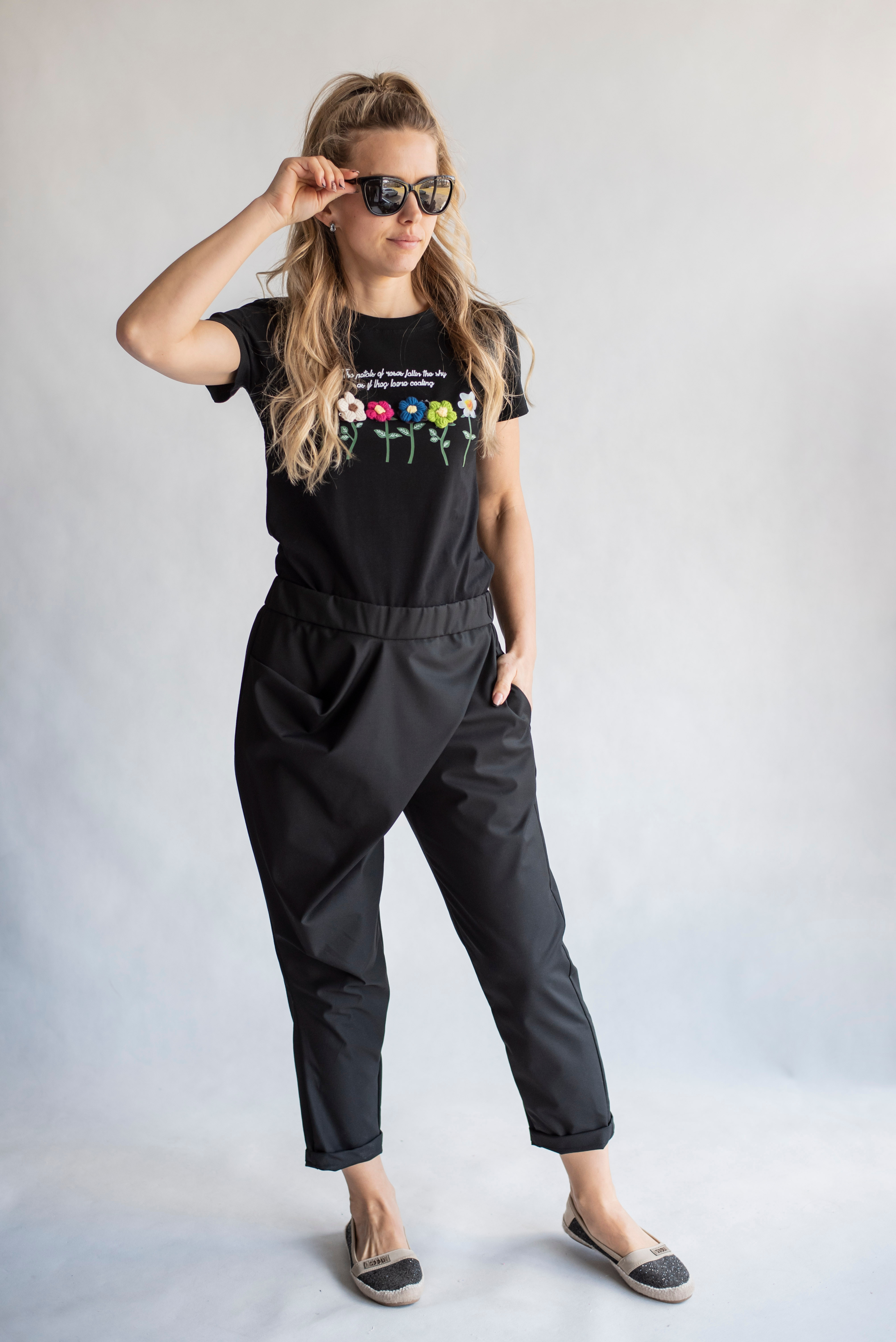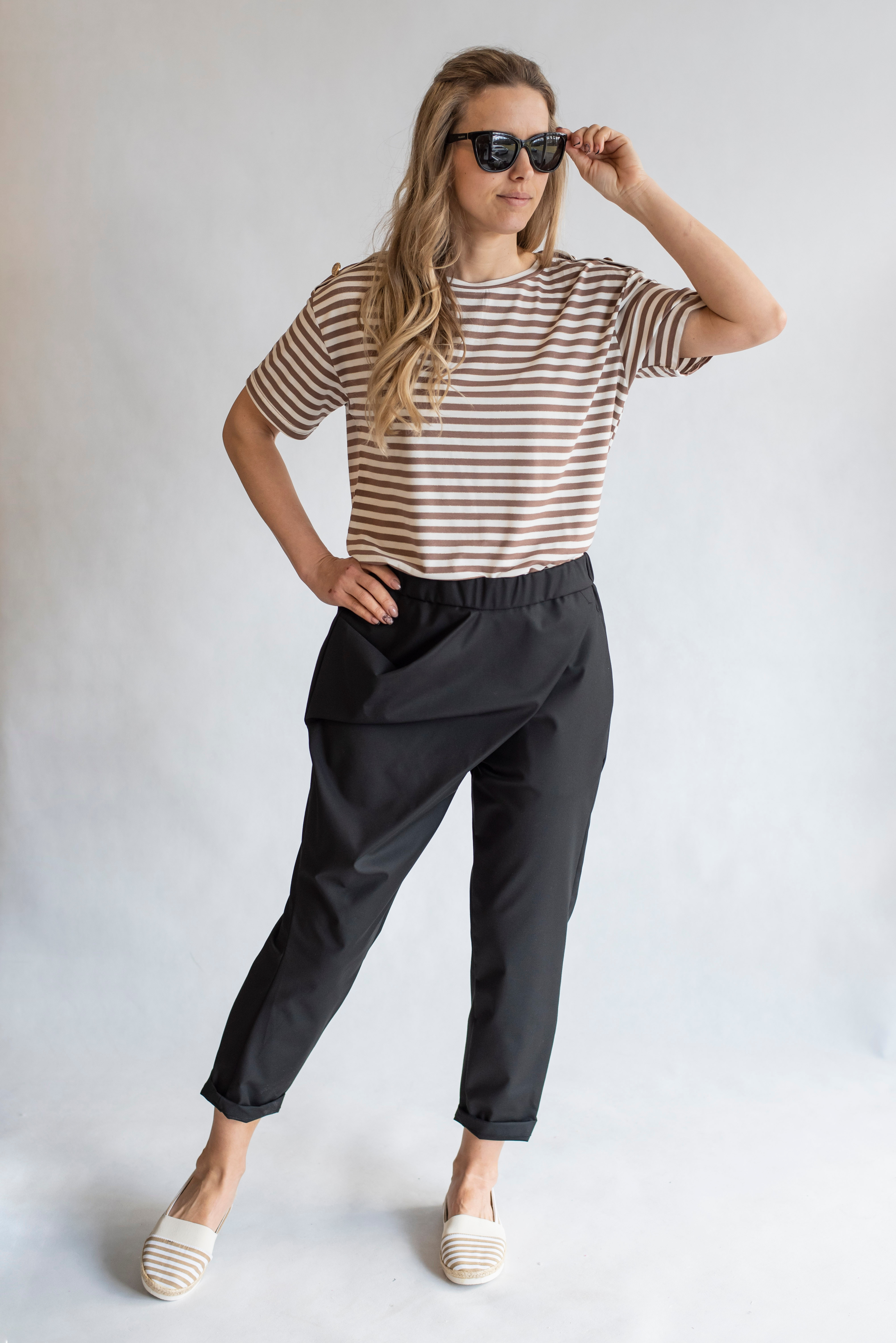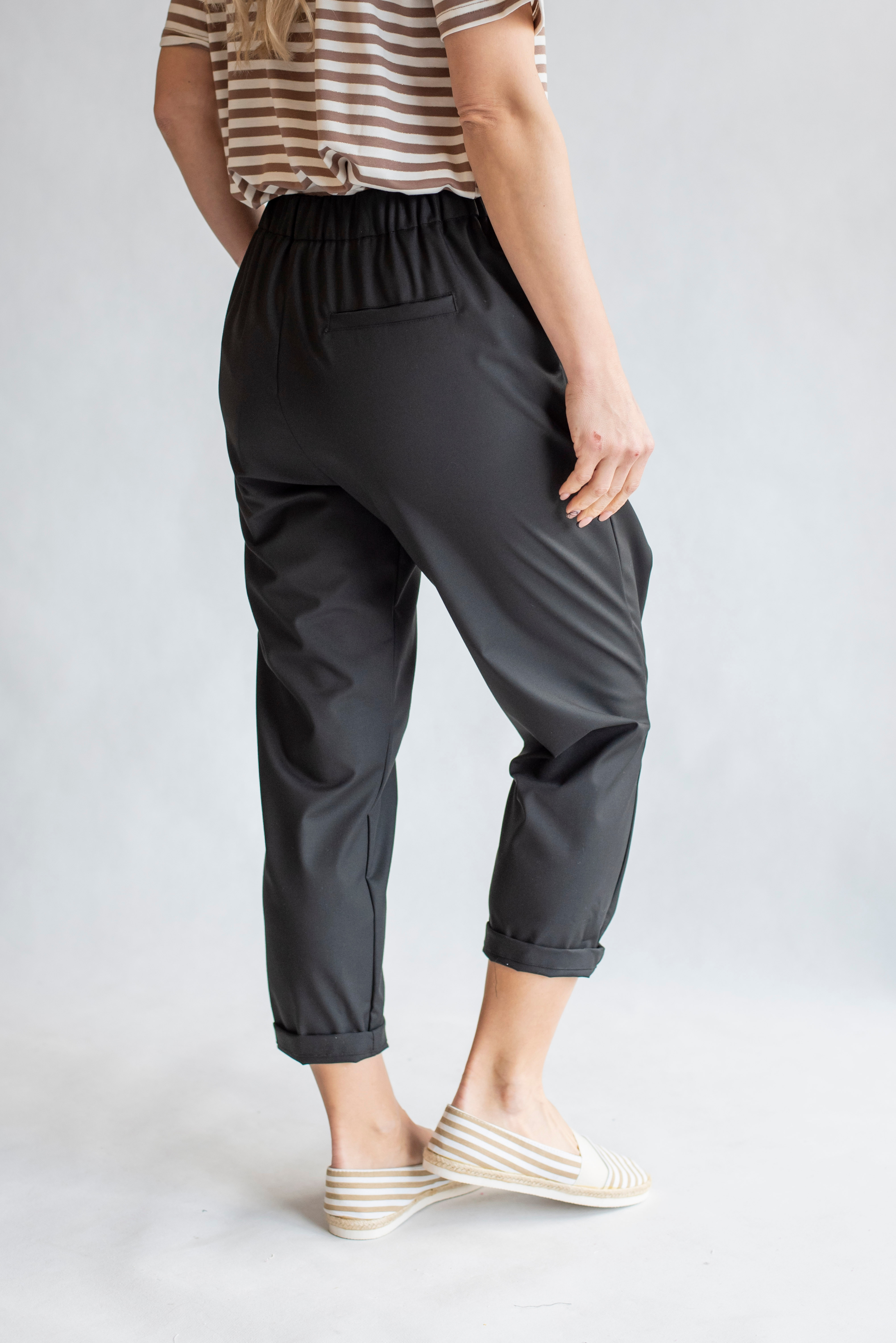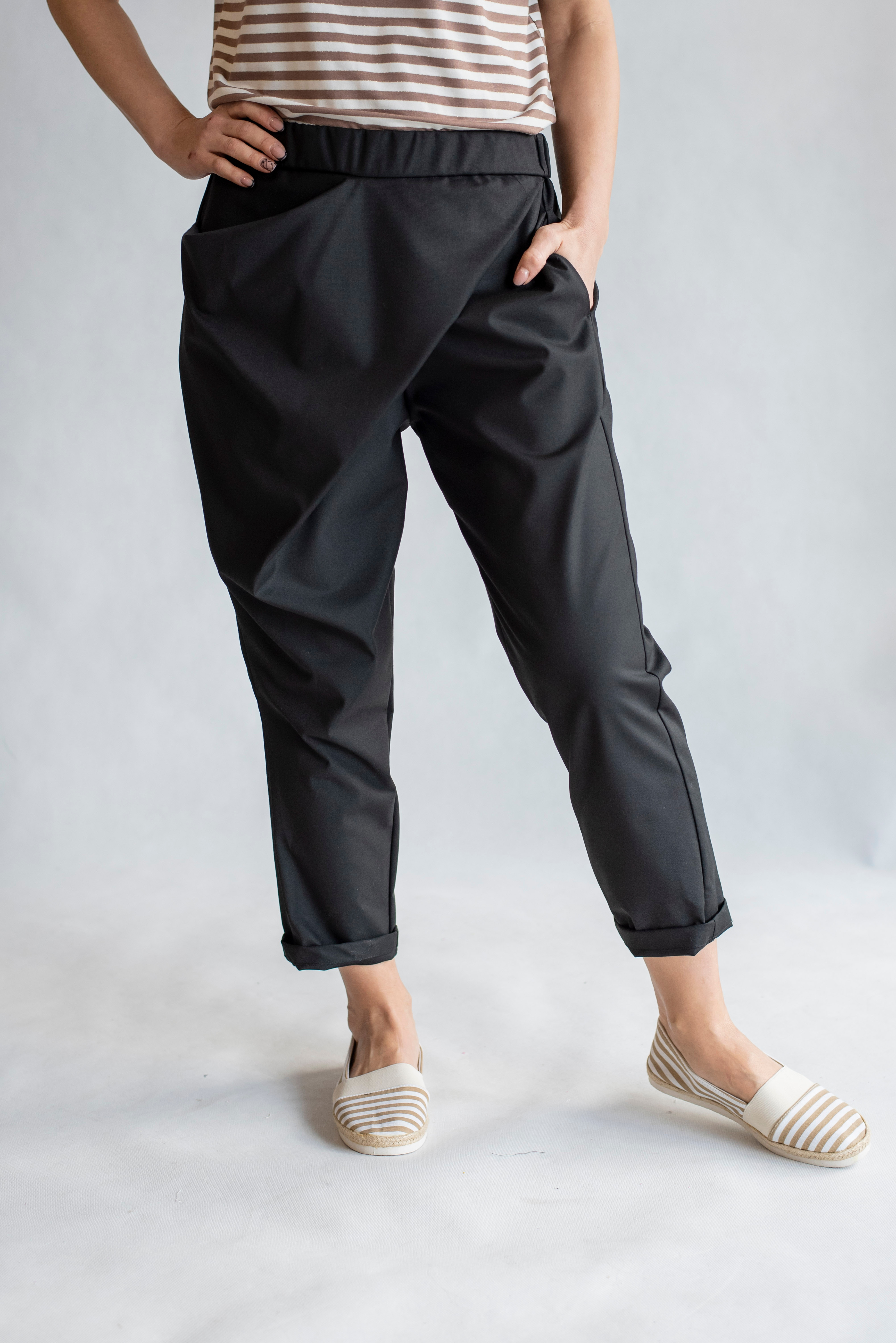 Módní kalhoty s překladem 3/4 délka, kapsy